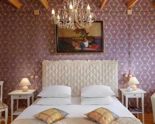 Комфортабельный двухкомнатный номер, декорирован роскошной мебелью, романтической кроватью с балдахином в спальне и антикварным столом из цельного дерева в гостиной.
