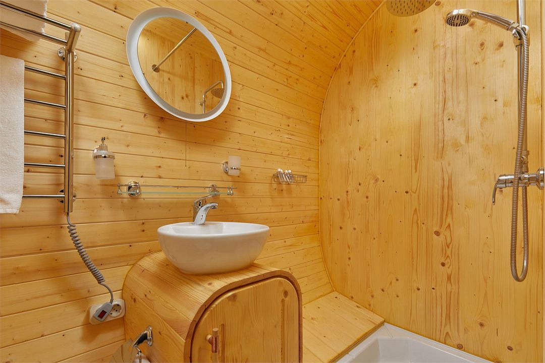 - В сауне-башне гости могут расслабиться после насыщенного дня.