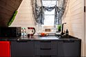 Кухонная зона: электронная варочная панель, холодильник, чайник, микроволновая печь, полный комплект приборов и посуды, чай, растворимый кофе, сахар, соль, подсолнечное масло.
