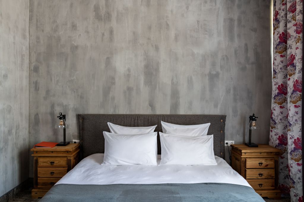 Уютная спальня с комфортной кроватью размера king size, белоснежным бельем премиум качества, собственная гардеробная, уникальная ванная комната с «тропическим душем» и эко косметикой. В декоре использованы материалы, обладающие естественной природной фактурой. Прохлада камня, мягкость натуральных тканей и фактурность дерева создают уникальный тактильный интерьер.