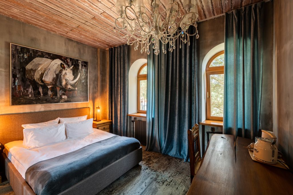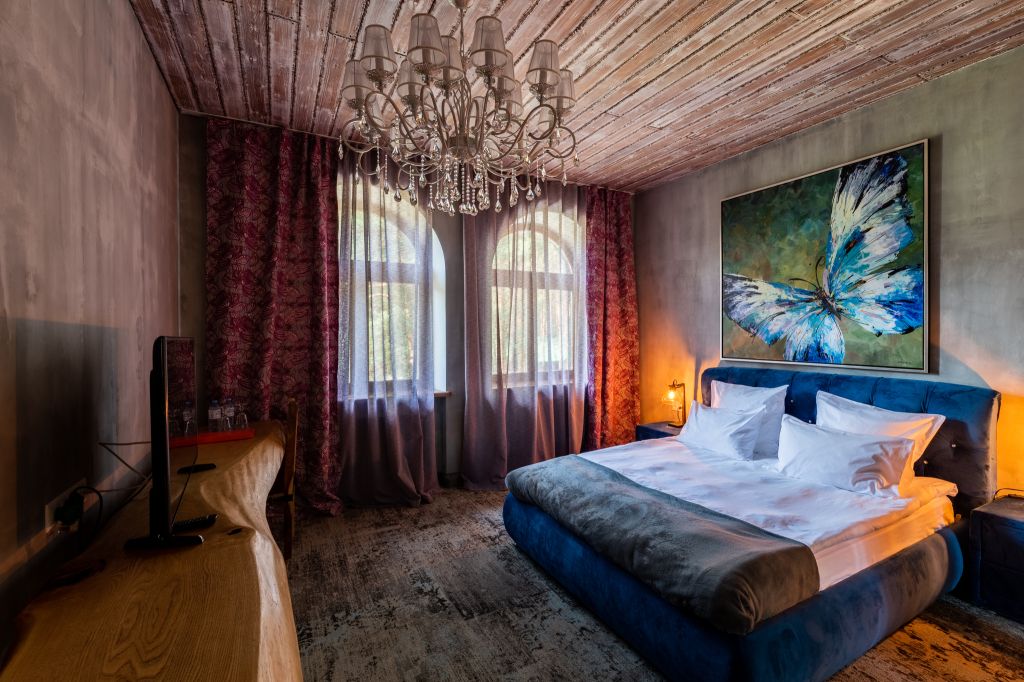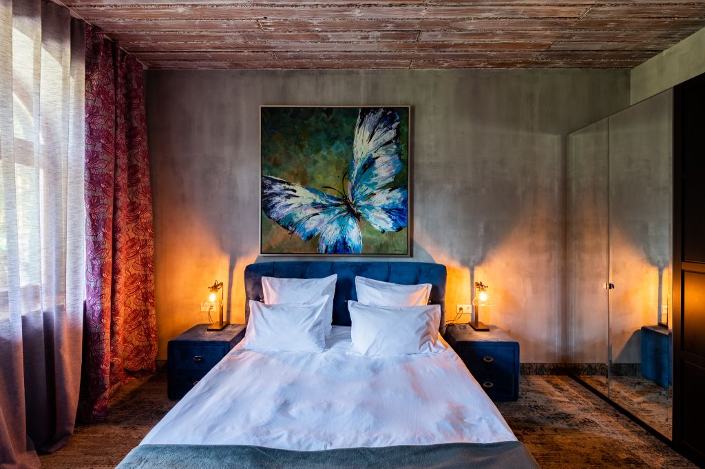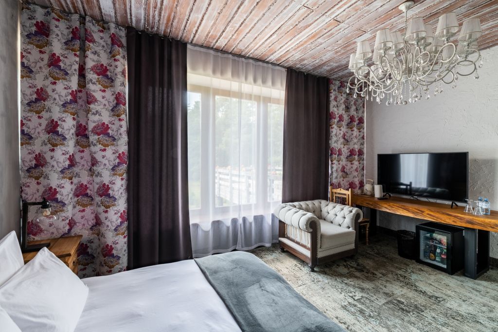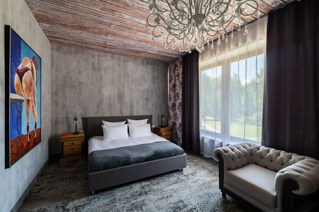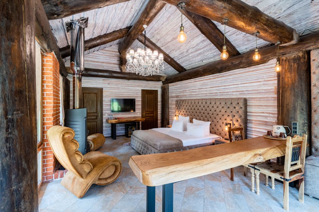 Номерной фонд отеля включает 10 номеров в главном корпусе, три отдельно стоящих бунгало и один барнхаус. Интерьеры выполнены в стиле Wood Art.
