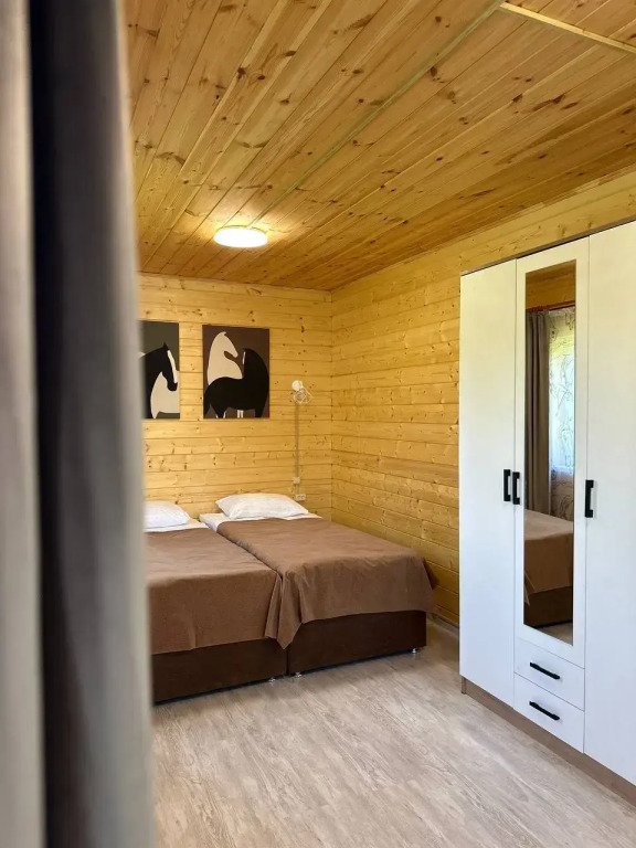 Для размещения доступны 10 домиков, возможно проживание до 5 человек в каждом.