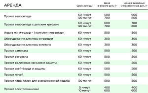 - прокат снаряжения для однократного прохождения трассы «Детская» — 500 ₽/будни, 600 ₽/ выходные и праздники;