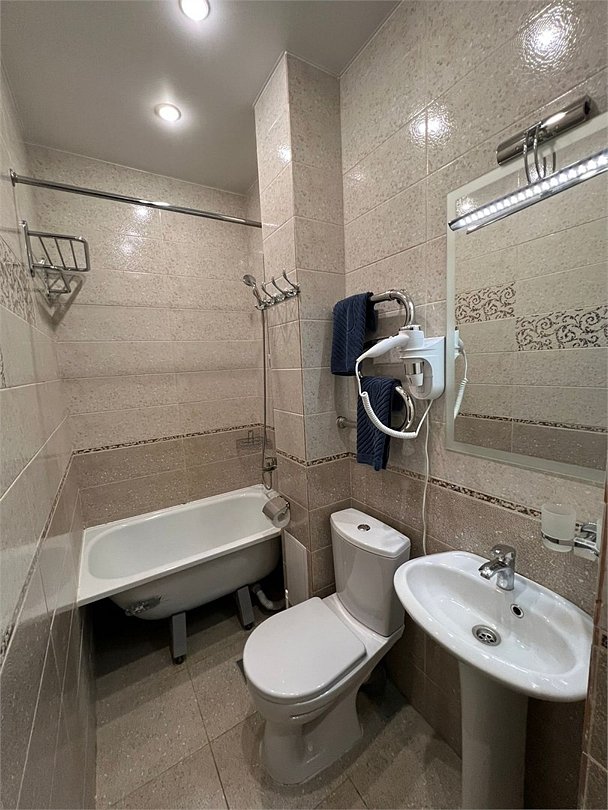Wi-Fi, холодильник, фен, вентилятор, электронные замки, ванна, халаты, банные полотенца, тапочки, косметические средства, двуспальная кровать, односпальная кровать, тумбы, стулья, шкаф для одежды, вешалки, комод, сейф, унитаз, раковина, вид на город, кулер на этаже, вид во двор, ламинат, стаканы, стол, тумба, москитная сетка, телевизор со Smart TV, пуфик, фумигатор, уборка номера, набор для приготовления чая и кофе, вешалки-плечики, шапочка для душаВ гостиничном номере