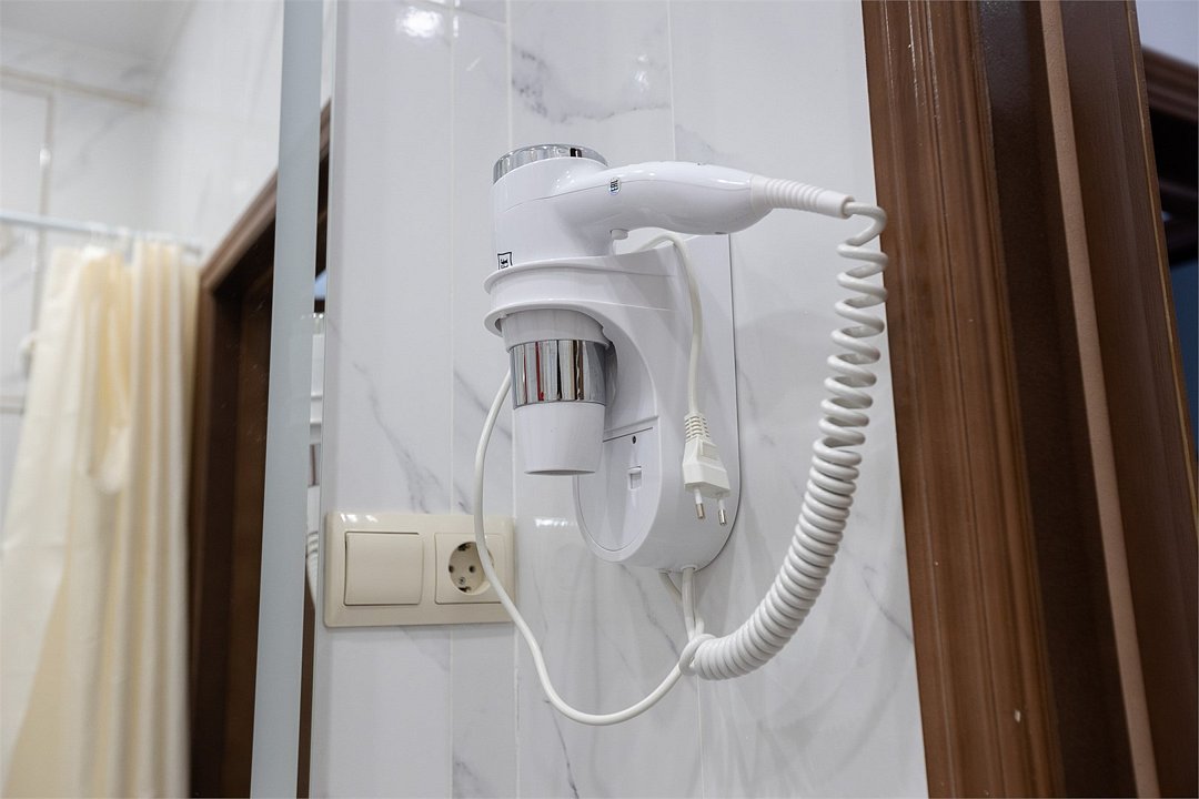 Wi-Fi, фен, вентилятор, электронные замки, ванна или душевая кабина, халаты, банные полотенца, тапочки, двуспальная кровать, односпальная кровать, шкаф для одежды, зеркало, комод, унитаз, вид на город, кулер на этаже, вид во двор, ламинат, стаканы, стул, стол, тумба, туалетные средства, мини-холодильник, гостиничная парфюмерия, телевизор со Smart TV, номер для некурящих, фумигатор, набор для приготовления чая и кофе, услуги прачечной (платно), вешалки-плечики, шапочка для душаВ гостиничном номере