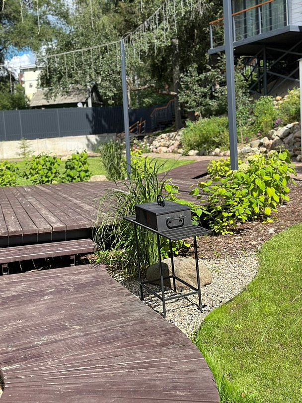 Из окон домов открывается красивый вид на уютный дворик, а всего в нескольких шагах оборудована мангальная зона для приготовления блюд на свежем воздухе.