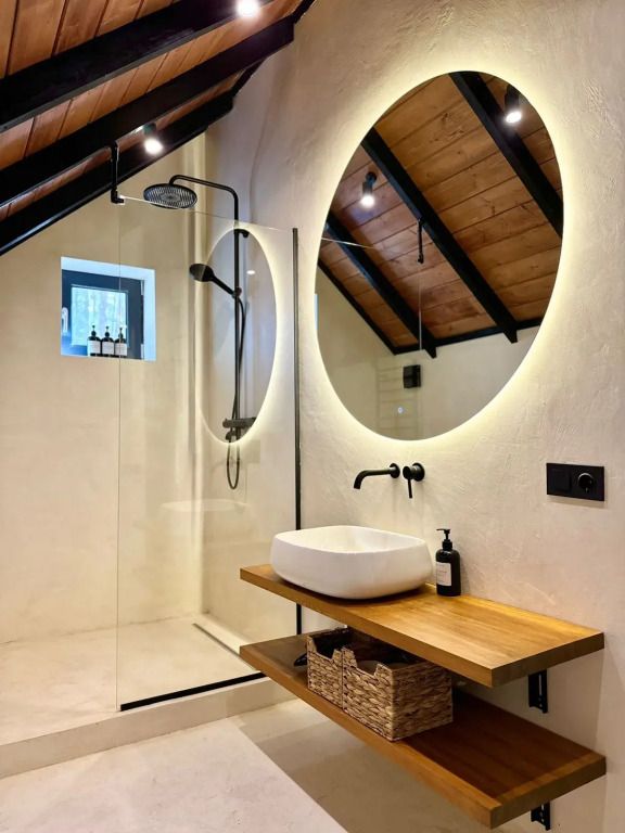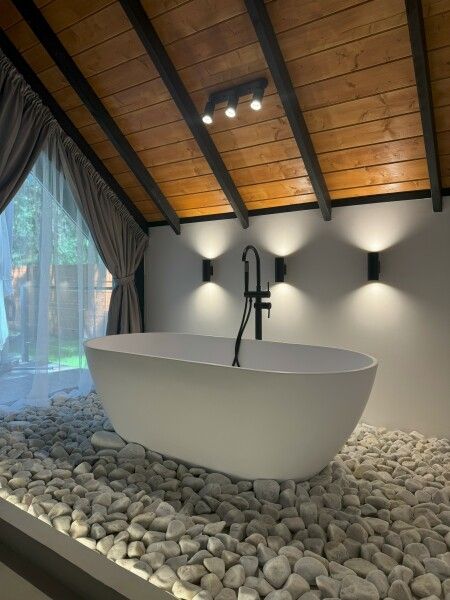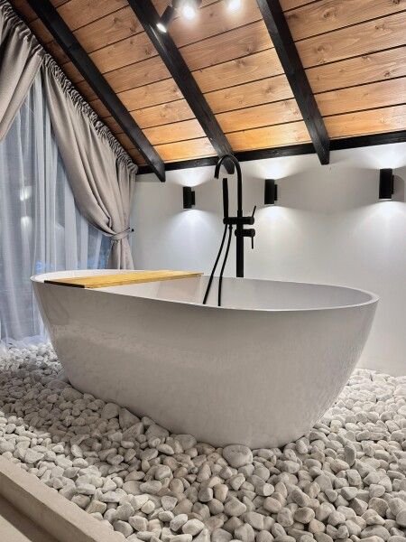 Фишка домика — отдельностоящая ванна с панорамным видом. Но если Вам больше по душе душ, то он ждет.
