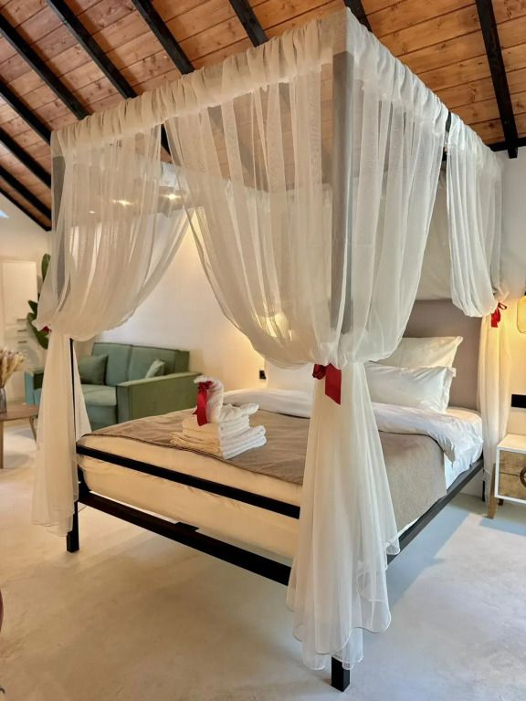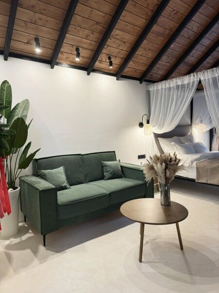 Для комфортного размещения есть двуспальная кровать и двуспальный раскладной диван.