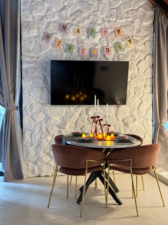 Кухня оборудована всем необходимым для создания кулинарных шедевров, а обеденная зона станет идеальным местом для праздничного обеда или романтического ужина!