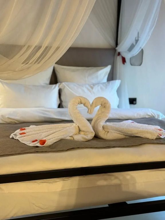 В стоимость проживания включено: постельные принадлежности, набор полотенец, одноразовые тапочки, халаты, кофе и набор чая, фильтр с водой, сахар и специи, набор посуды и столовых приборов, бесплатный Wi-Fi, на территории личная парковка.