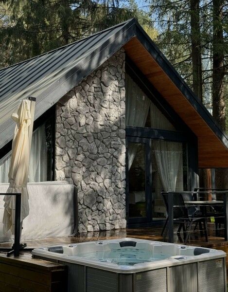 Уютный домик в альпийском стиле с подогреваемым уличным спа-бассейном — идеальный вариант для отдыха от городской суеты! Домик вмещает 2-4 человека.