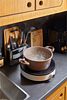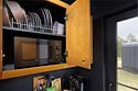 - На кухне есть электроплитка, микроволновка, чайник и кофеварка, набор посуды для приготовления еды, набор тарелок, чашек, столовых приборов;