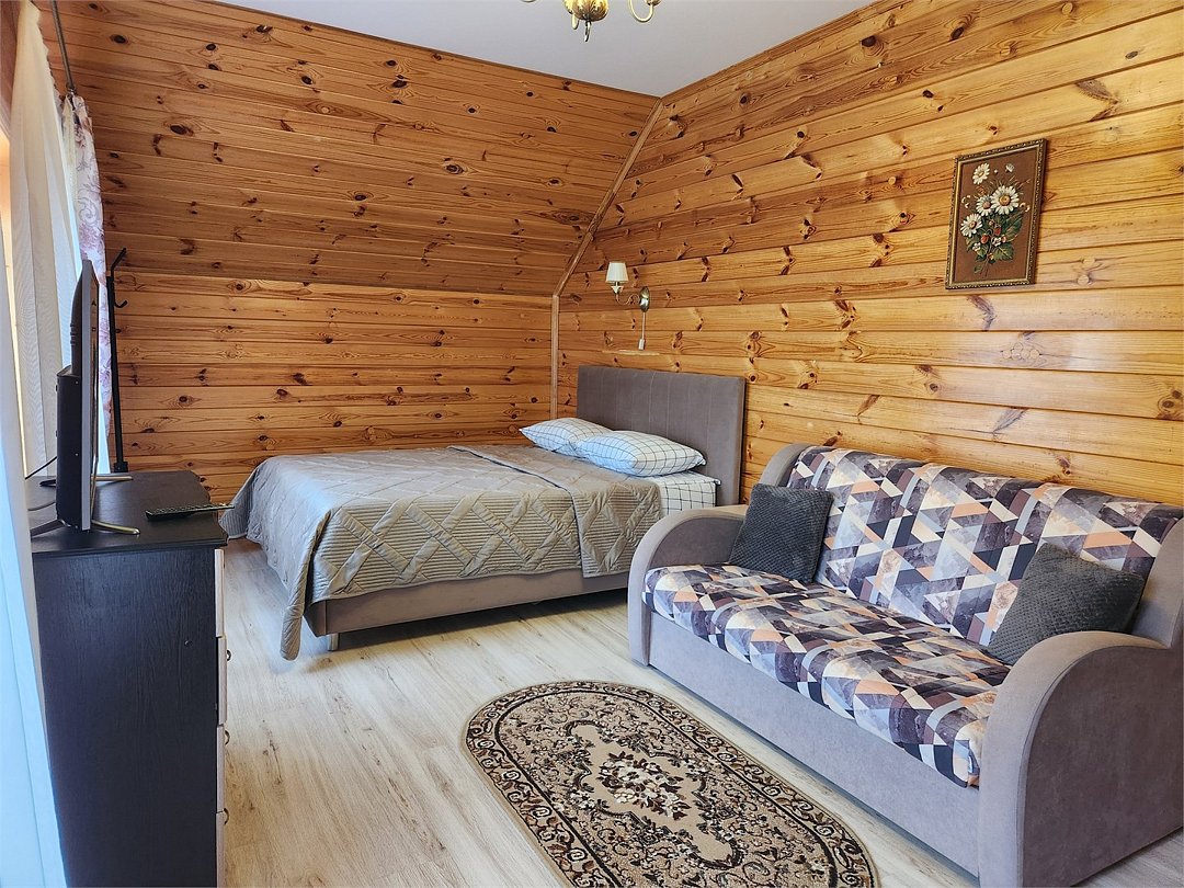 Двухспальная кровать,двухспальный диван, диван-кровать ,кухня ,санузел.Услуги и удобства