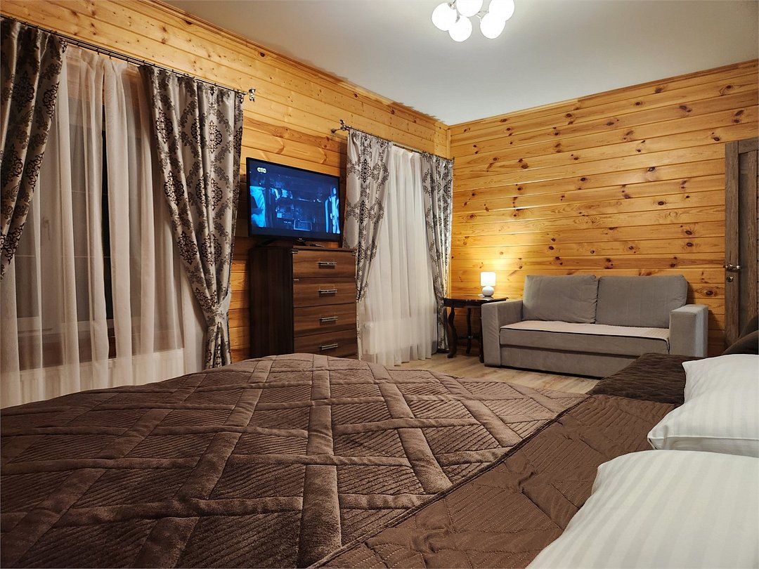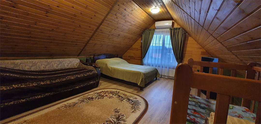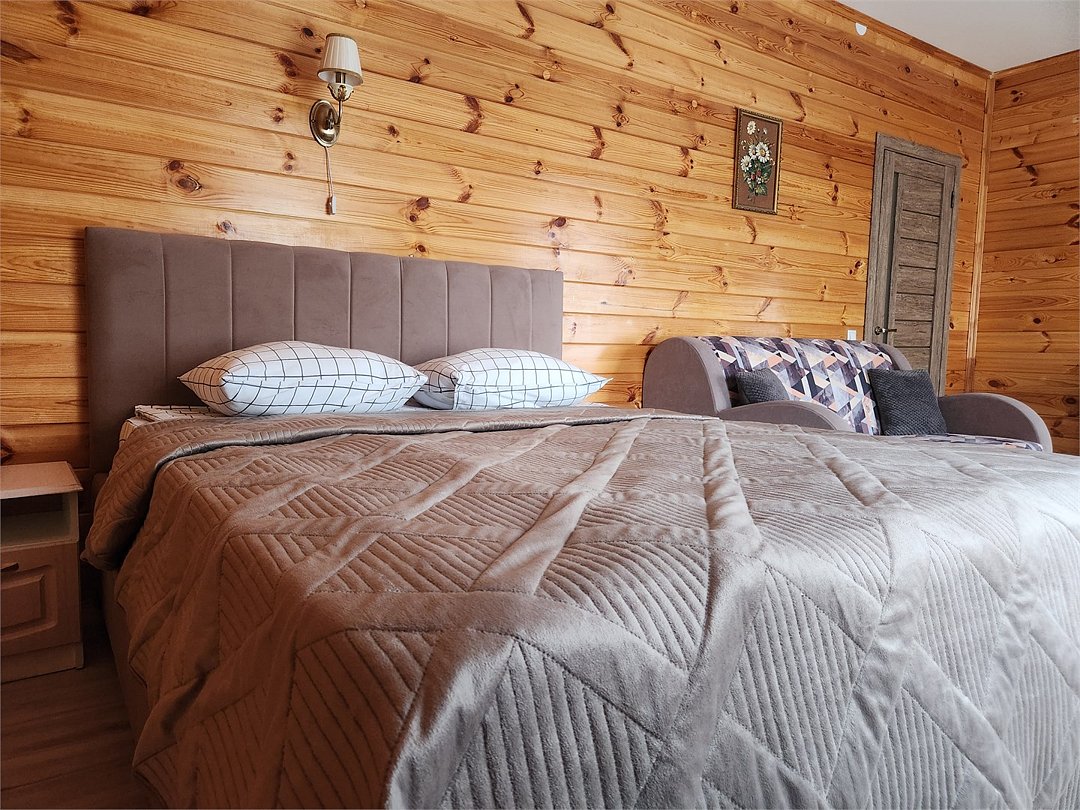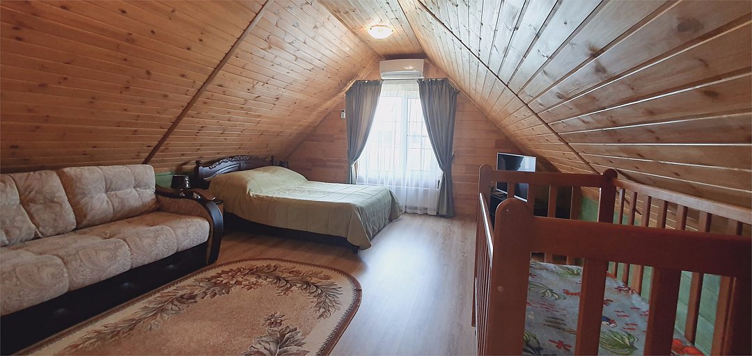 Двухспальная кровать, 2 дивана кровати, кухня, 2 санузла, сауна.Услуги и удобства
