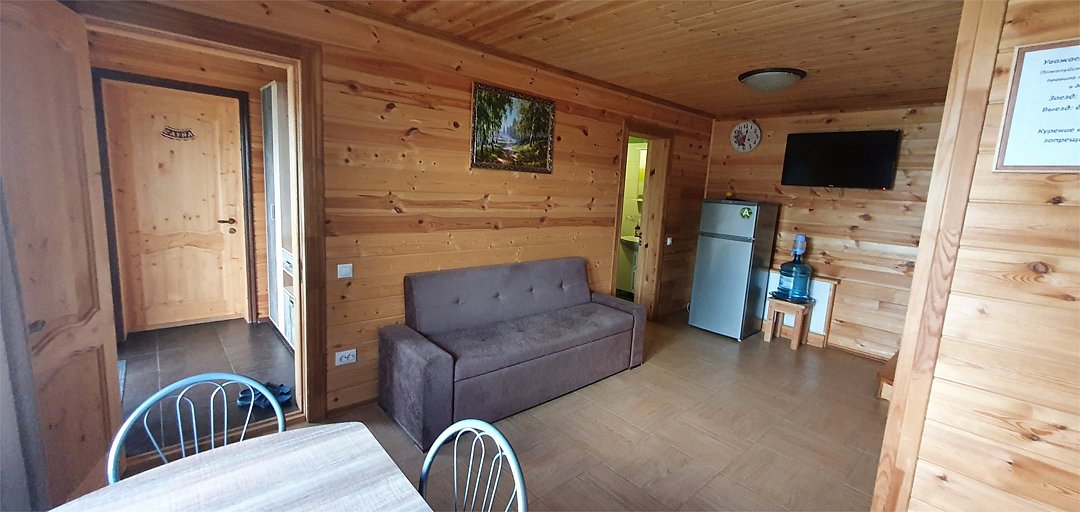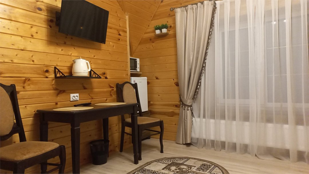 телевизор, Wi-Fi, кондиционер, светильник, фен, микроволновая печь, утюг, душевая кабина, санузел, тапочки, двуспальная кровать, гладильная доска, вешалки, набор посуды, чайник, унитаз, раковина, питьевая вода, отопление, вид во двор, ламинат, кухонная посуда, стаканы, стул, стол, тумба, туалет, мангал, цифровое тв, мини-холодильник, москитная сетка, номер для некурящих, набор для приготовления чая и кофе, вешалки-плечики, мылоВ номере