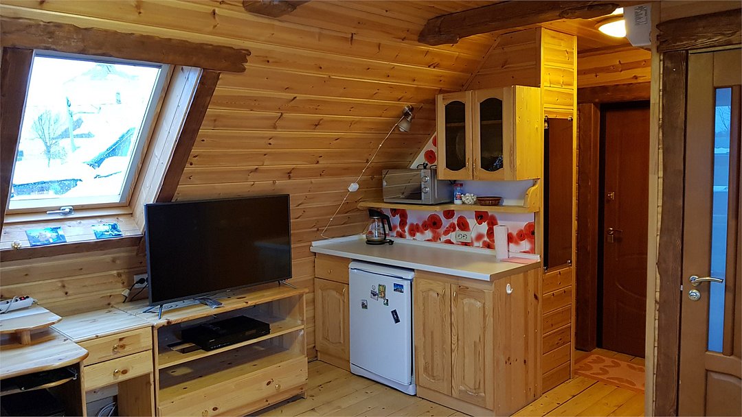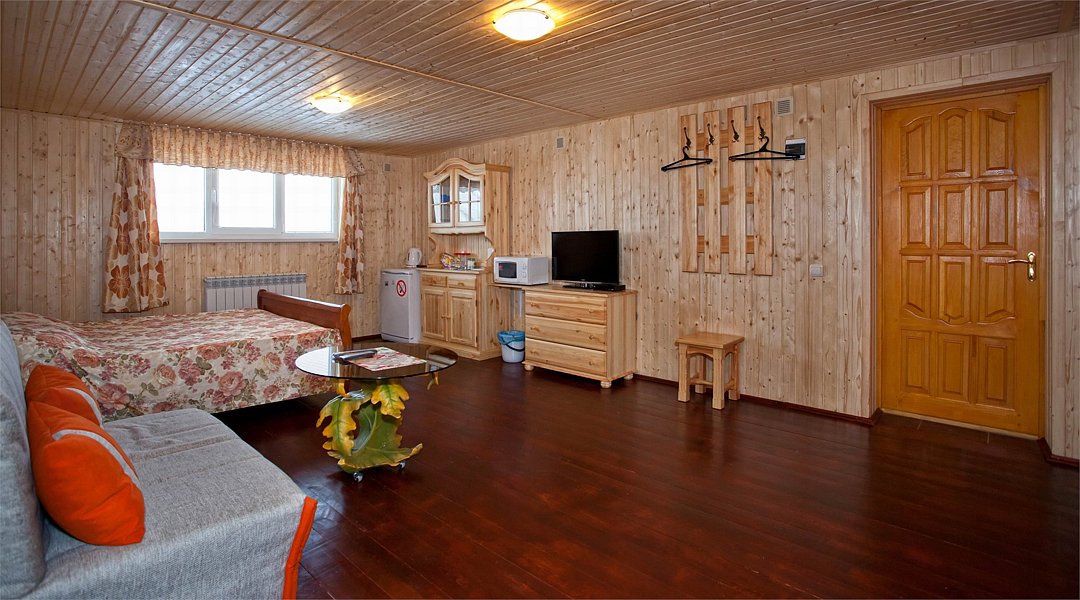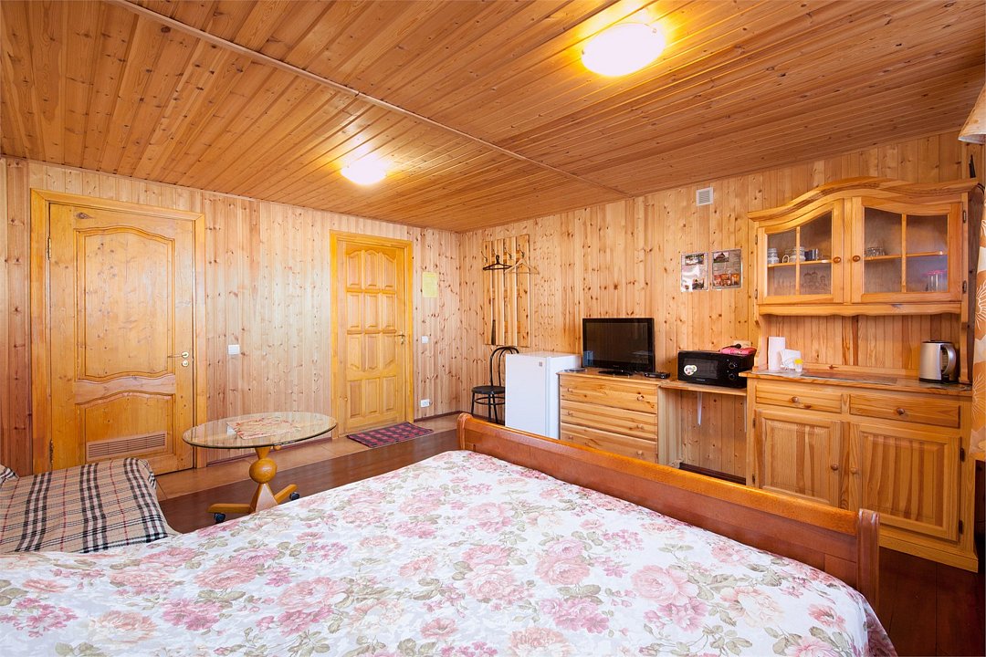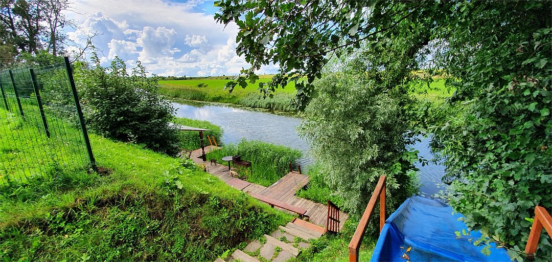 В Гостевом доме "У РЕКИ 44", есть все необходимое, свой благоустроенный пляж на берегу реки в тридцати метрах от гостиницы с беседкой, мангалом и аквагоркой. Номер находится на мансардном этаже отдельно стоящего дома. Оборудование : кухня с индукционной плитой, холодильником, микроволновкой, чайником, цифровое телевидение, двухспальная кровать, есть балкон с видом на реку и заливные луга. Кондиционер, бесплатный WI-FI, парковка. На территории гостевого дома есть РУССКАЯ БАНЯ НА ДРОВАХ на берегу реки Каменки.Услуги и удобства