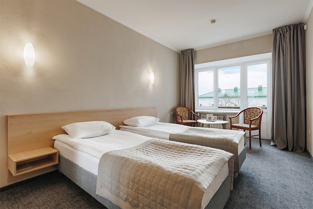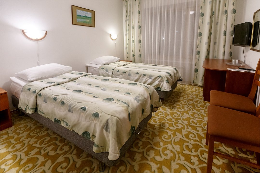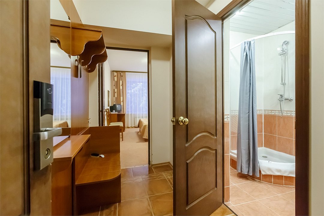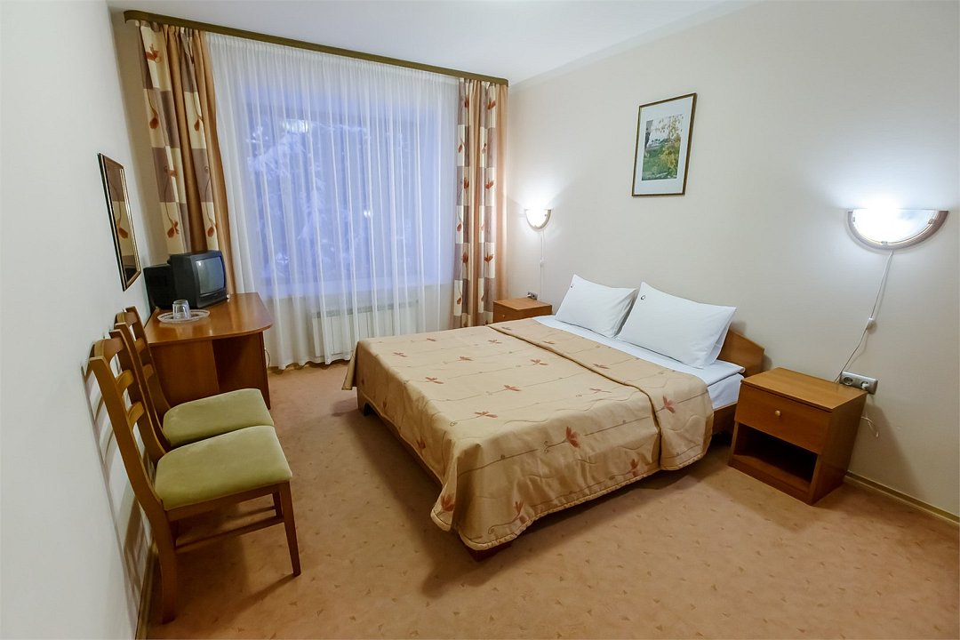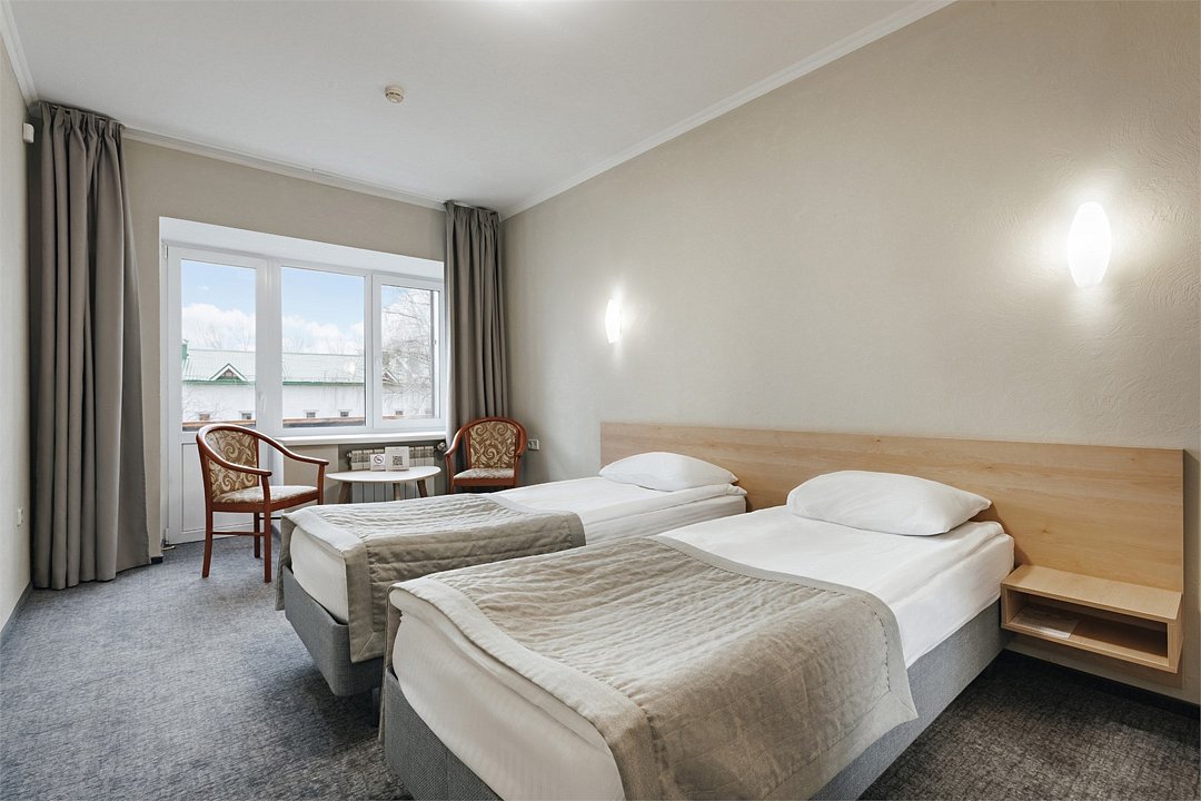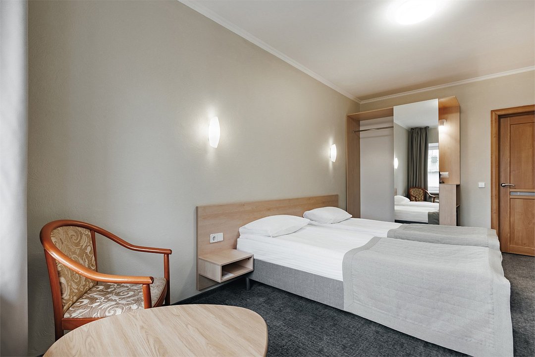 Стандартный номер, выполненный в тёплых нейтральных тонах, создаёт ощущение спокойствия и домашнего уюта. Каждая деталь номера тщательно продумана, чтобы обеспечить гостю максимум комфорта. Просторный санузел стандартного номера может быть оборудован ванной или душевой кабиной. Спальное место в номере представлено в варианте широкой двуспальной кровати или двух раздельных одноместных По запросу в номерах устанавливается дополнительное спальное место или детская кроватка.Услуги и удобства
