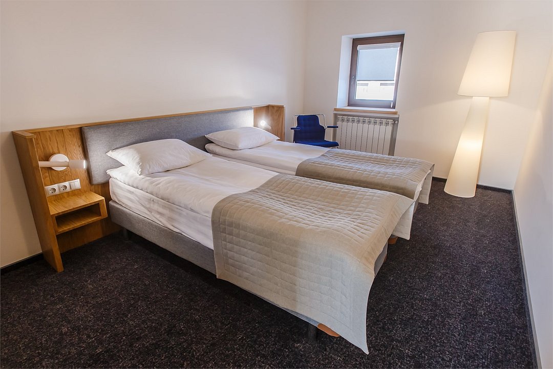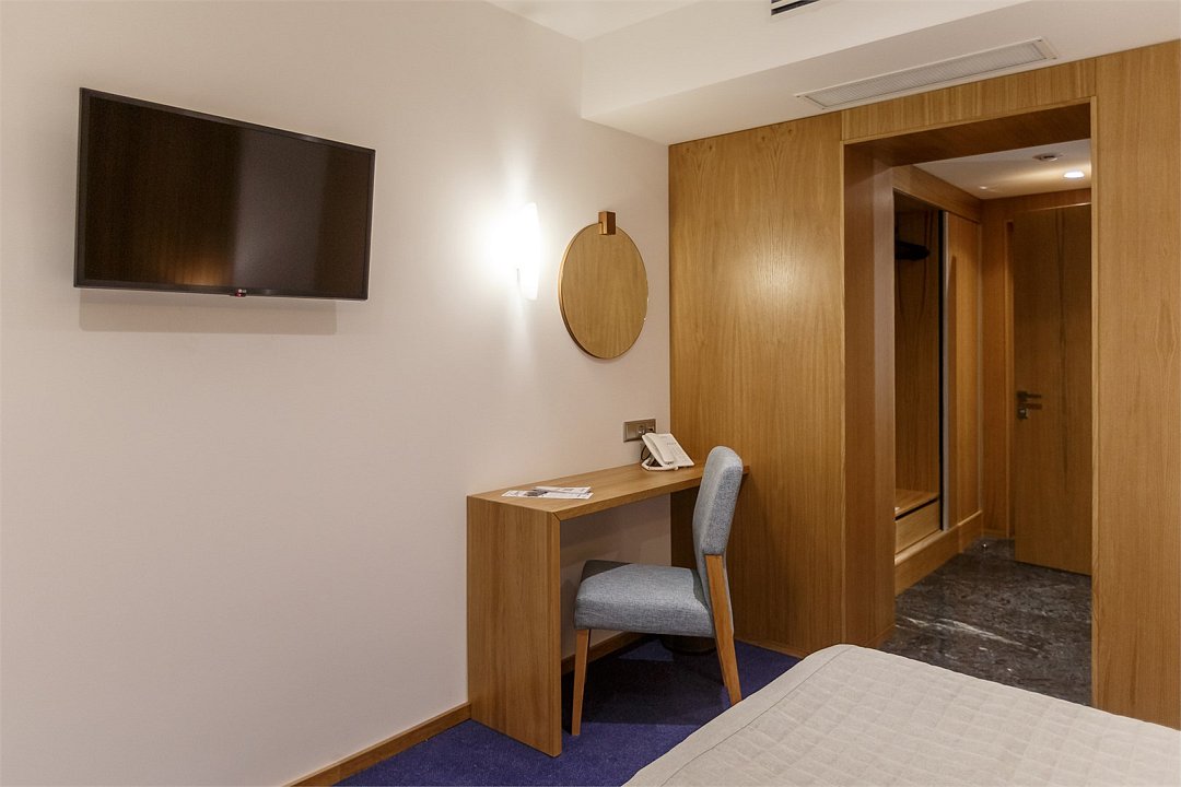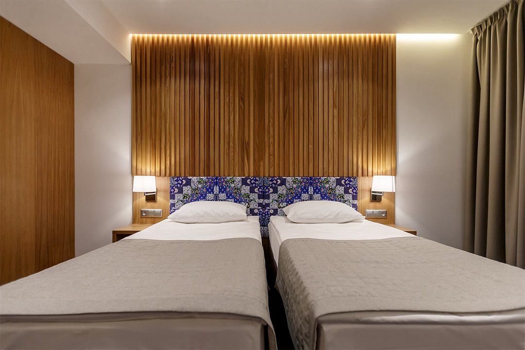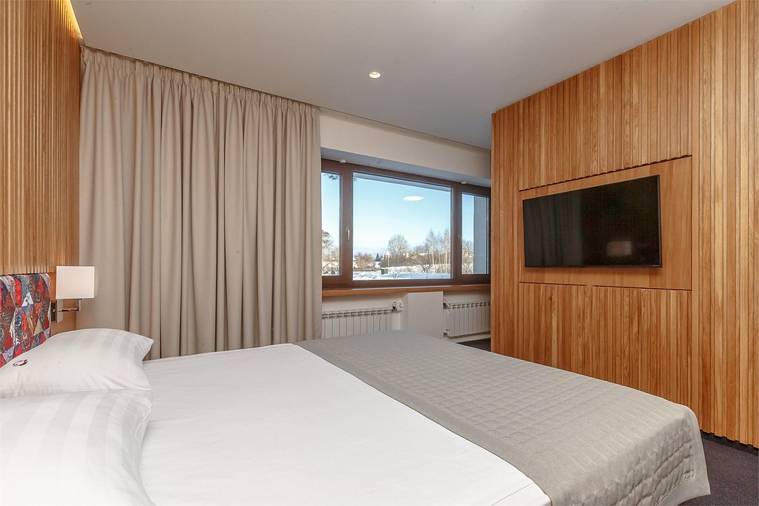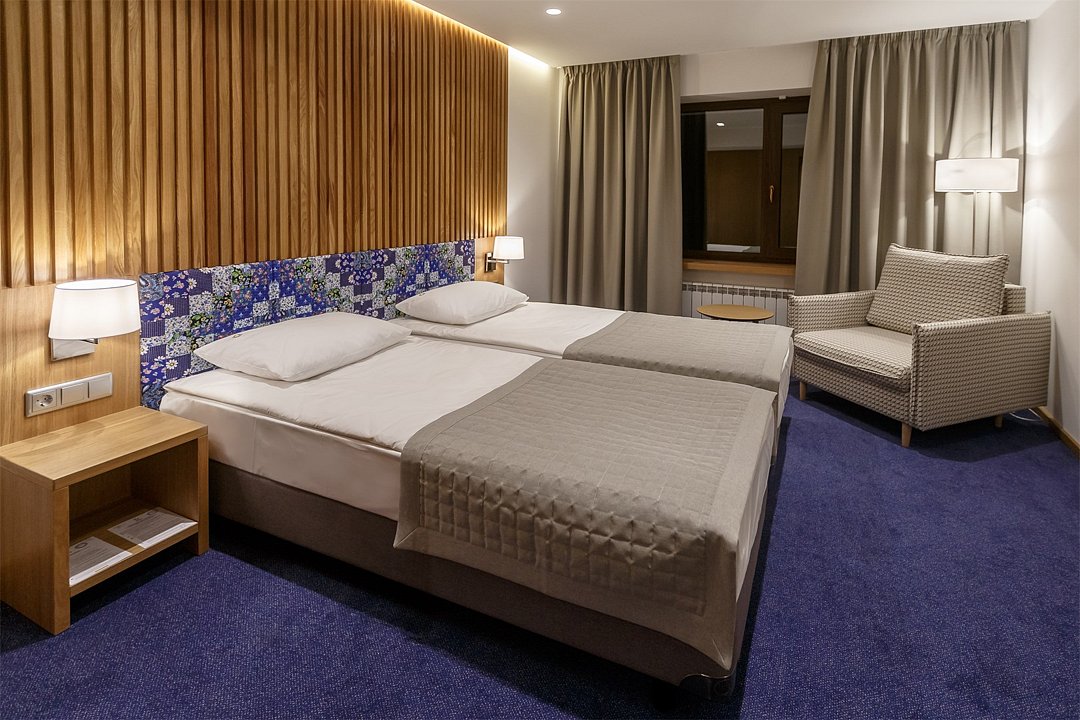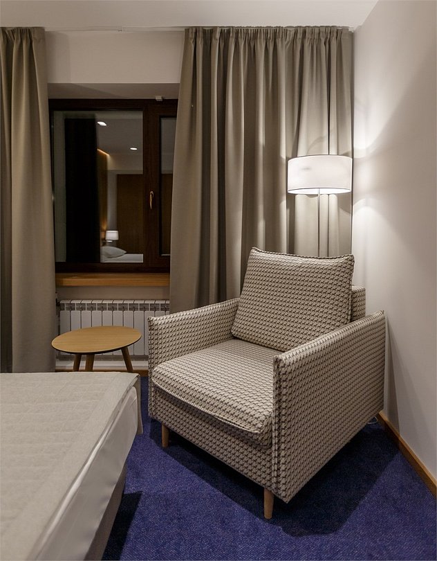 Стандартный номер, выполненный в тёплых нейтральных тонах, создаёт ощущение спокойствия и домашнего уюта. Каждая деталь номера тщательно продумана, чтобы обеспечить гостю максимум комфорта. Просторный санузел стандартного номера может быть оборудован ванной или душевой кабиной. Спальное место в номере представлено в варианте широкой двуспальной кровати или двух раздельных одноместных По запросу в номерах устанавливается дополнительное спальное место или детская кроватка.Услуги и удобства