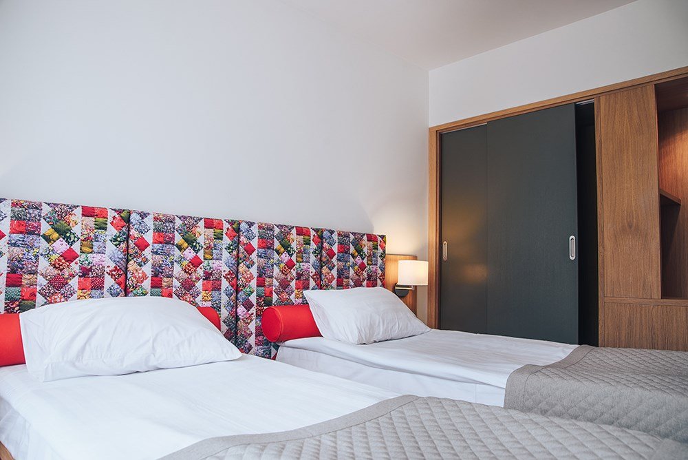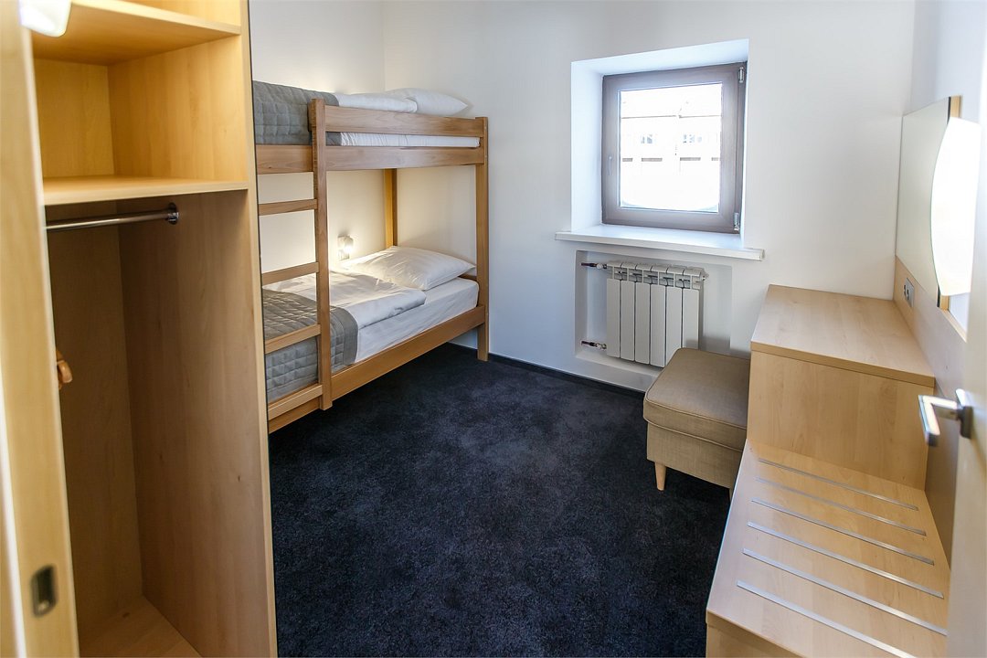 телевизор, Wi-Fi, светильник, фен, халаты, банные полотенца, тапочки, балкон, две односпальные кровати, тумбы, шкаф для одежды, вешалки, зеркало, две комнаты, чайник, раковина, двухъярусные кровати, душ, вид на реку, туалет, цифровое тв, мини-холодильник, без питомцевВ гостиничном номере