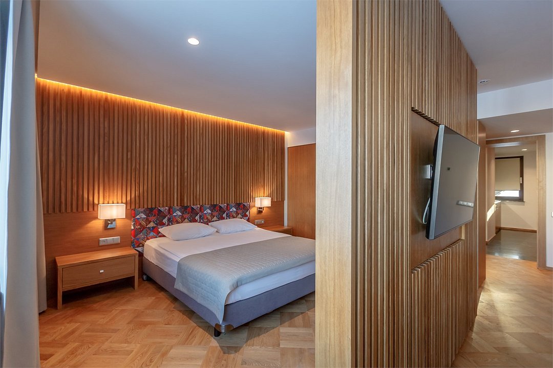 Улучшенный номер, выполненный в тёплых нейтральных тонах, создаёт ощущение спокойствия и уюта. Каждая деталь номера тщательно продумана, чтобы обеспечить гостю максимум комфорта. Санузел улучшенного номера оборудован душевой кабиной.