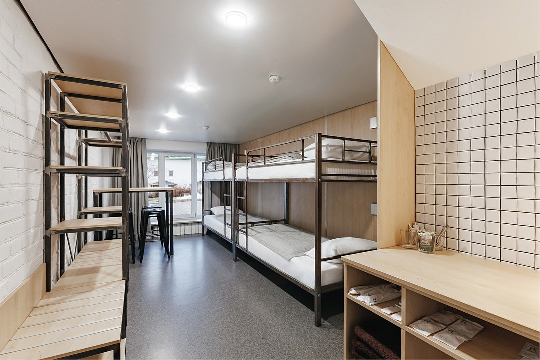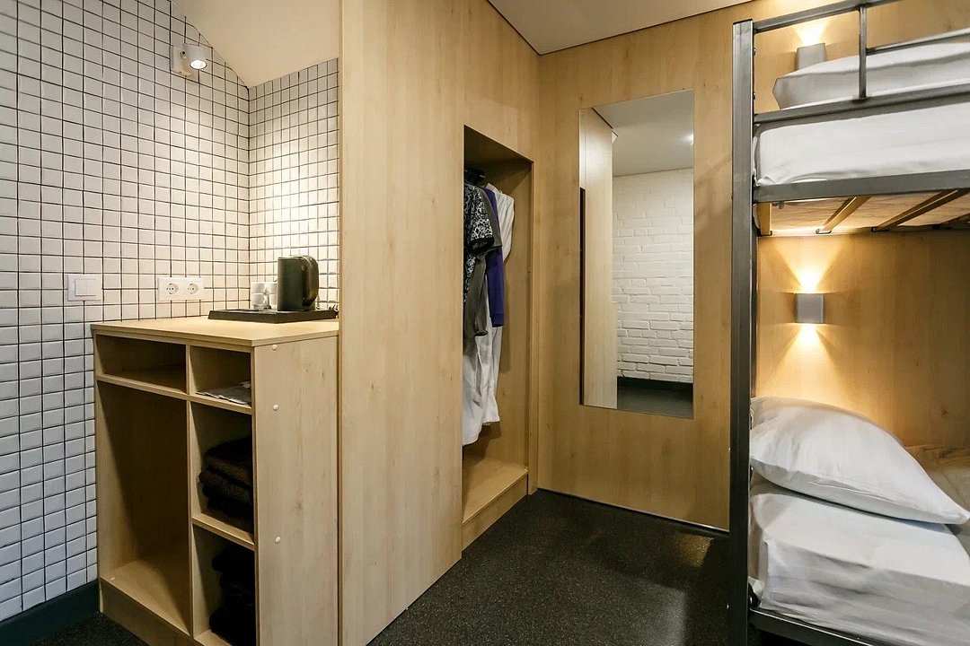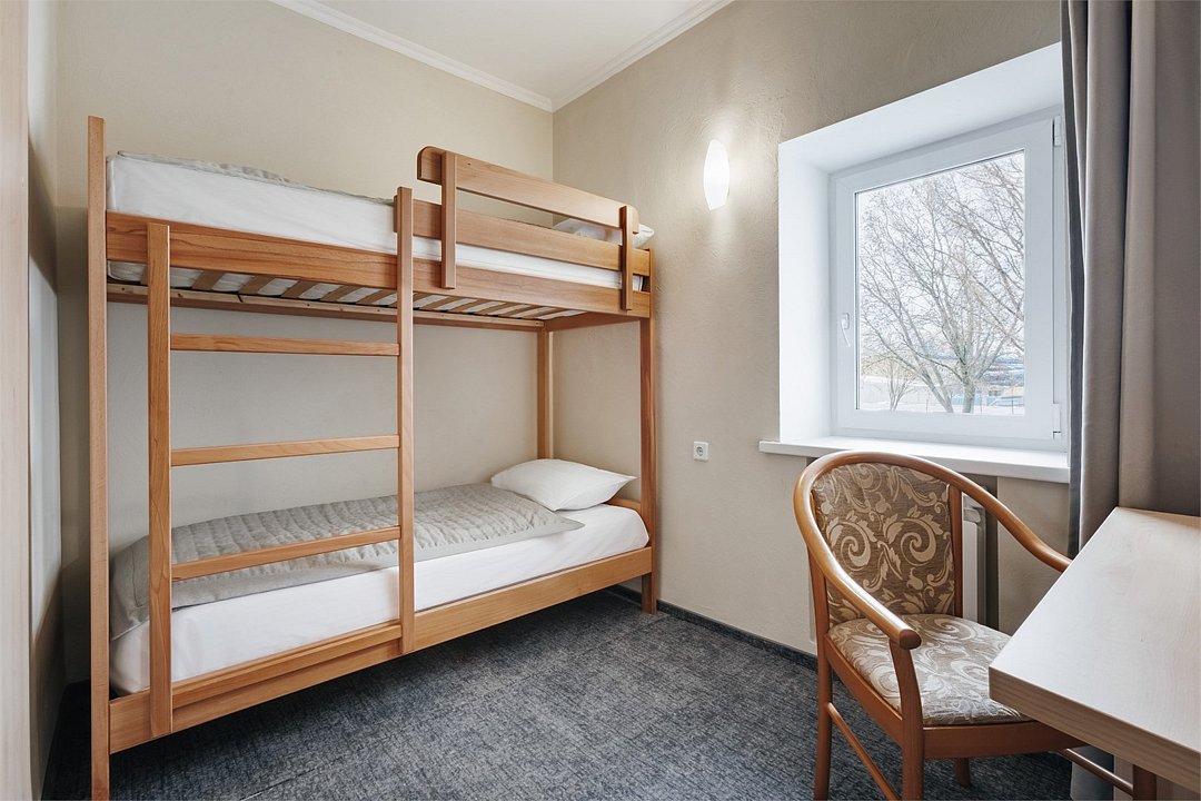 телевизор, Wi-Fi, холодильник, фен, балкон, две односпальные кровати, двухъярусные кровати, душ, вид во двор, туалет, можно с питомцамиВ гостиничном номере