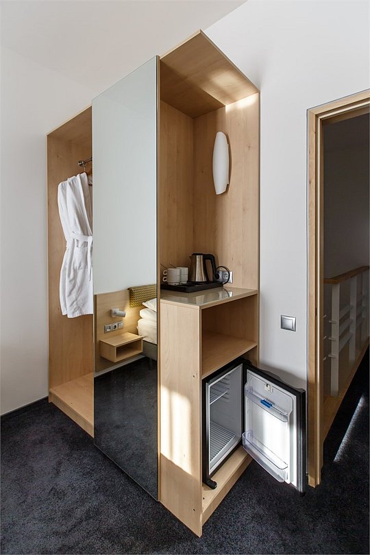 Спальное место в номере представлено в варианте широкой двуспальной кровати или двух раздельных одноместных.