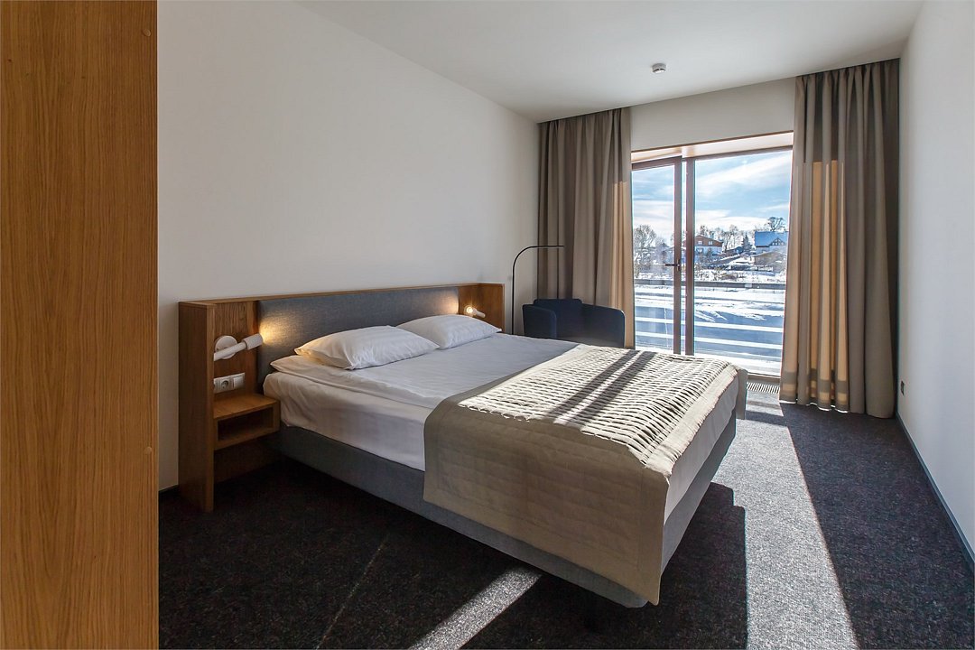 телевизор, Wi-Fi, телефон, светильник, фен, электронные замки, микроволновая печь, ванна или душевая кабина, двуспальная кровать, шкаф для одежды, вешалки, обеденный стол, зеркало, две комнаты, набор посуды, чайник, вид на реку, раскладной диван, мини-холодильник, мини-кухня, без питомцевВ гостиничном номере