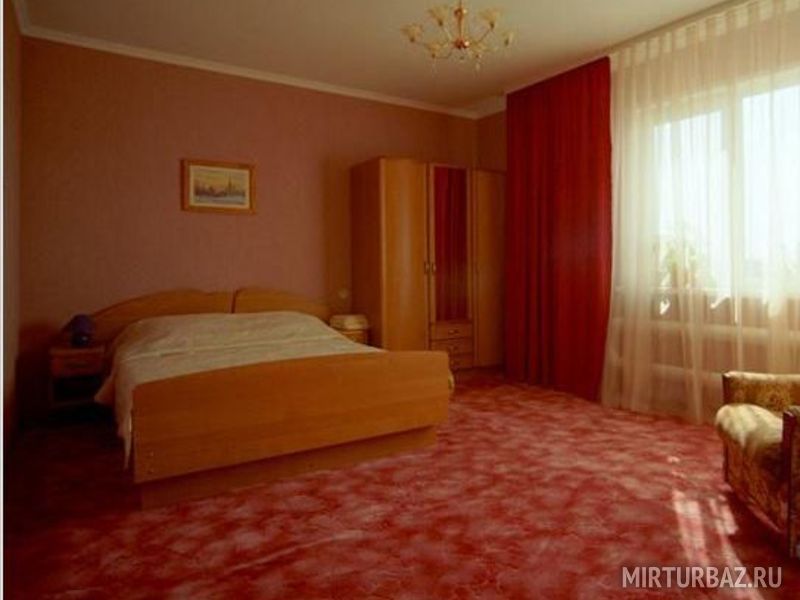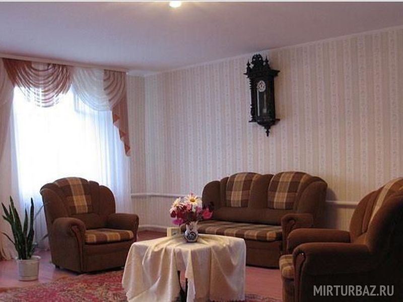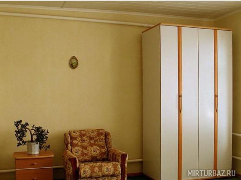 На первом этаже гостевого дома имеется гостиная с телевизором, а также кухня со всем необходимым: стол, стулья, холодильник, микроволновая печь, духовка и плита. Санузел совместный: душ, туалет, раковина. В номере: двуспальная кровать, тумбочки, комод, зеркало, шкаф, мягкая мебель.