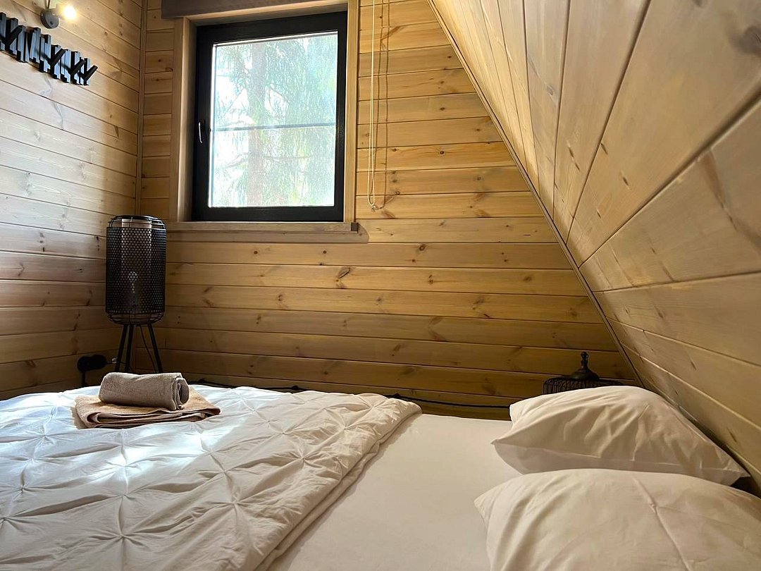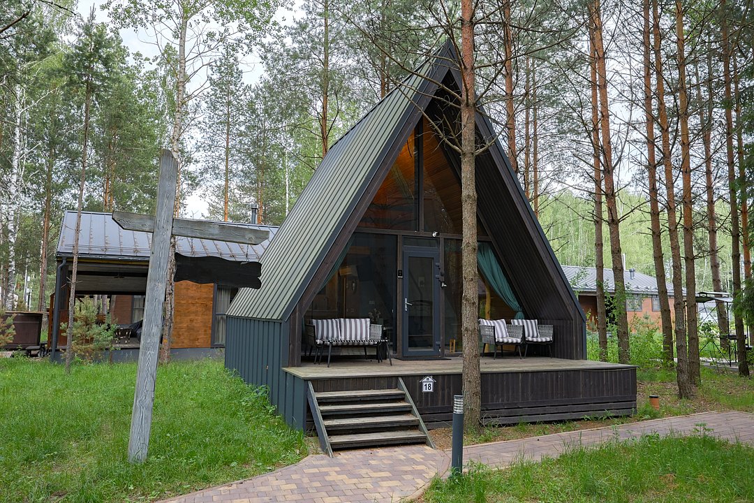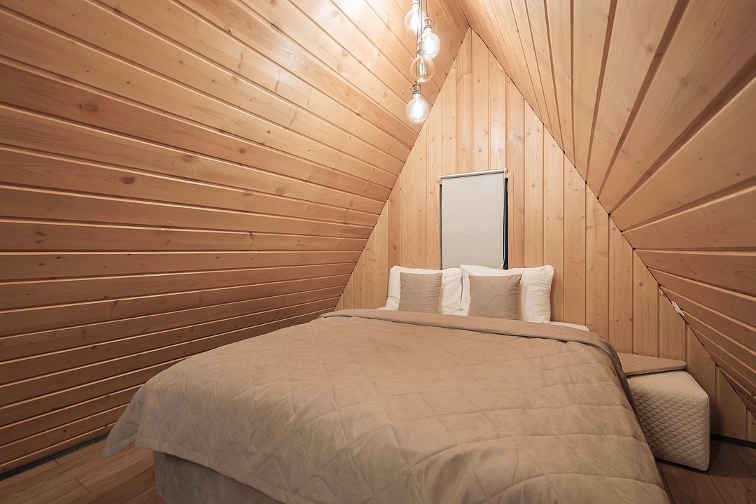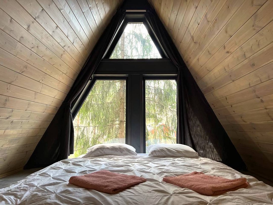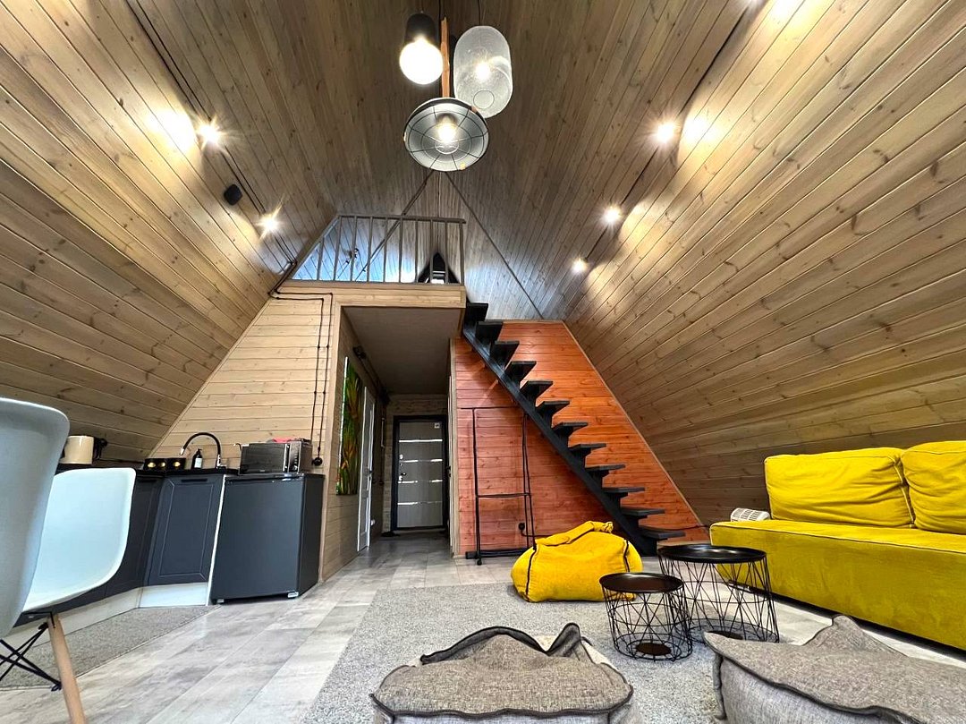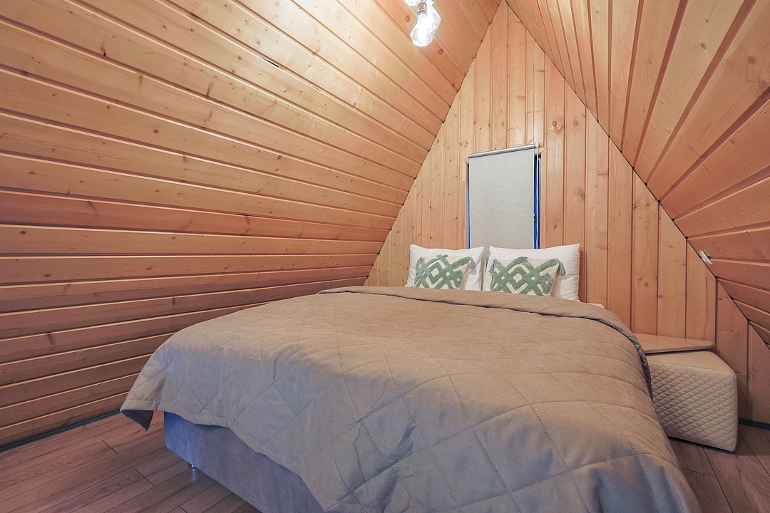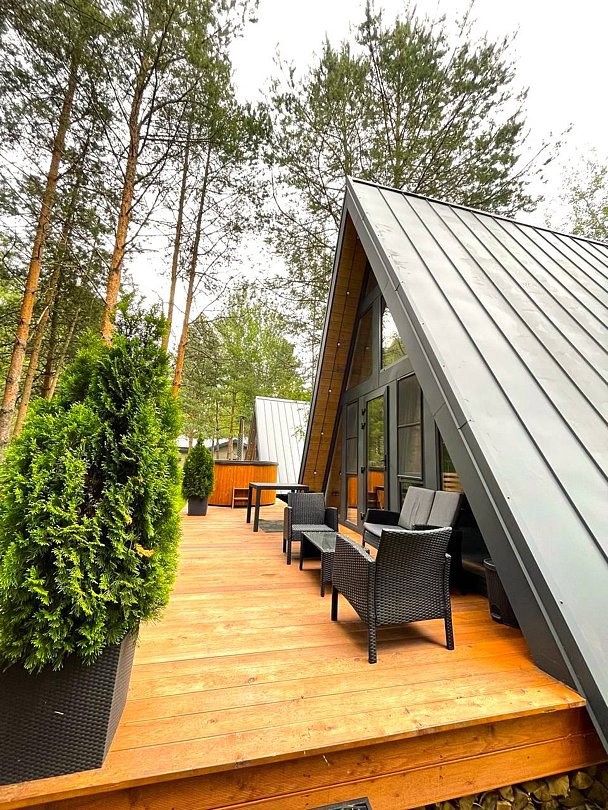 Домик 17 (A-Frame с кондиционером без купели) 55m2, из натурального дерева, двухэтажный.