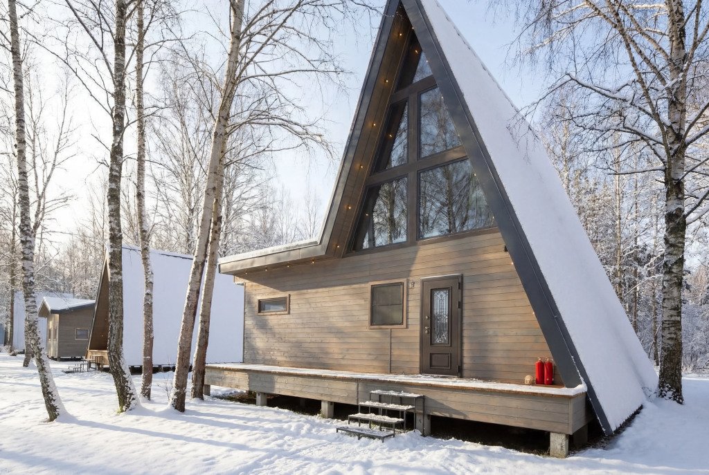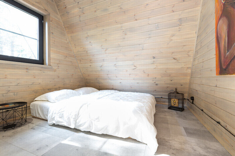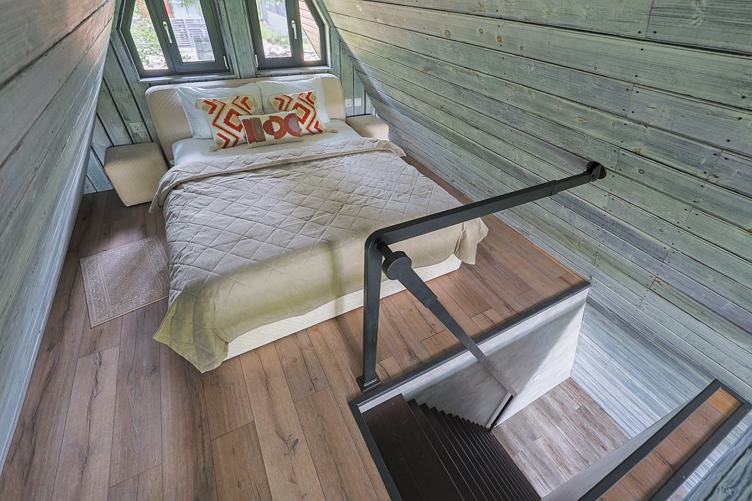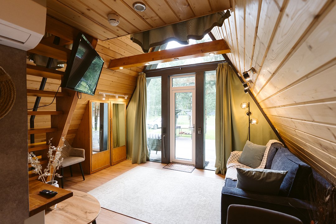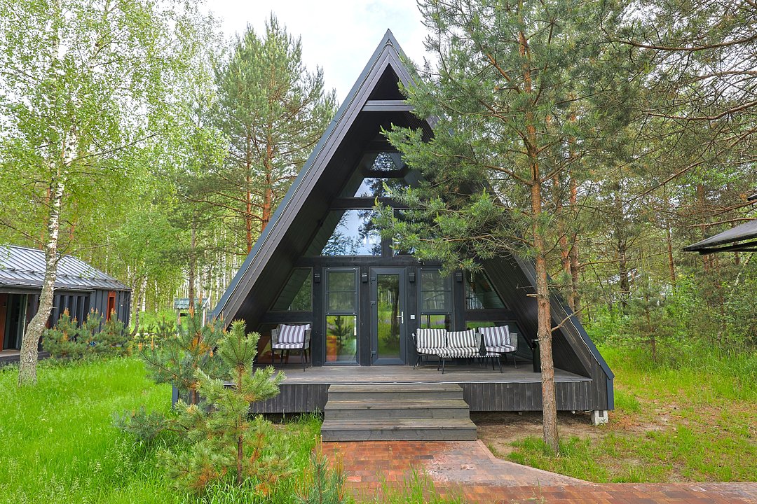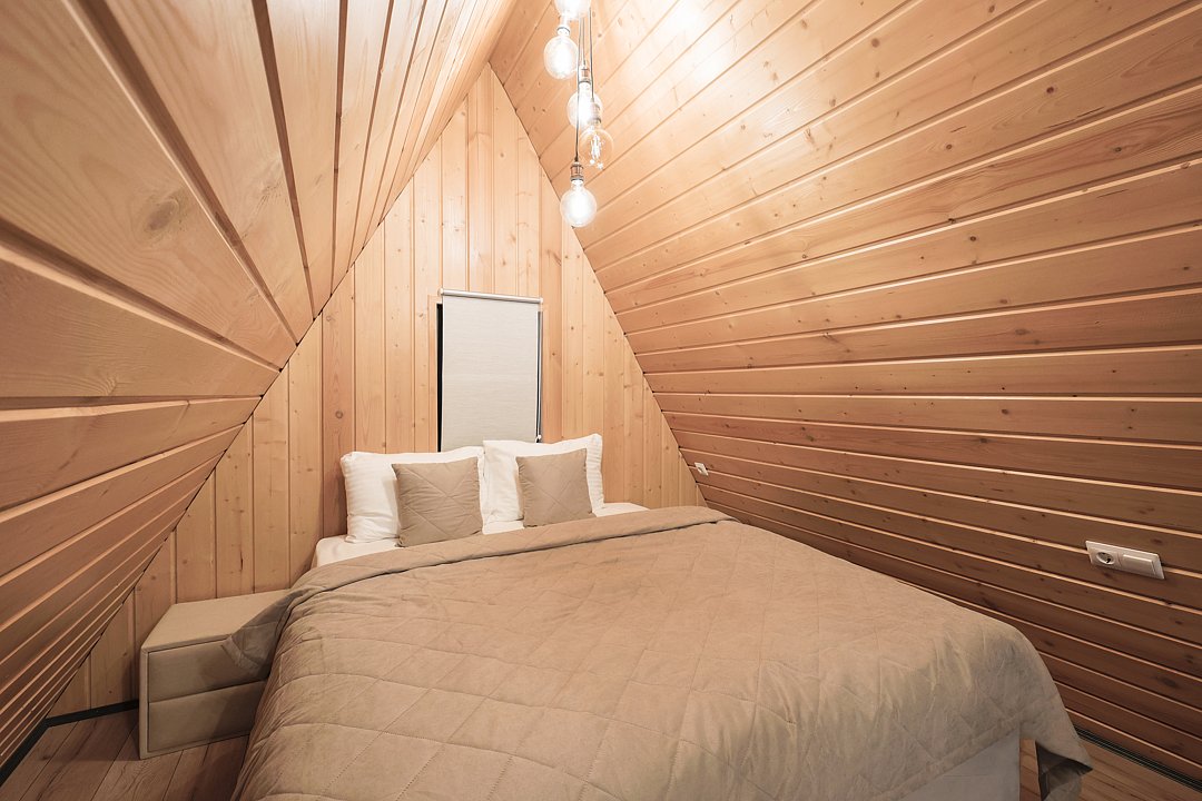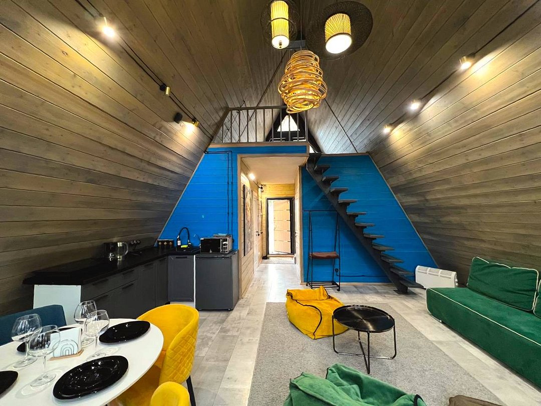 Домик 17 (A-Frame с кондиционером без купели) 55m2, из натурального дерева, двухэтажный.
