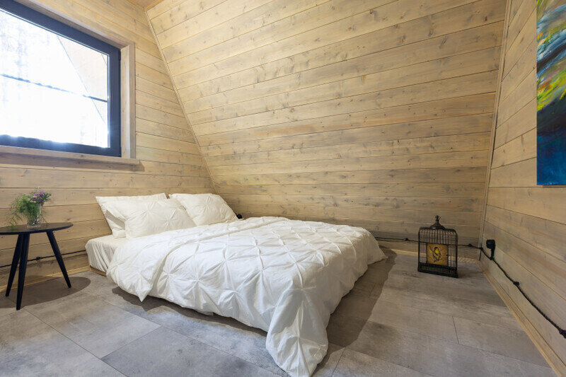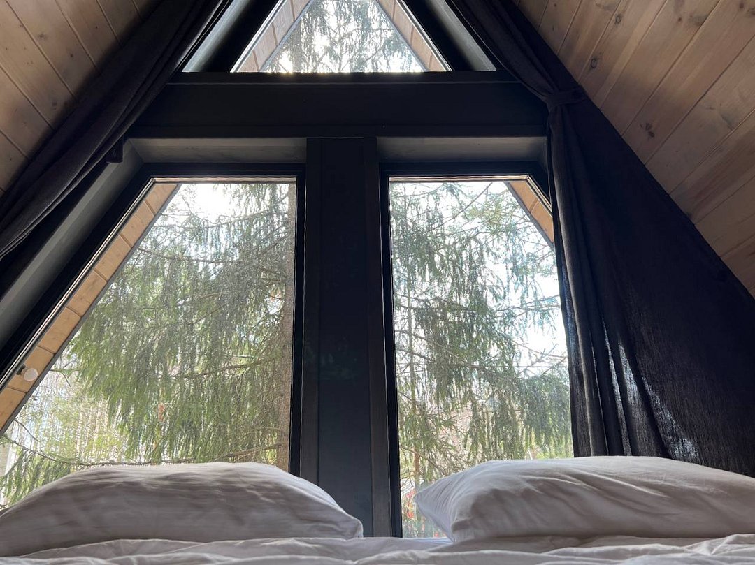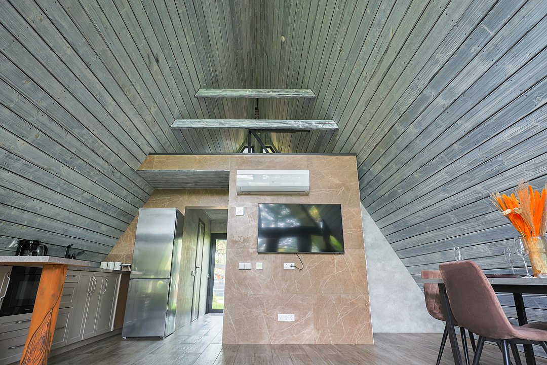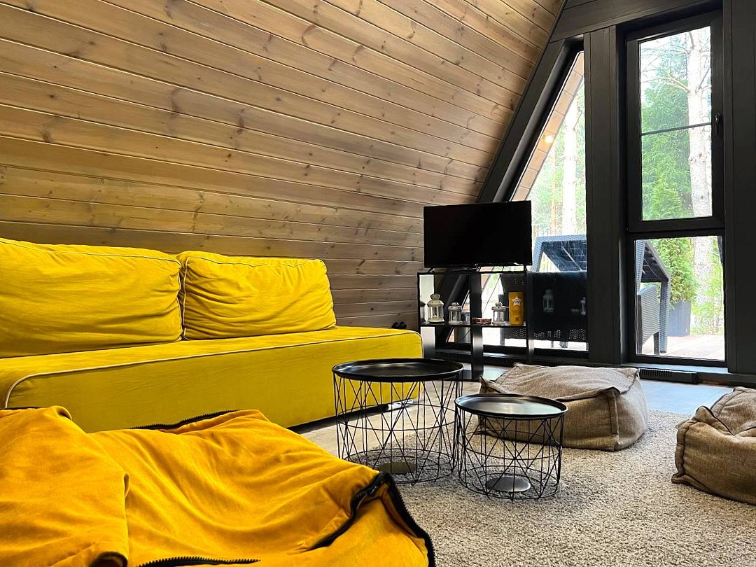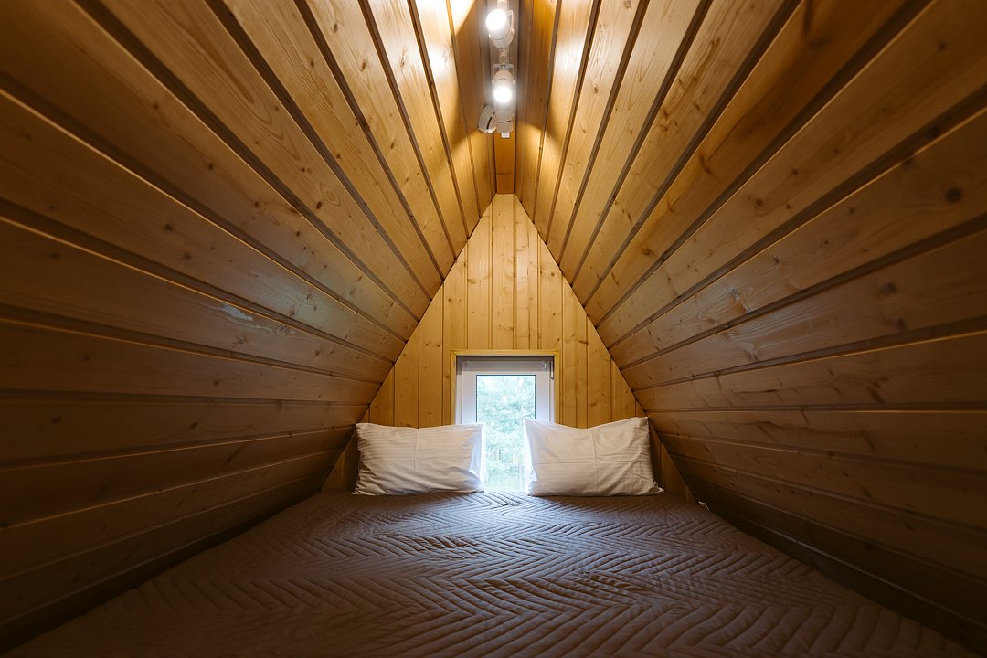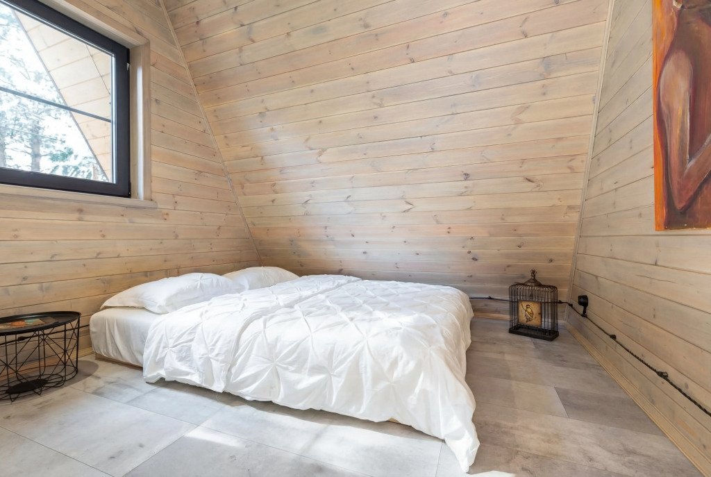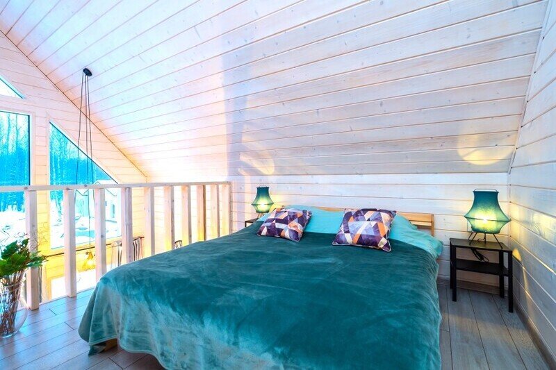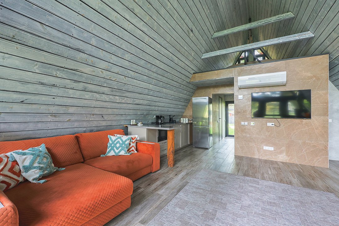 Домик 17 (A-Frame с кондиционером без купели) 55m2, из натурального дерева, двухэтажный.