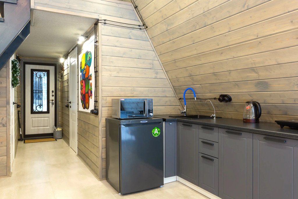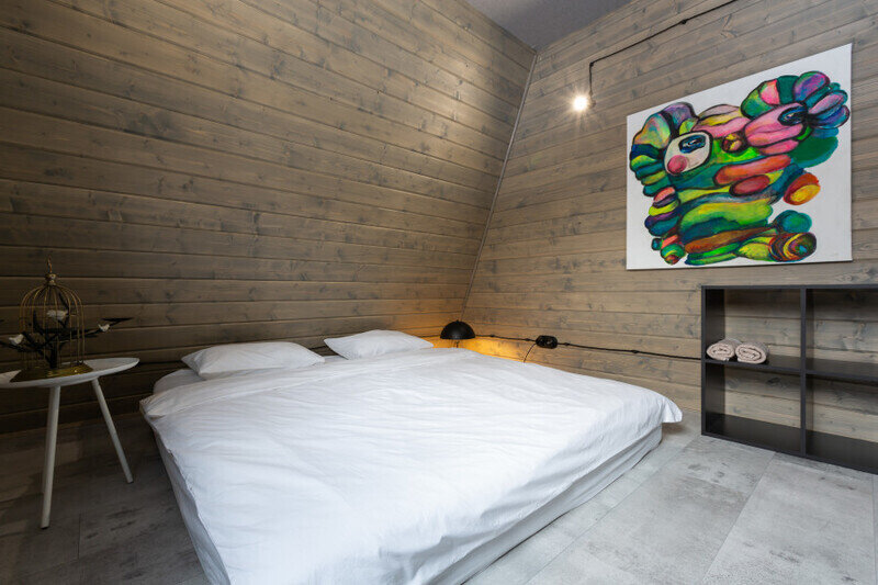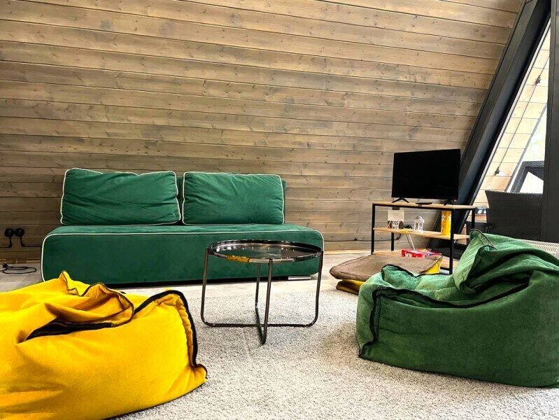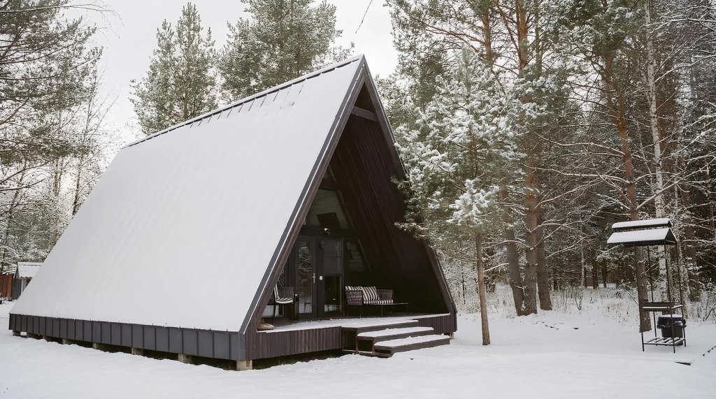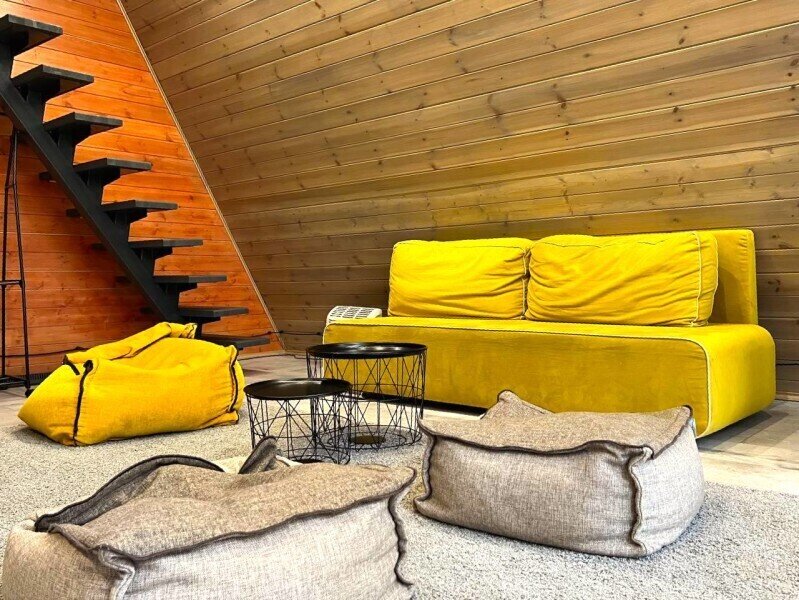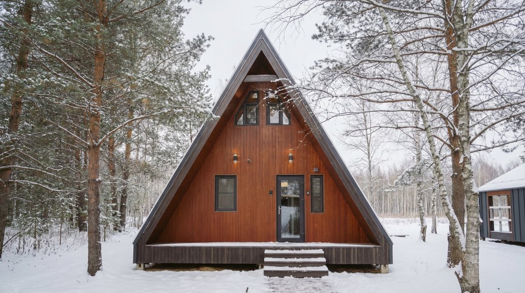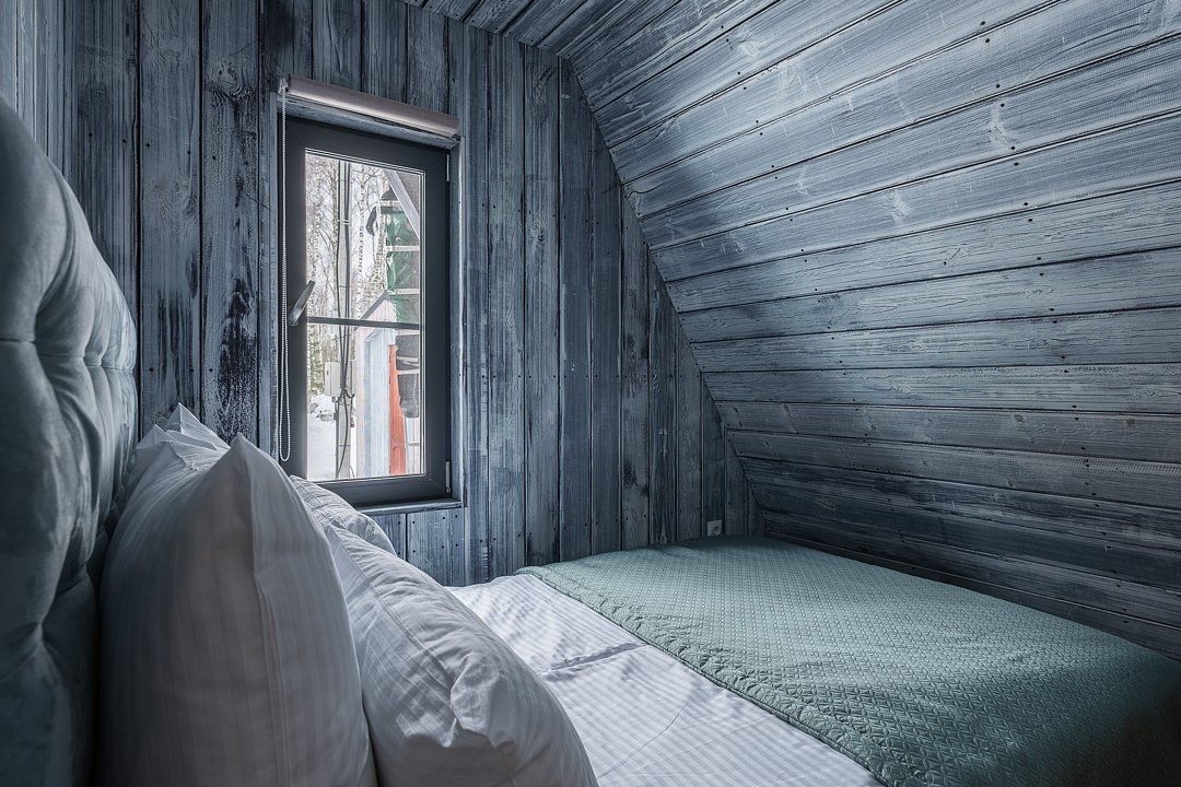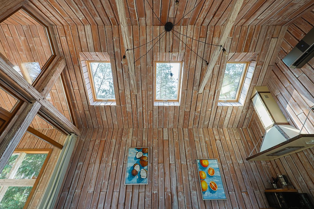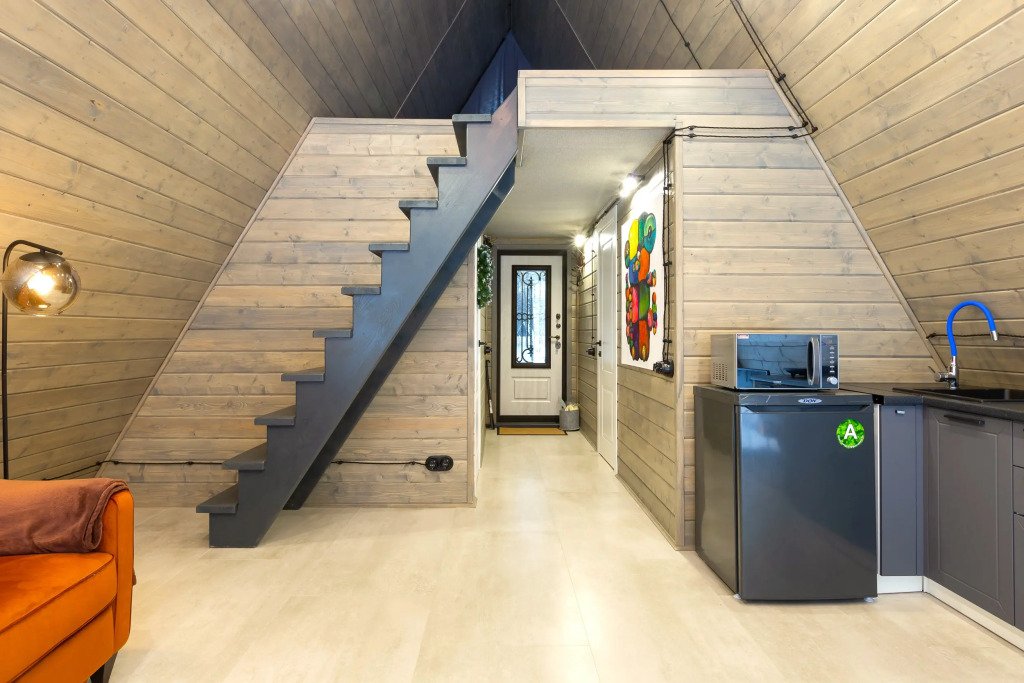 Домик 17 (A-Frame с кондиционером без купели) 55m2, из натурального дерева, двухэтажный.