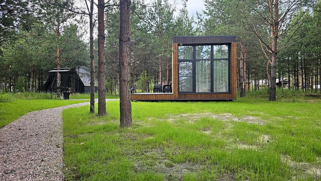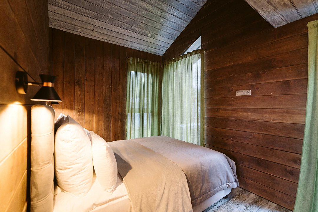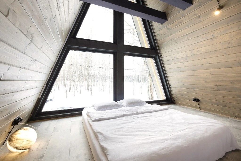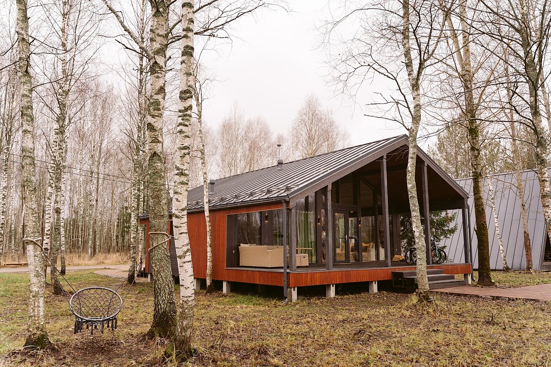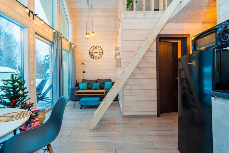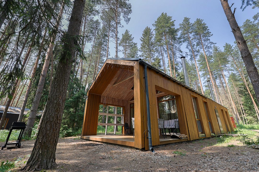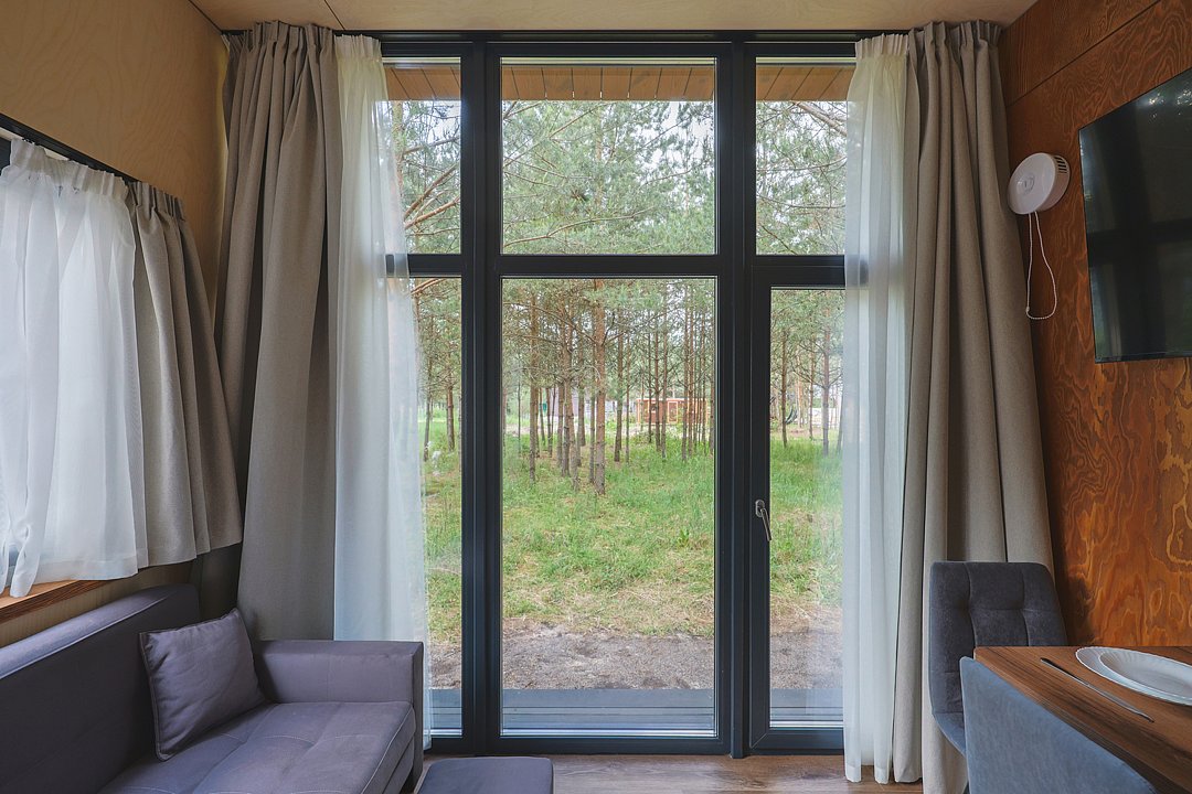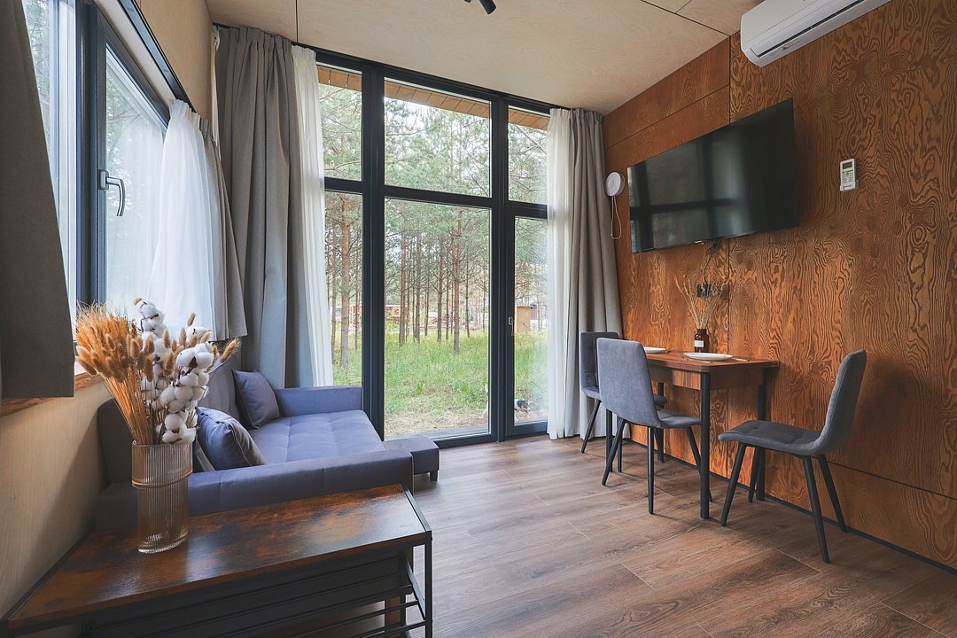 Каждый домик в глэмпинге выполнен в скандинавском дизайне, который прекрасно сочетается с минимализмом, создавая стильную и уютную атмосферу. Большие панорамные окна позволяют наслаждаться живописными видами в любое время года, а богатое естественное освещение добавляет домику света и радости.