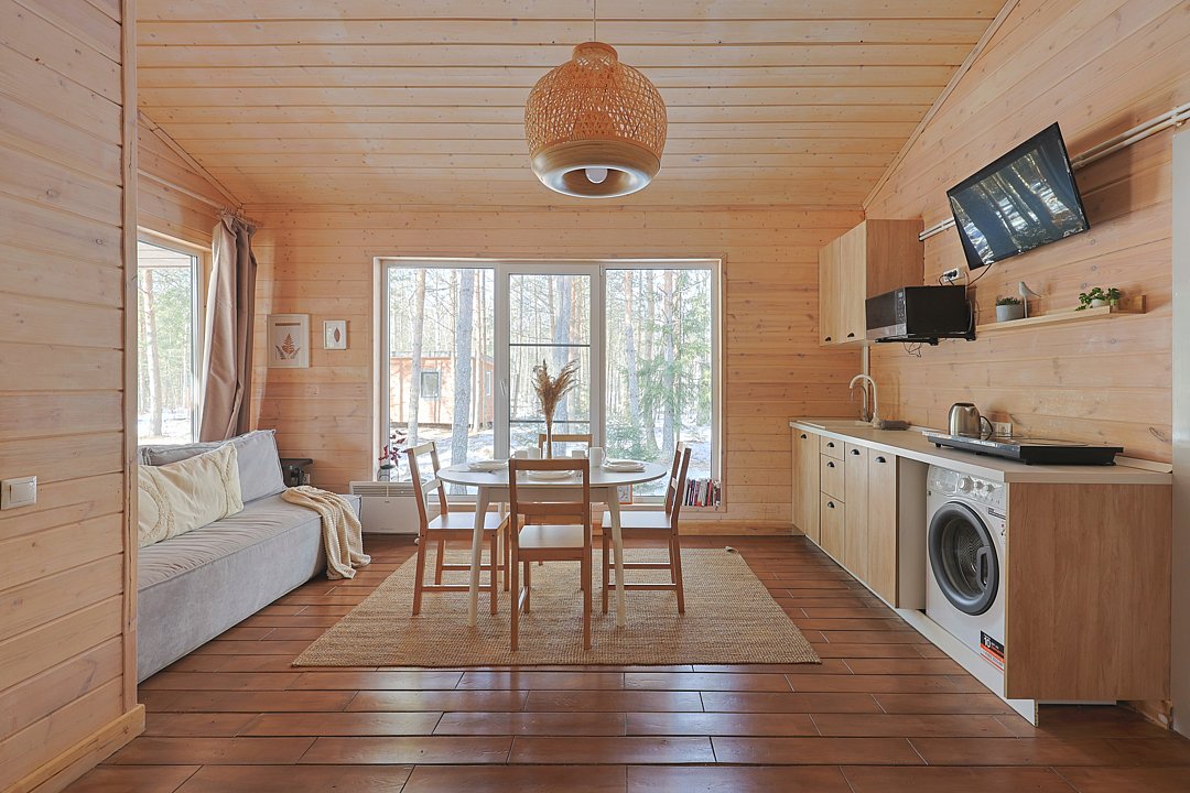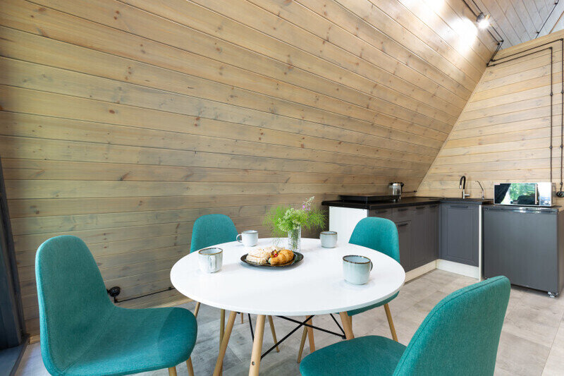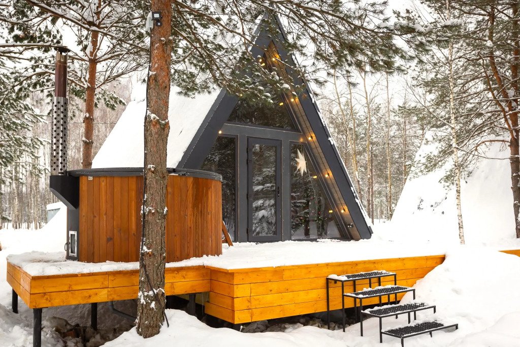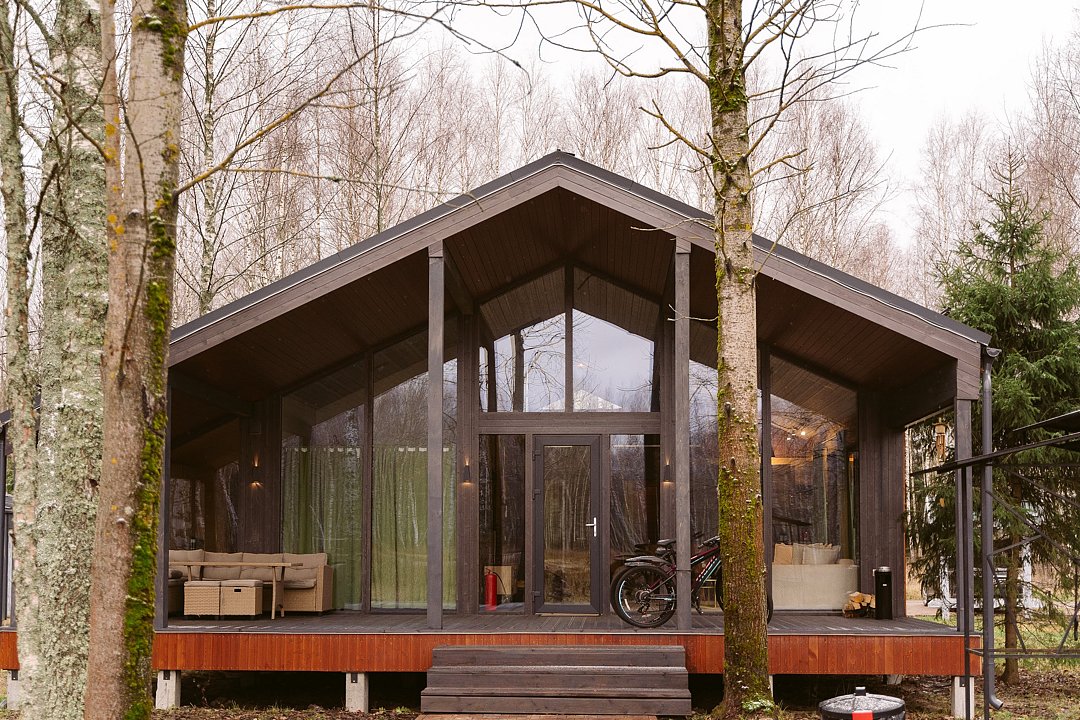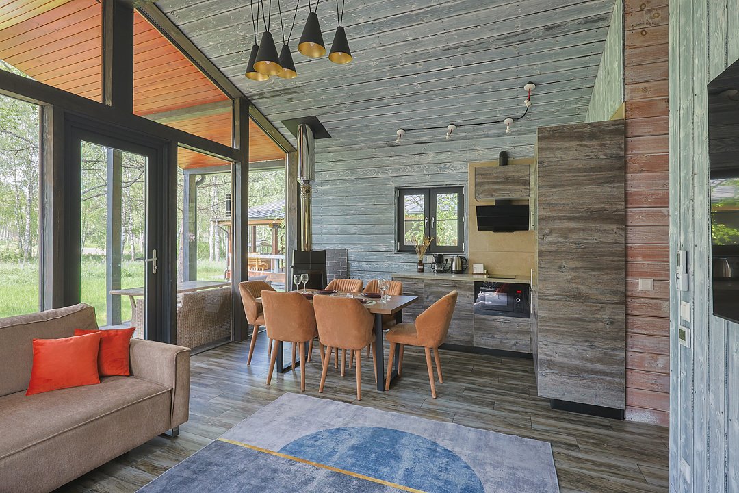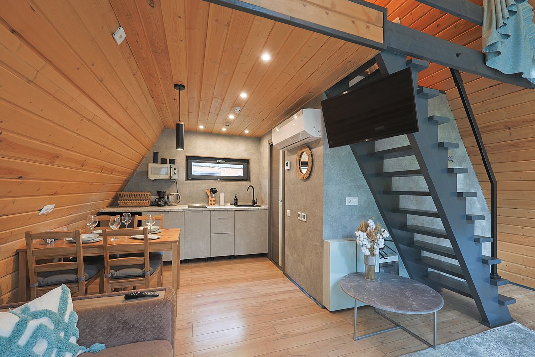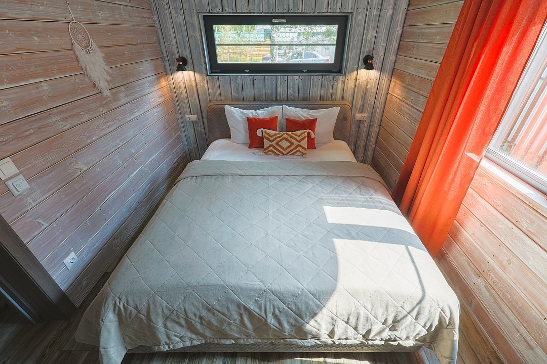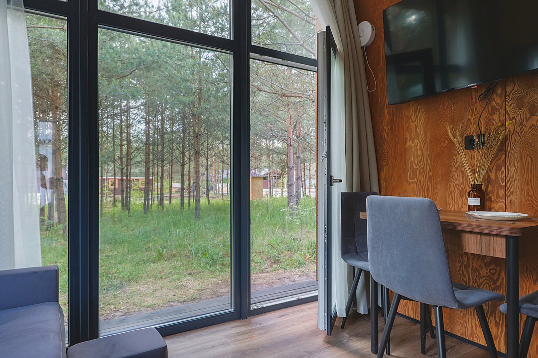 Каждый домик в глэмпинге выполнен в скандинавском дизайне, который прекрасно сочетается с минимализмом, создавая стильную и уютную атмосферу. Большие панорамные окна позволяют наслаждаться живописными видами в любое время года, а богатое естественное освещение добавляет домику света и радости.