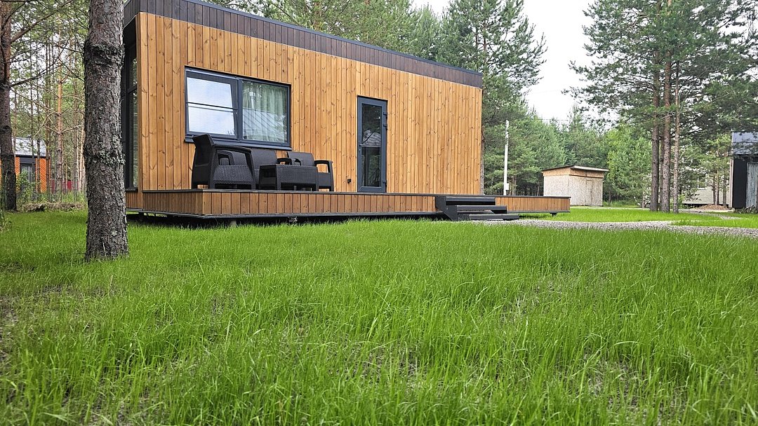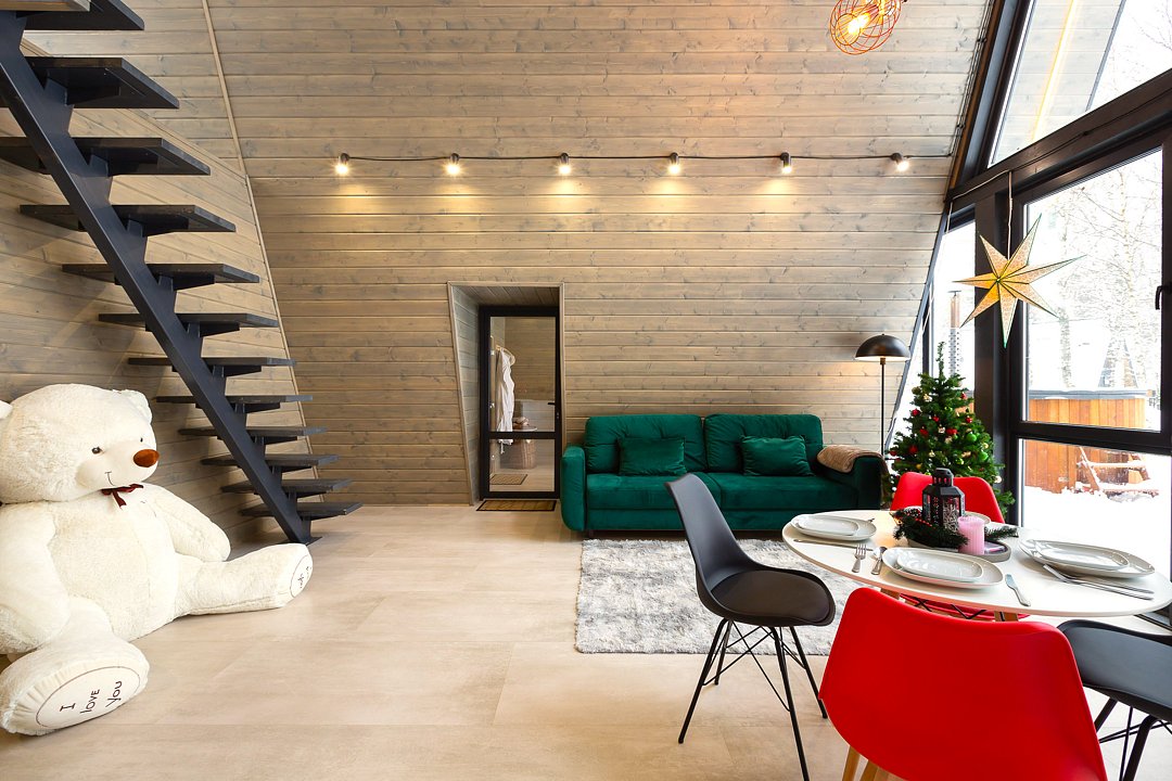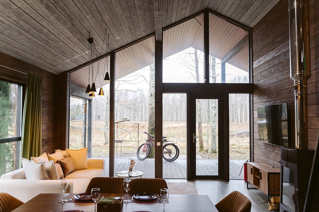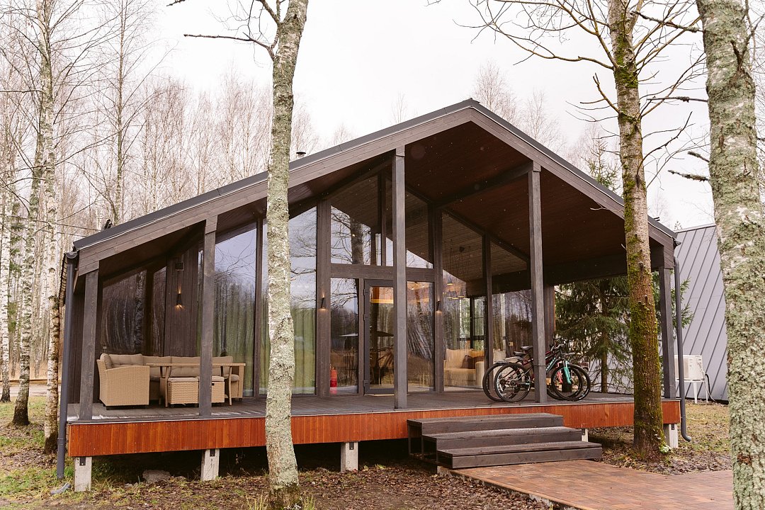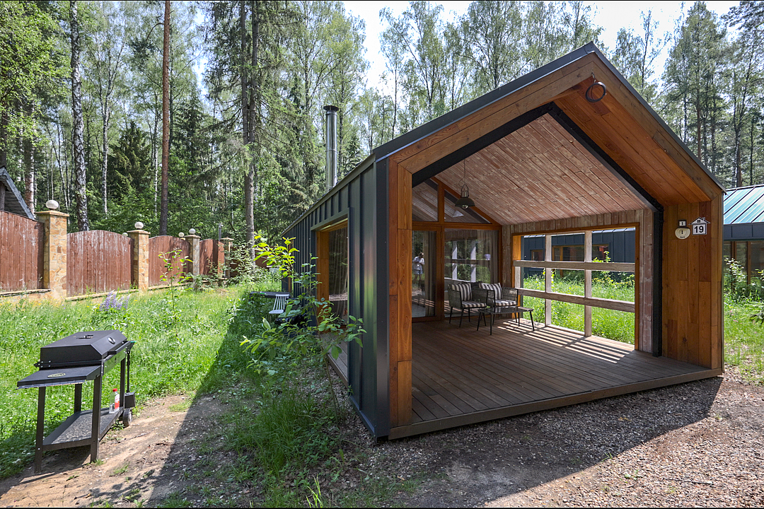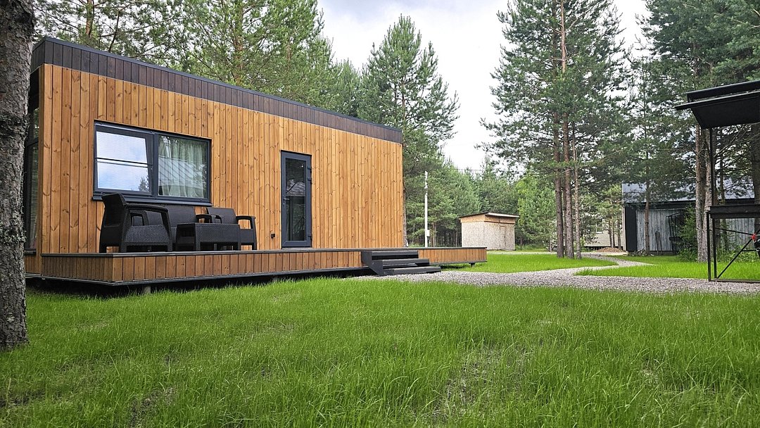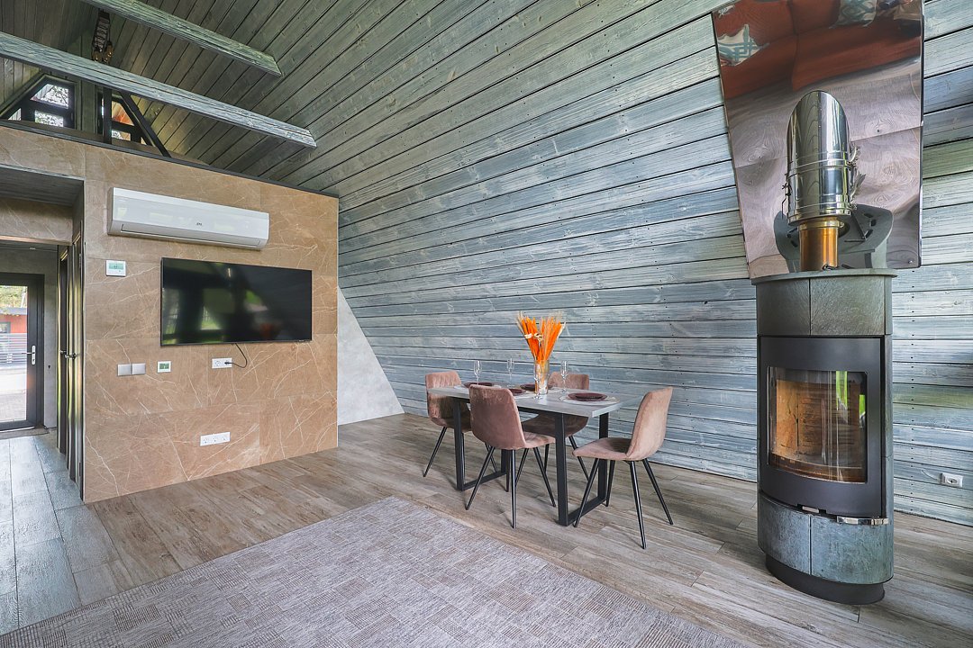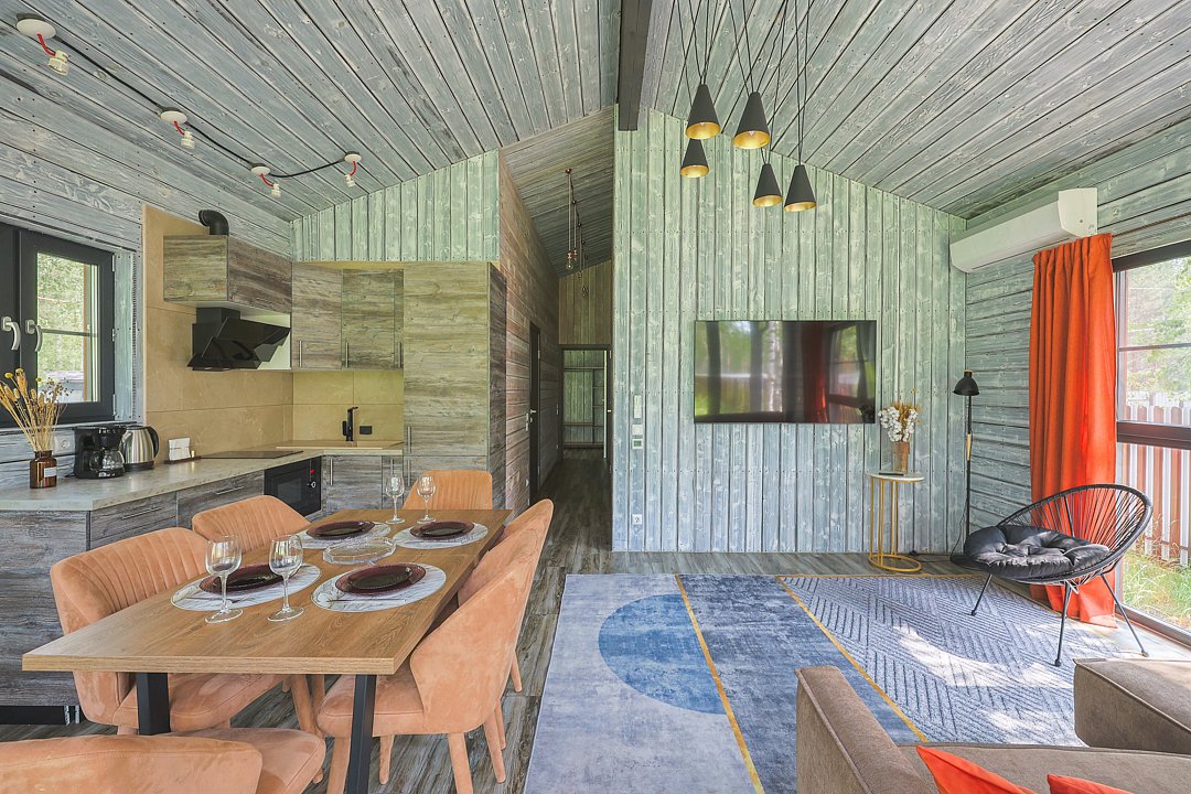 Каждый домик в глэмпинге выполнен в скандинавском дизайне, который прекрасно сочетается с минимализмом, создавая стильную и уютную атмосферу. Большие панорамные окна позволяют наслаждаться живописными видами в любое время года, а богатое естественное освещение добавляет домику света и радости.
