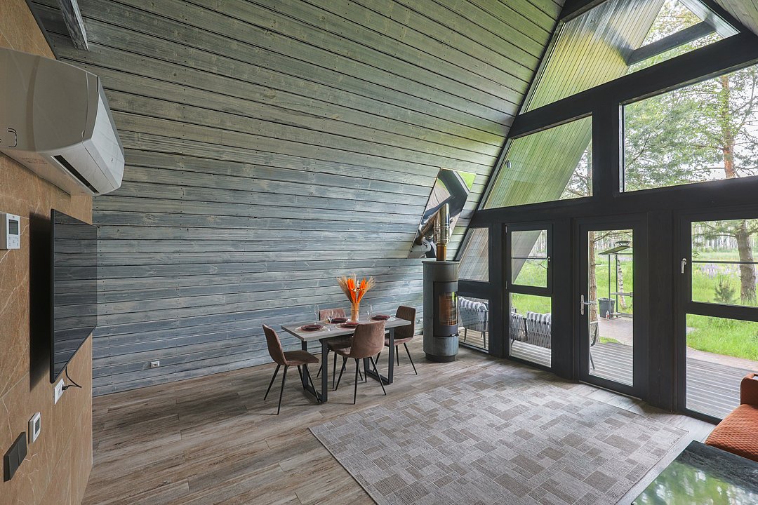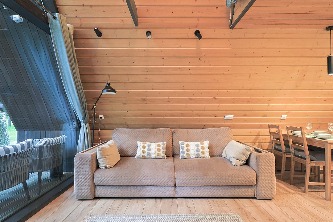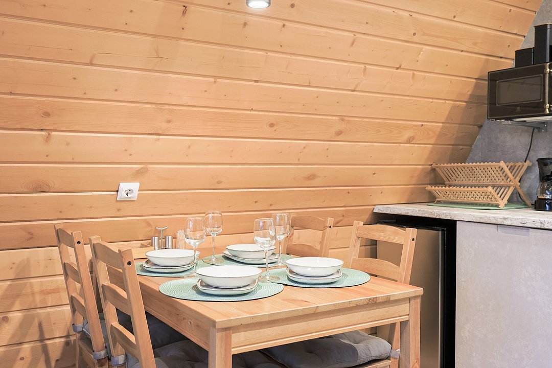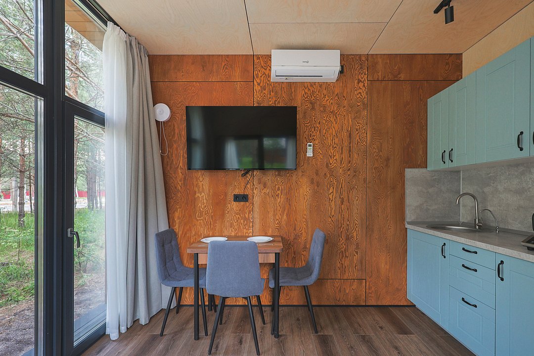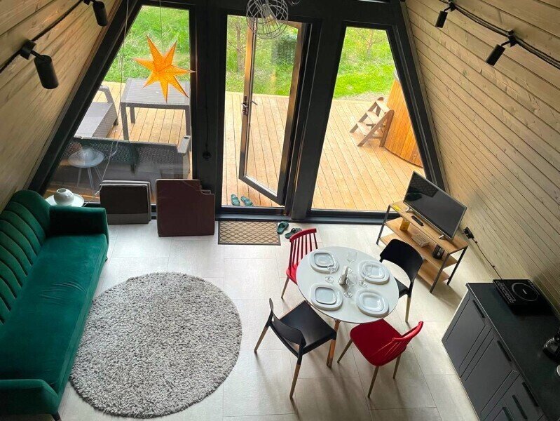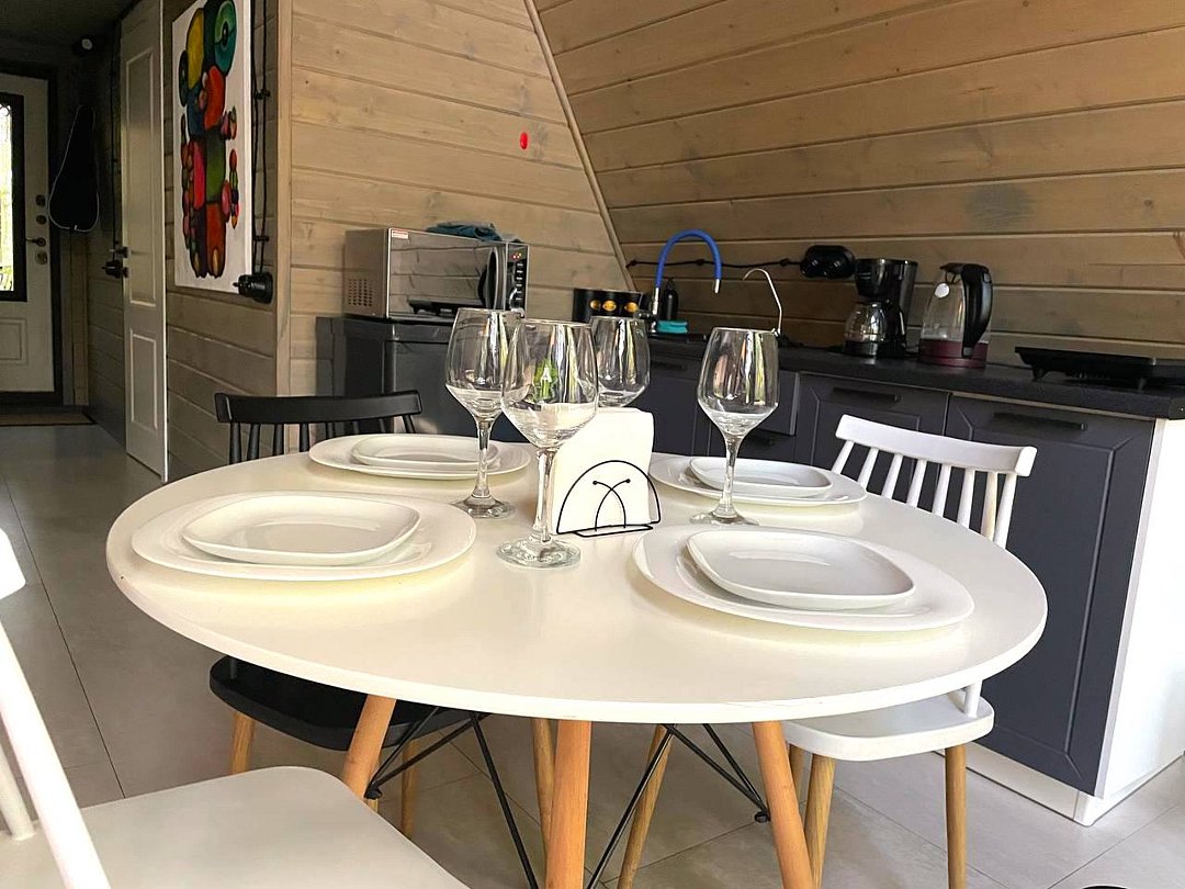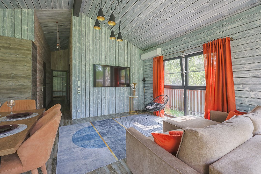 Каждый домик в глэмпинге выполнен в скандинавском дизайне, который прекрасно сочетается с минимализмом, создавая стильную и уютную атмосферу. Большие панорамные окна позволяют наслаждаться живописными видами в любое время года, а богатое естественное освещение добавляет домику света и радости.