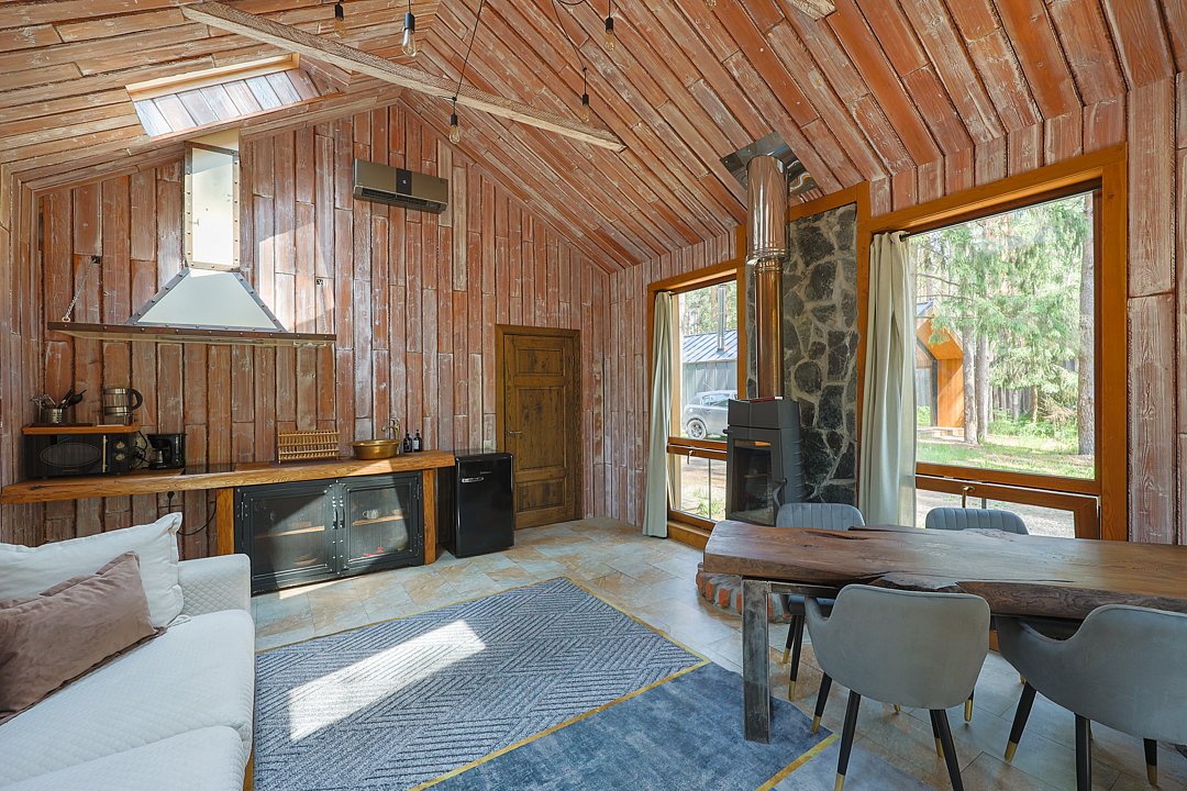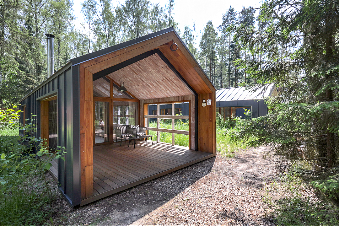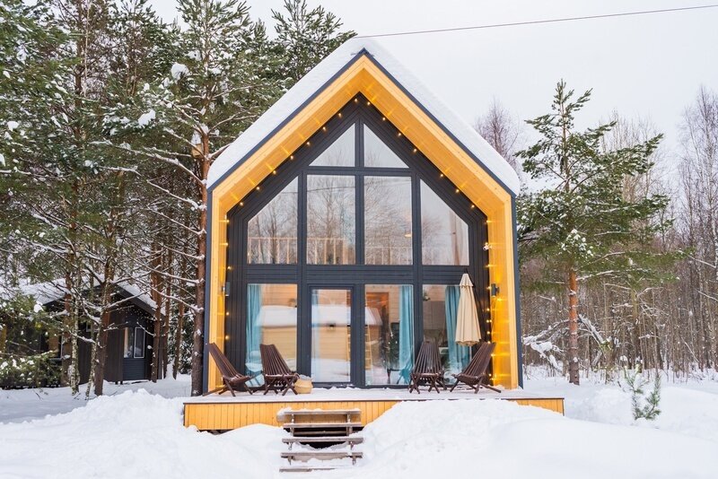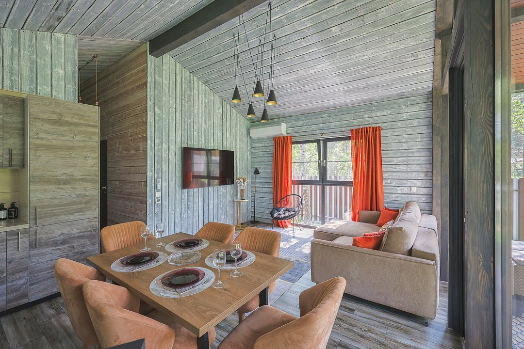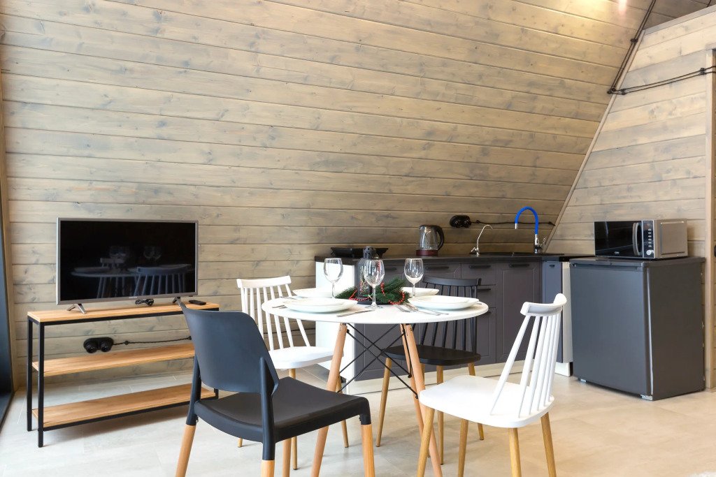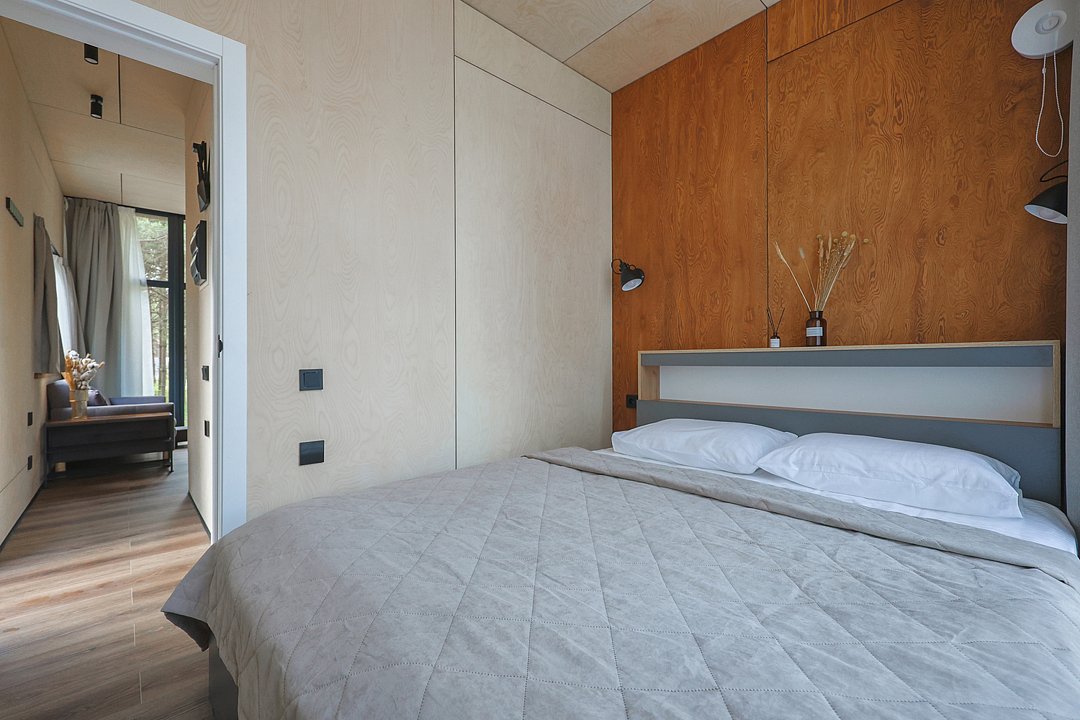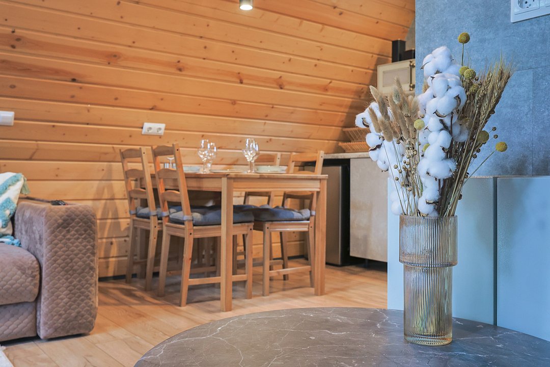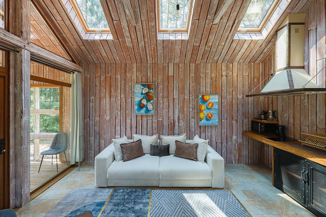 Каждый домик в глэмпинге выполнен в скандинавском дизайне, который прекрасно сочетается с минимализмом, создавая стильную и уютную атмосферу. Большие панорамные окна позволяют наслаждаться живописными видами в любое время года, а богатое естественное освещение добавляет домику света и радости.