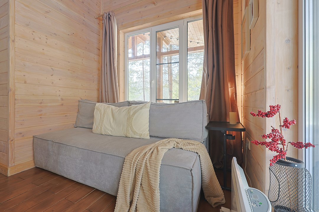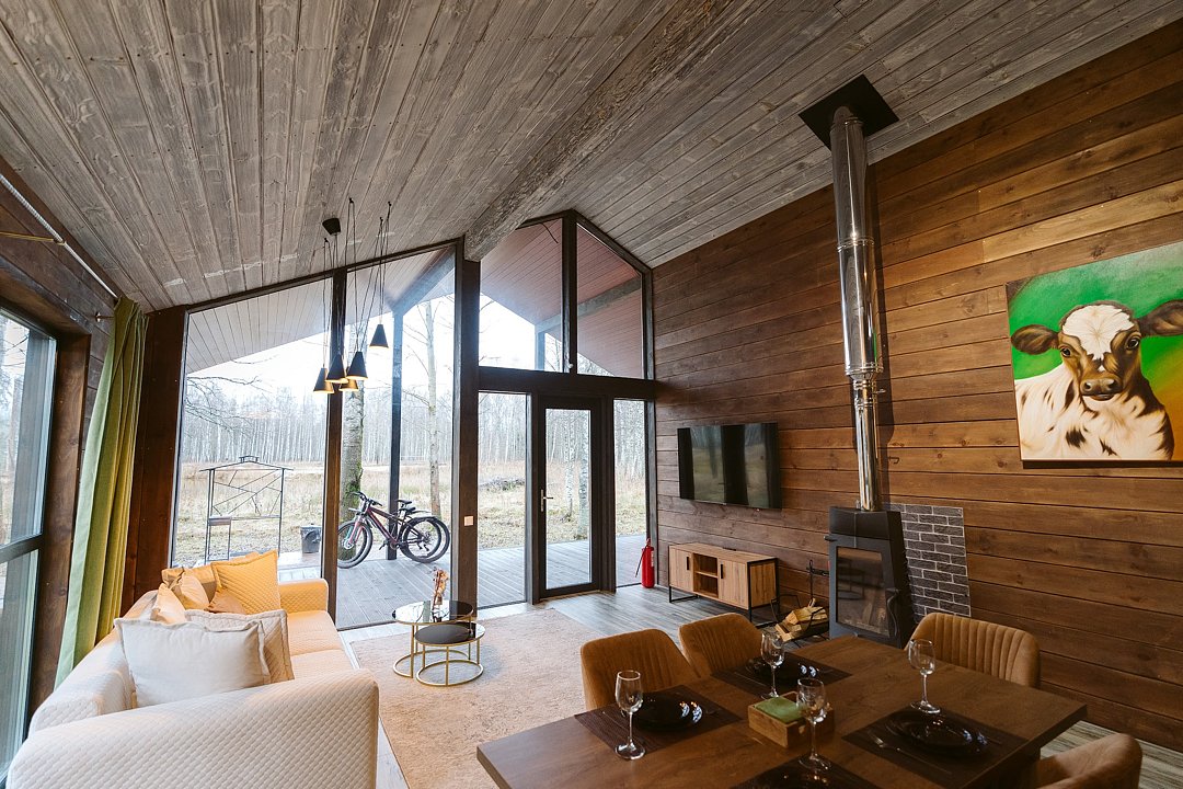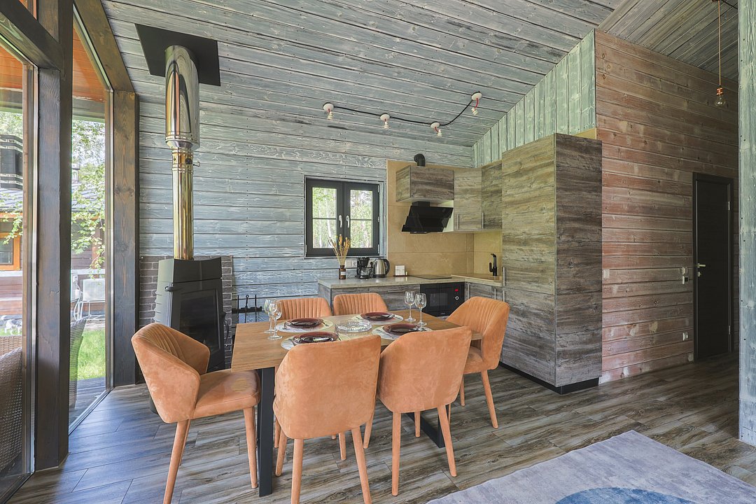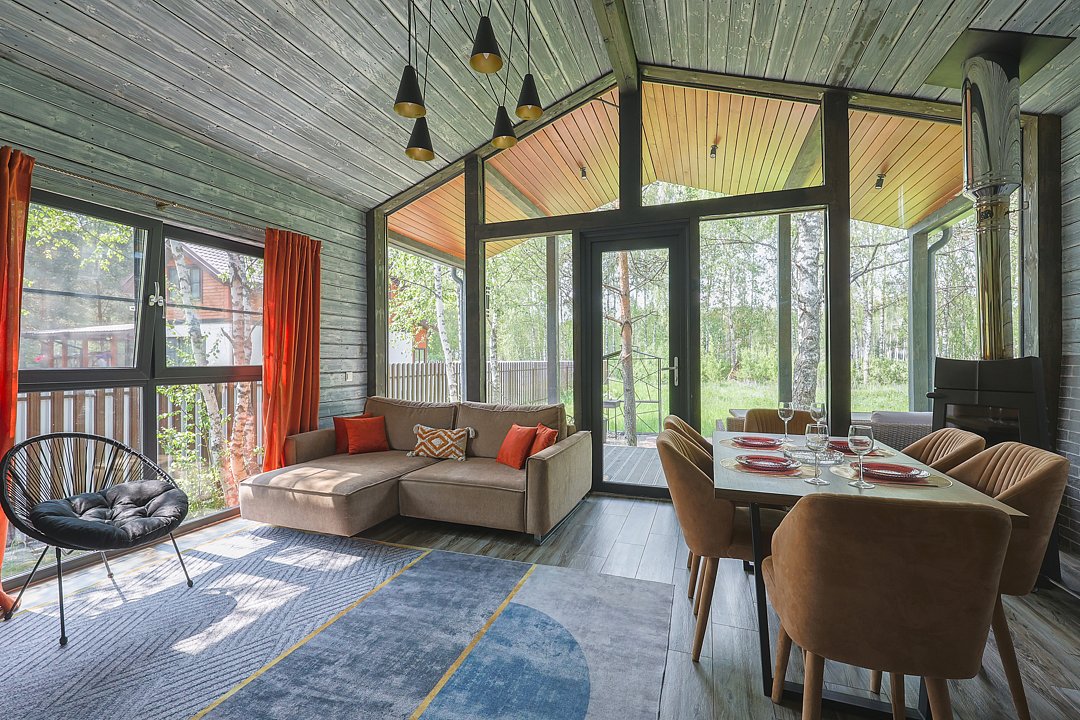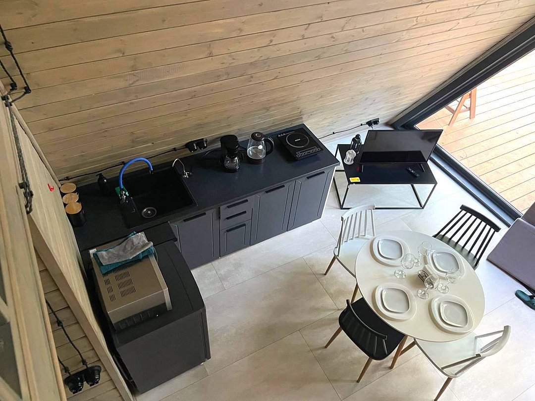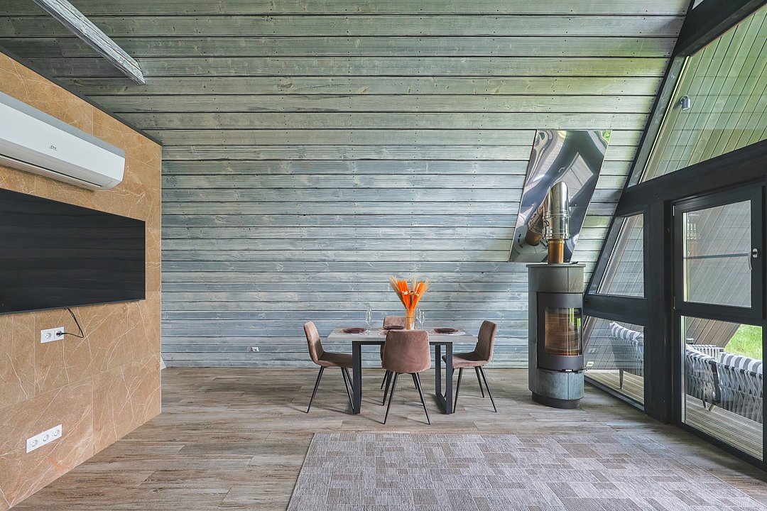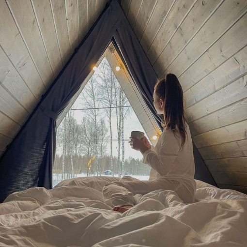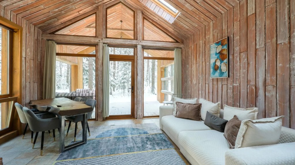 Каждый домик в глэмпинге выполнен в скандинавском дизайне, который прекрасно сочетается с минимализмом, создавая стильную и уютную атмосферу. Большие панорамные окна позволяют наслаждаться живописными видами в любое время года, а богатое естественное освещение добавляет домику света и радости.
