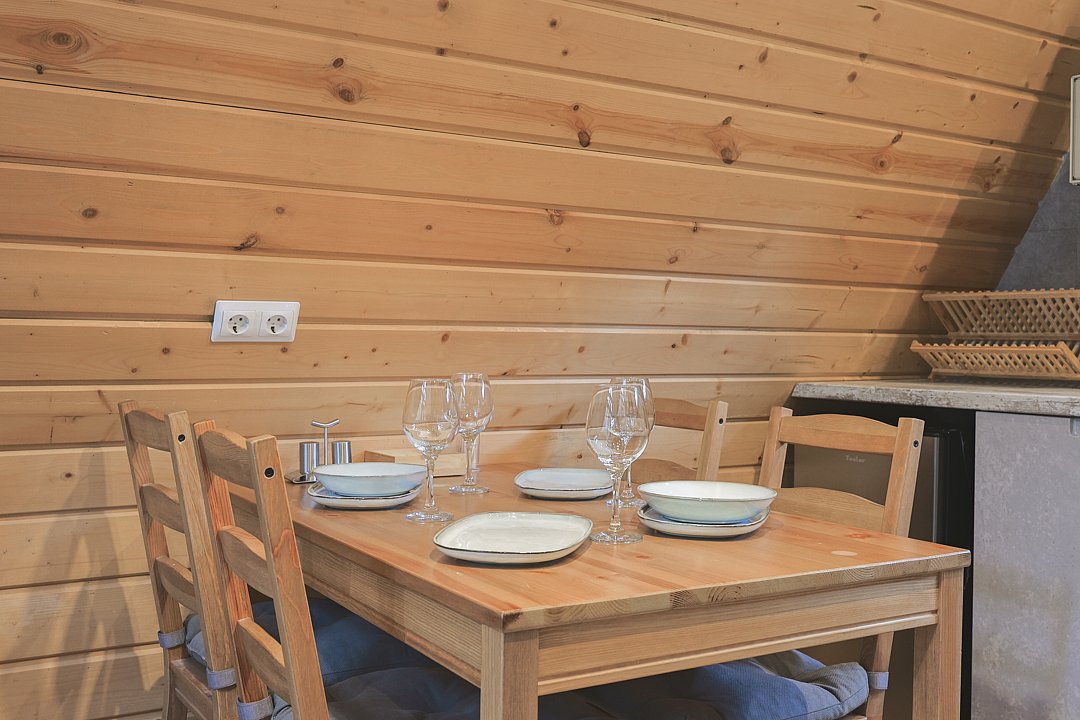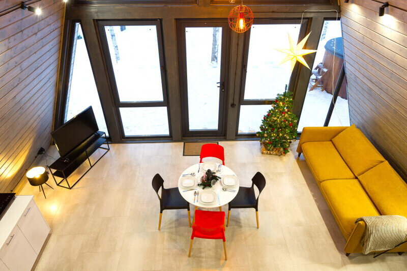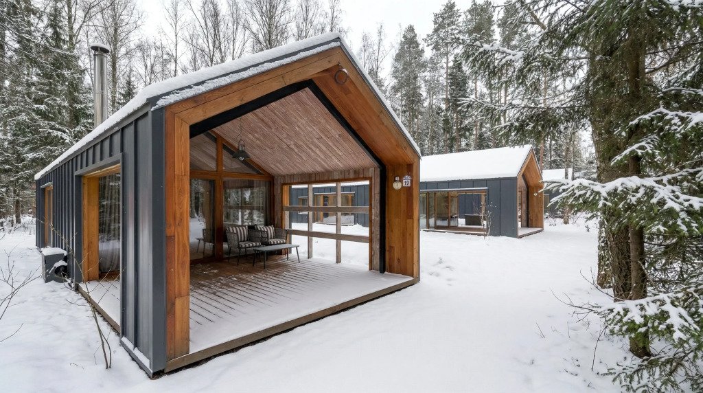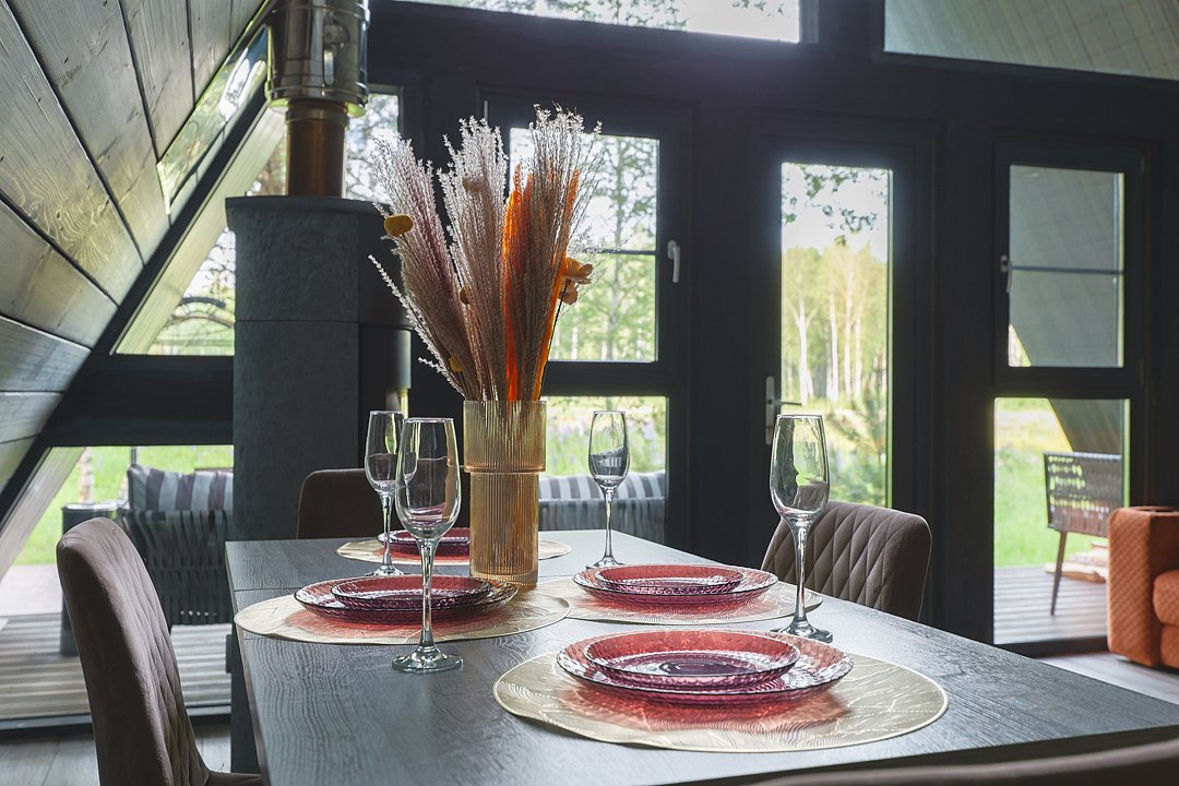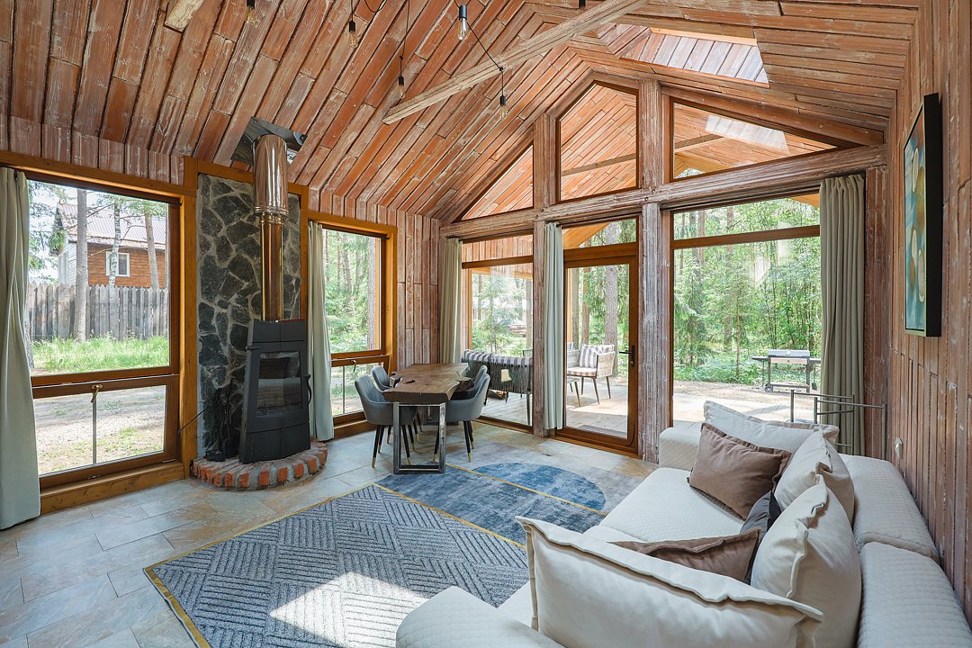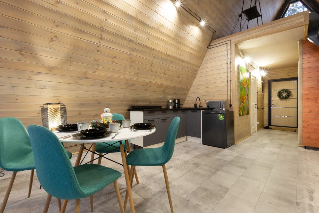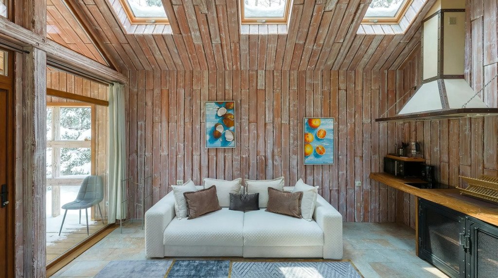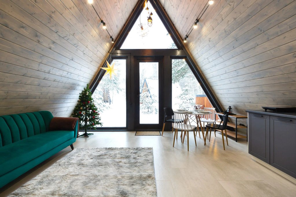 Каждый домик в глэмпинге выполнен в скандинавском дизайне, который прекрасно сочетается с минимализмом, создавая стильную и уютную атмосферу. Большие панорамные окна позволяют наслаждаться живописными видами в любое время года, а богатое естественное освещение добавляет домику света и радости.