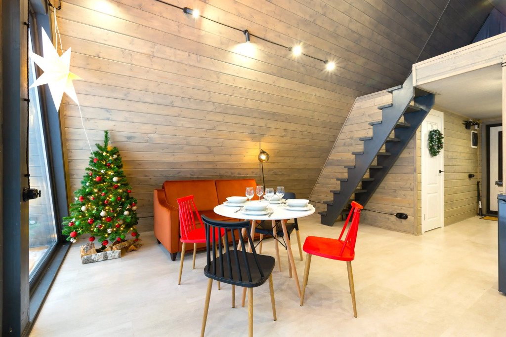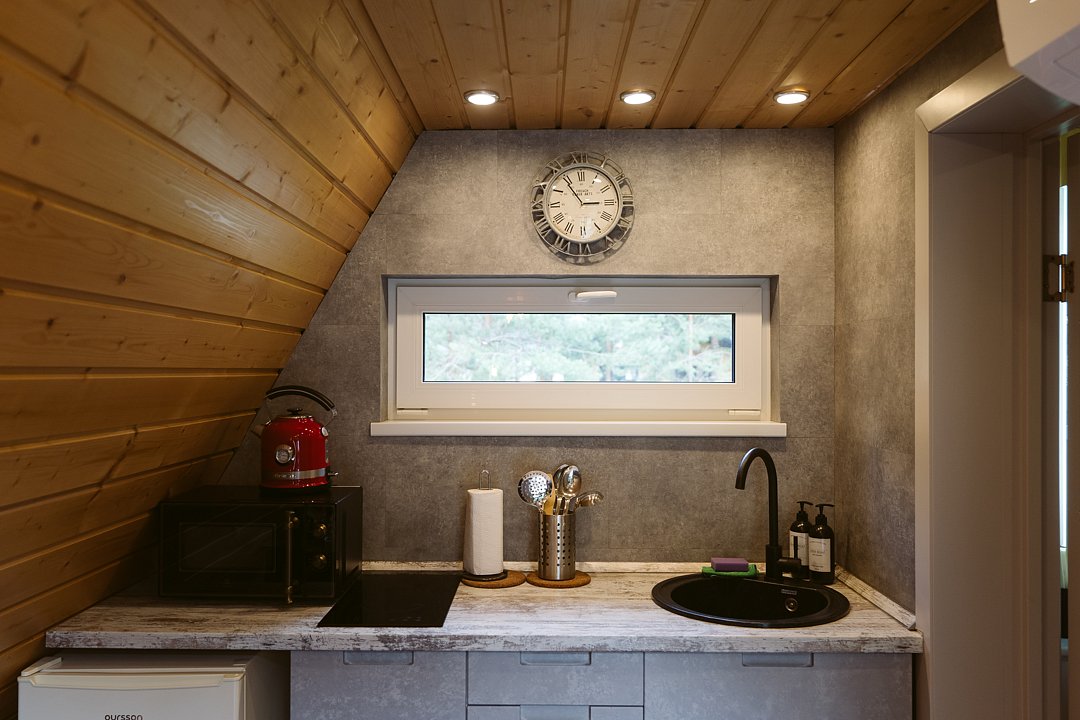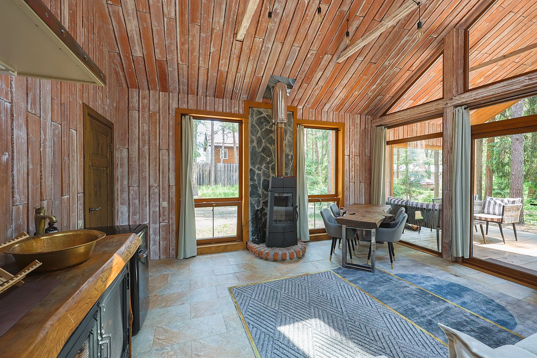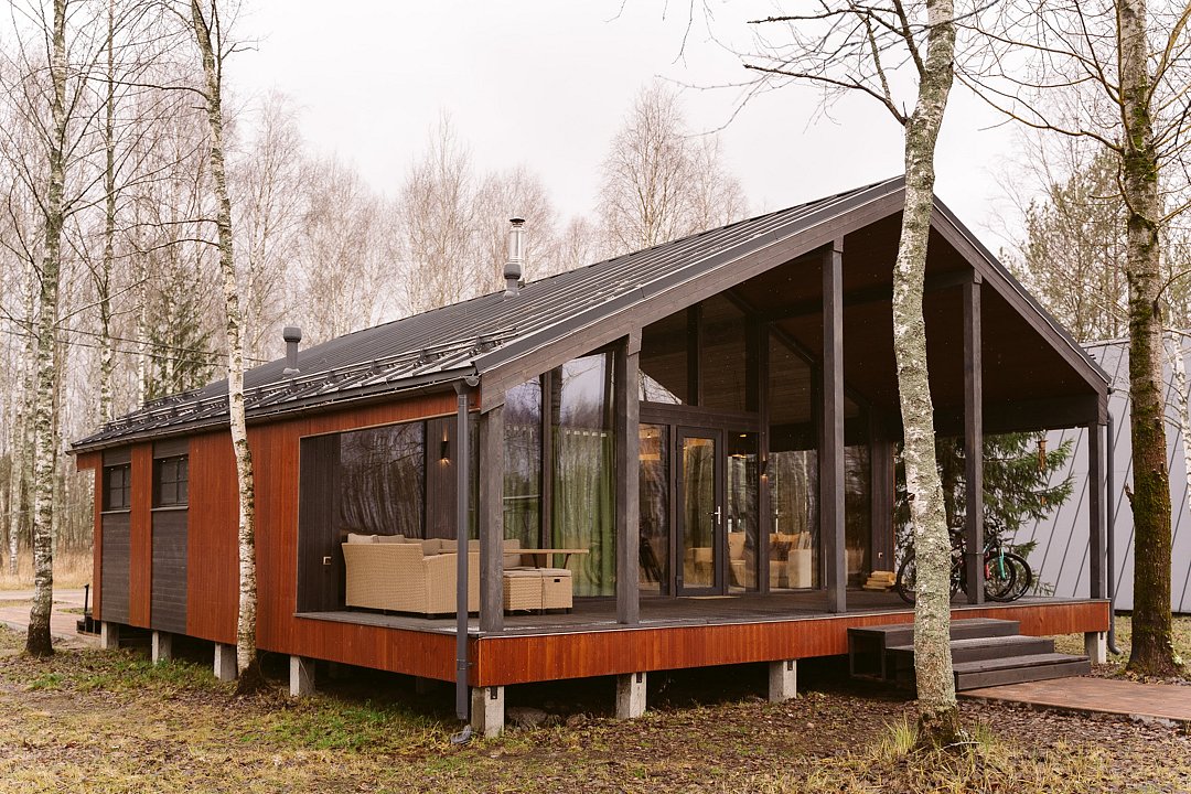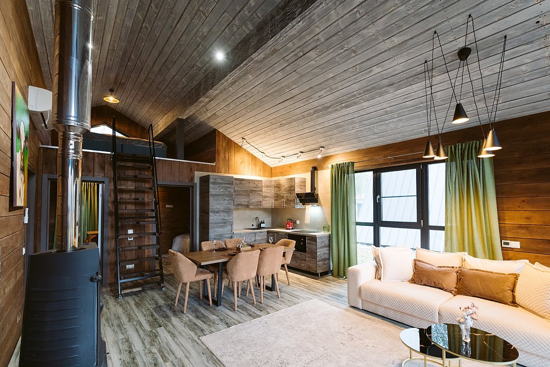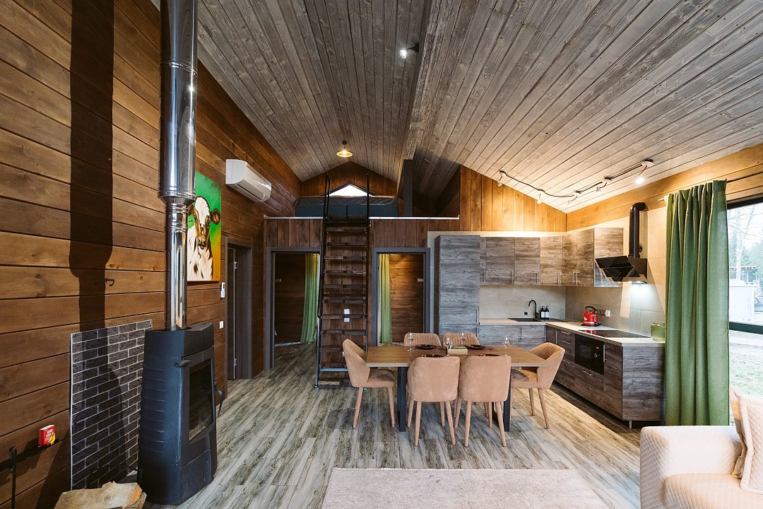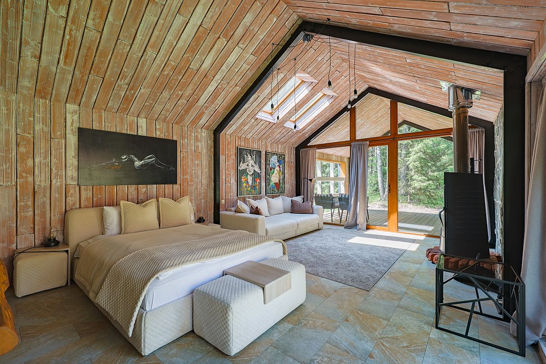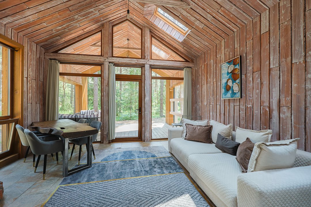 Каждый домик в глэмпинге выполнен в скандинавском дизайне, который прекрасно сочетается с минимализмом, создавая стильную и уютную атмосферу. Большие панорамные окна позволяют наслаждаться живописными видами в любое время года, а богатое естественное освещение добавляет домику света и радости.
