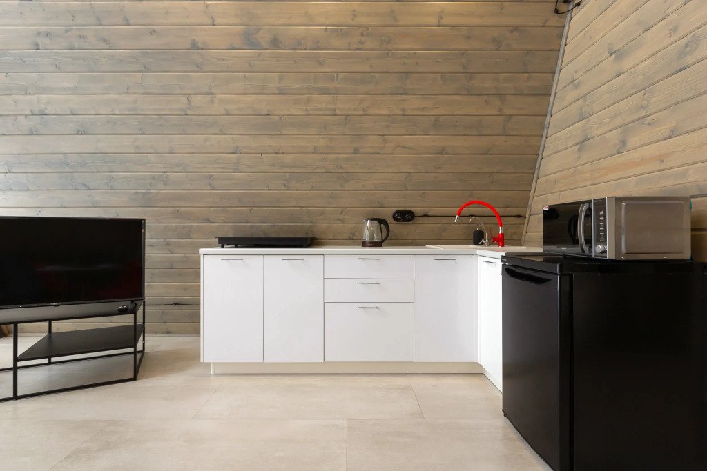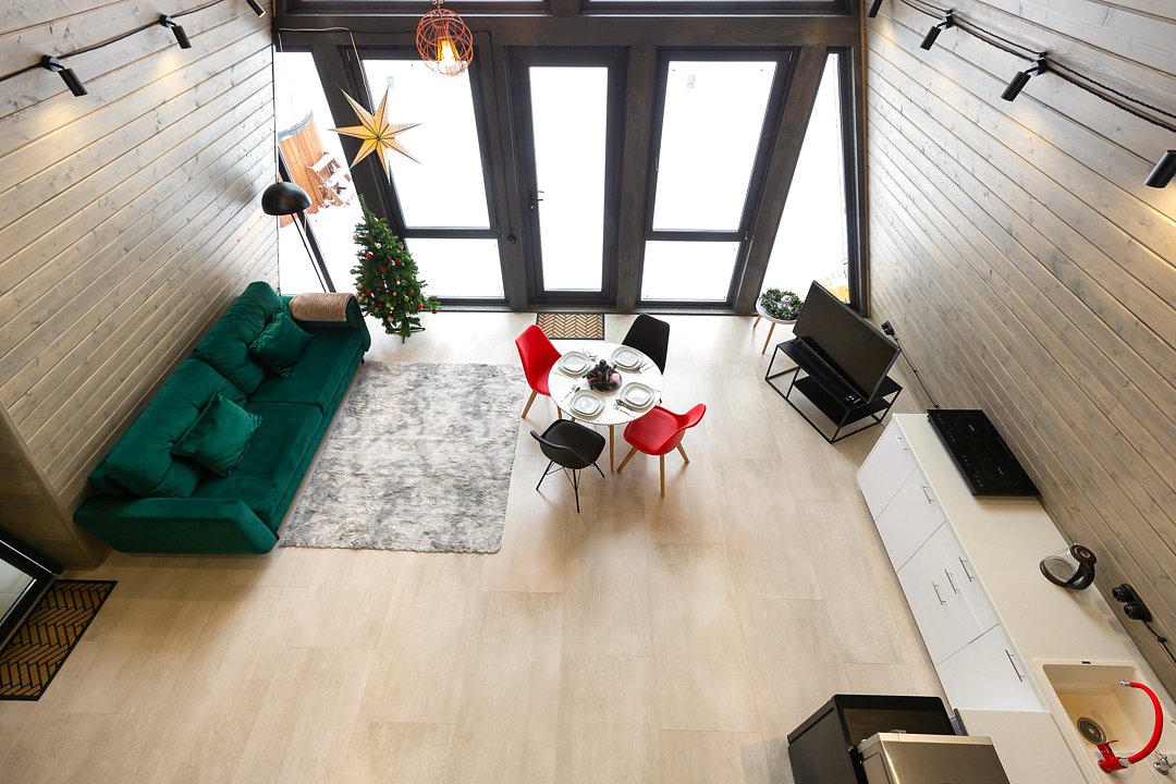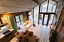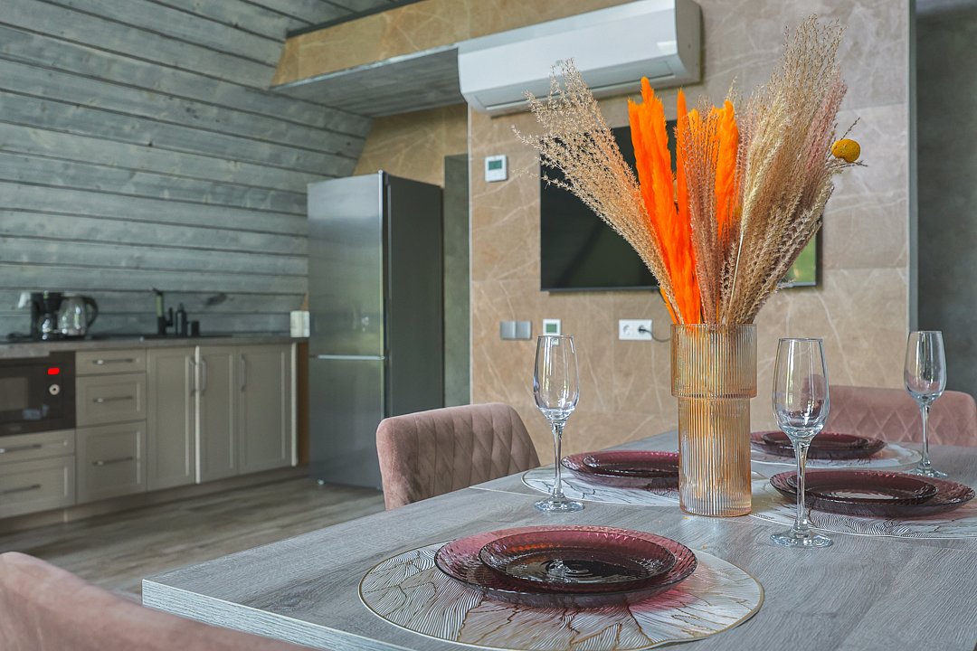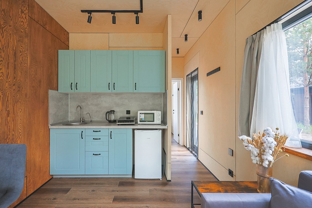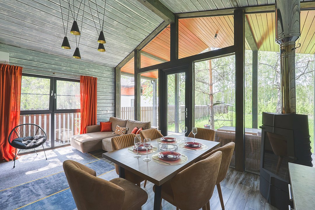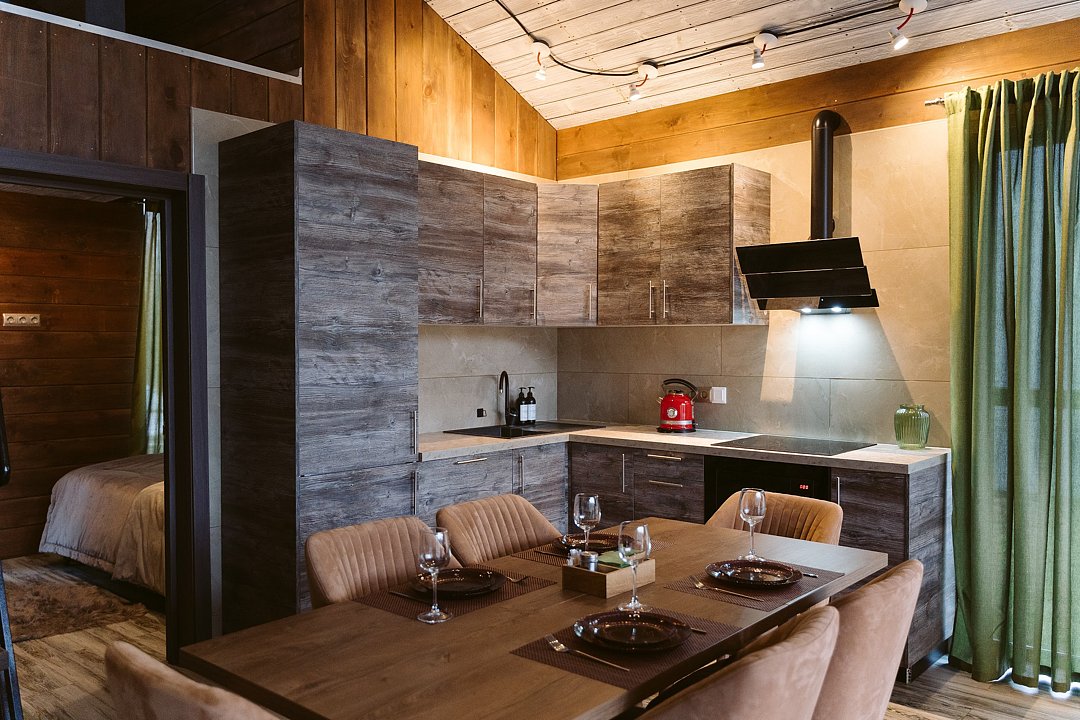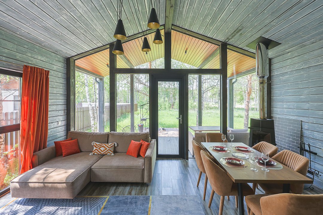 Каждый домик в глэмпинге выполнен в скандинавском дизайне, который прекрасно сочетается с минимализмом, создавая стильную и уютную атмосферу. Большие панорамные окна позволяют наслаждаться живописными видами в любое время года, а богатое естественное освещение добавляет домику света и радости.