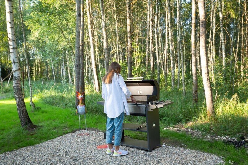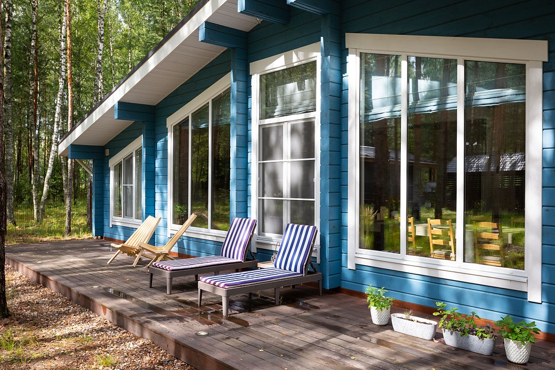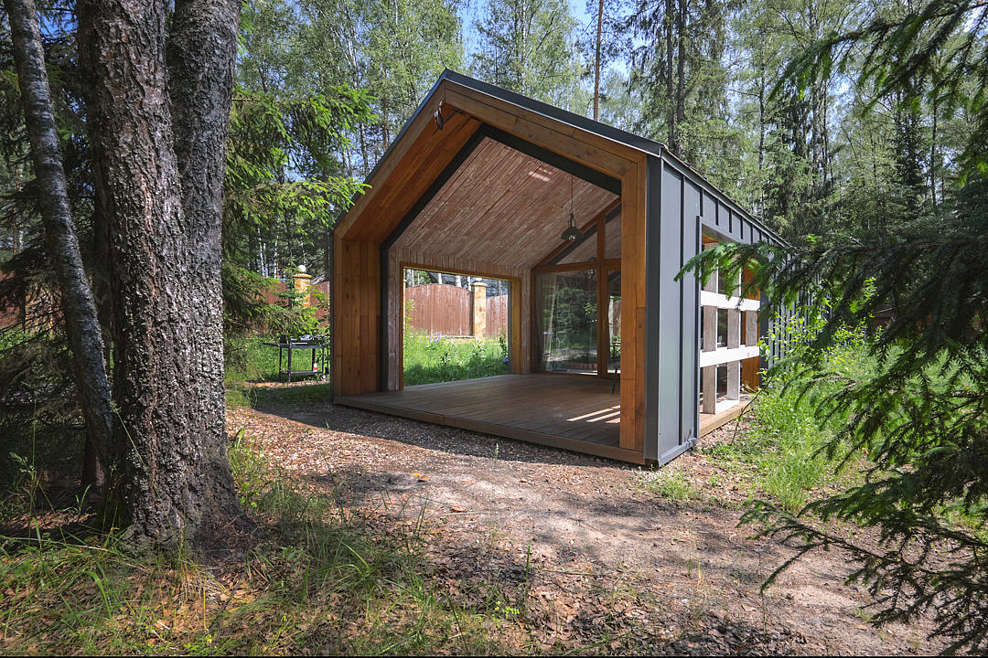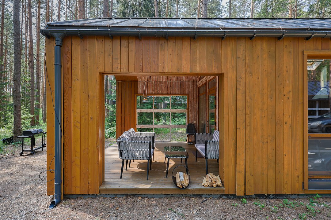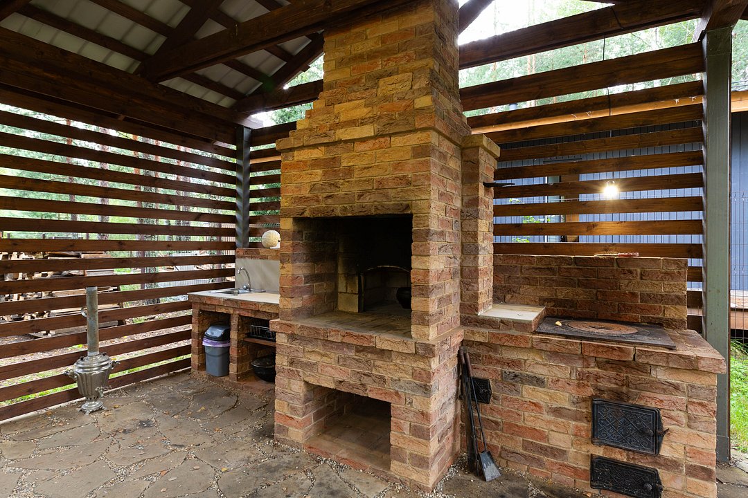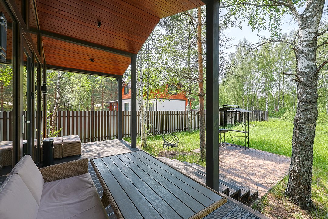 — большая терраса с уличной мебелью и индивидуальная мангальная зона в лесу;