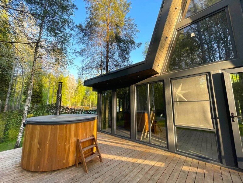 Семейный отдыхДостоинстваСовременные, стильные дома. Постельное белье было безупречно чистым, а удобные матрасы обеспечивали отличный сон. Wi-Fi работал без нареканий, в доме было все необходимое - от посуды до средств гигиены, включая шампунь, бальзам, зубные щетки и фен. Озеро совсем рядом) Обязательно вернёмся.