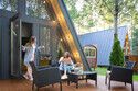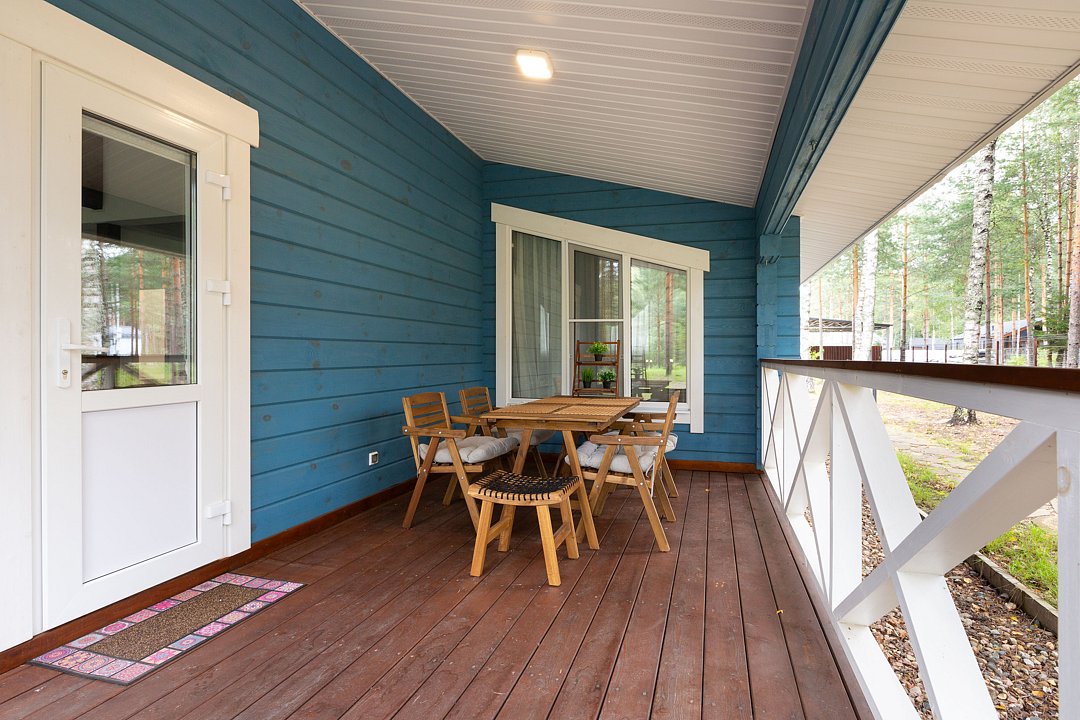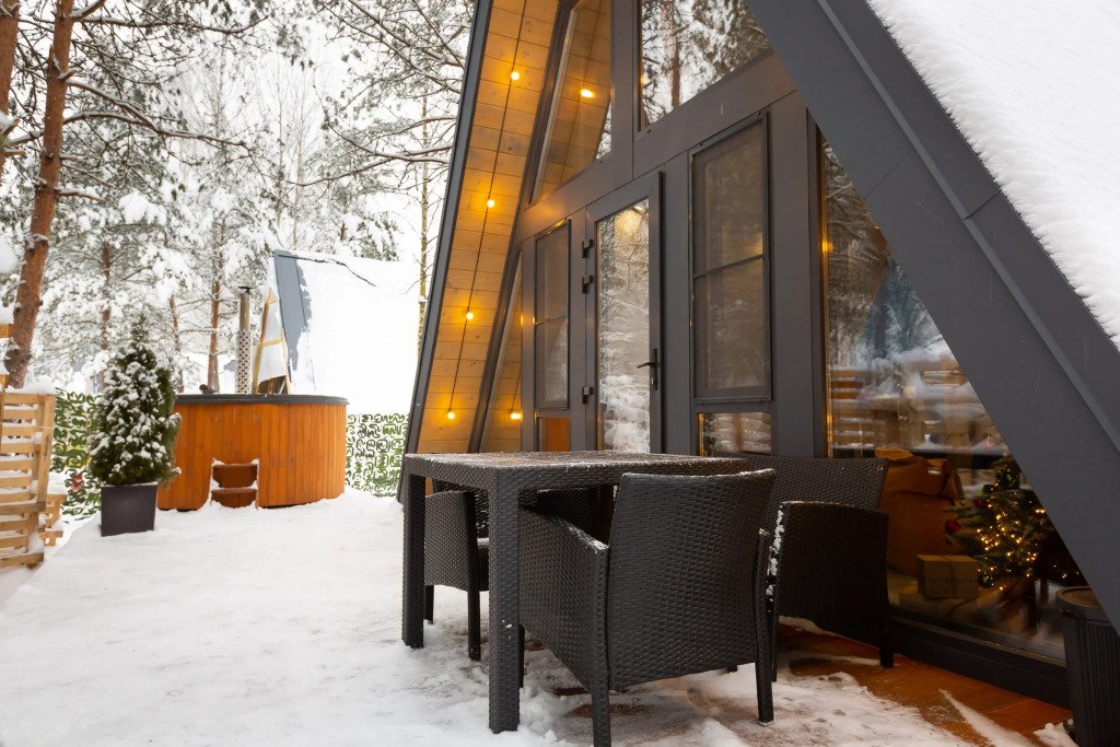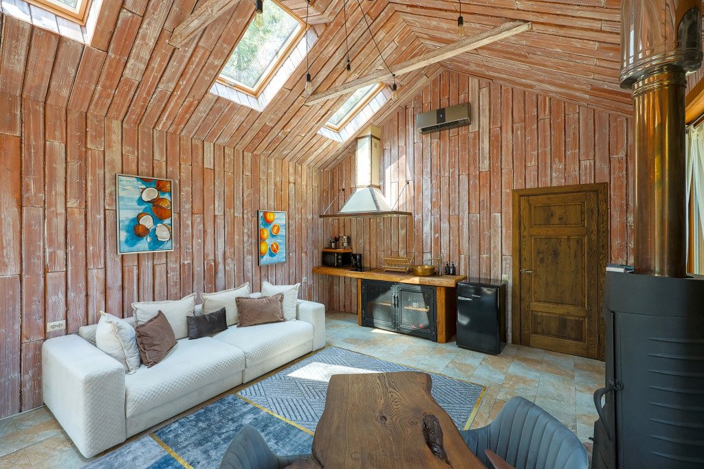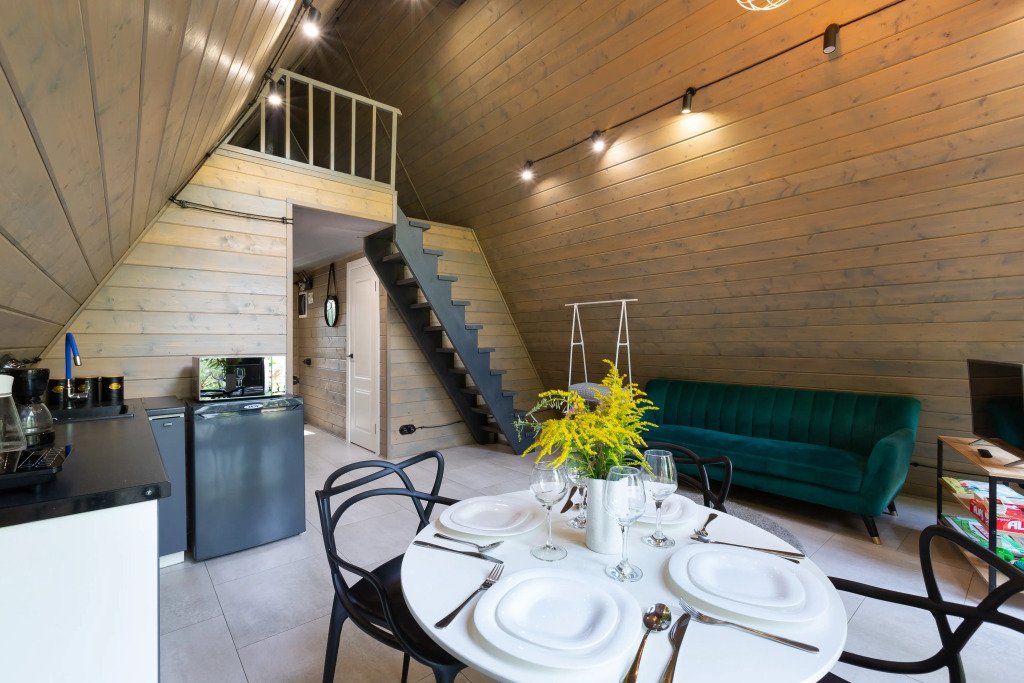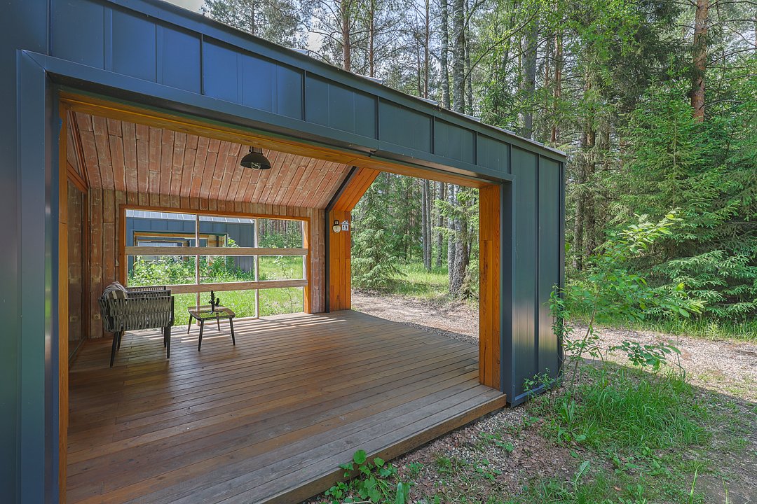Каждый домик оснащён собственной террасой, где можно наслаждаться чашкой ароматного кофе утром или проводить романтические вечера с бокалом шампанского под звёздным небом.