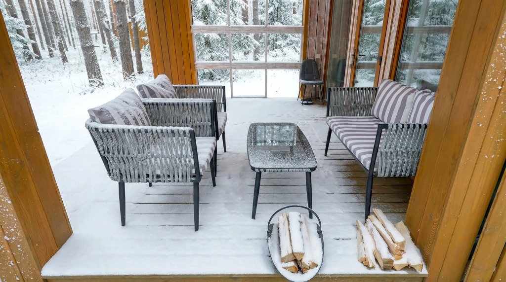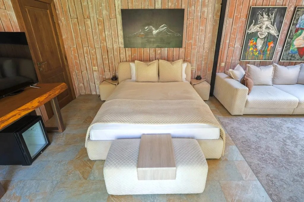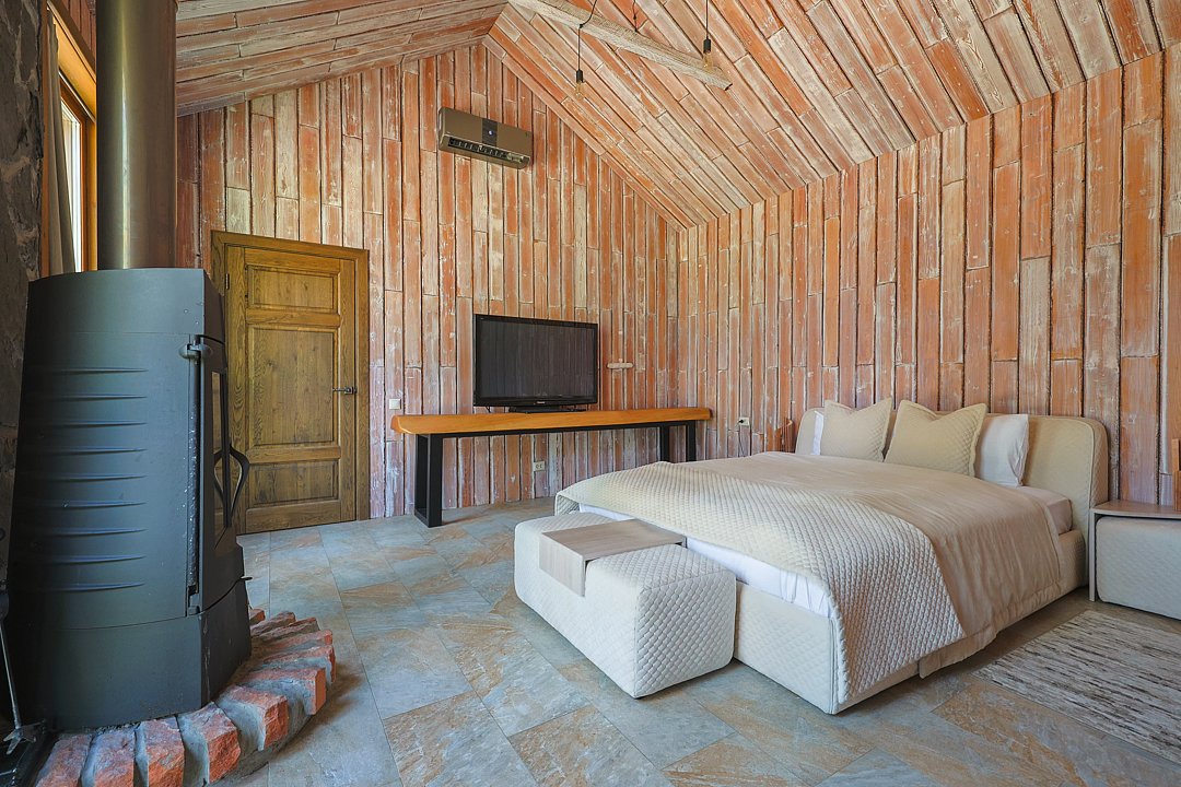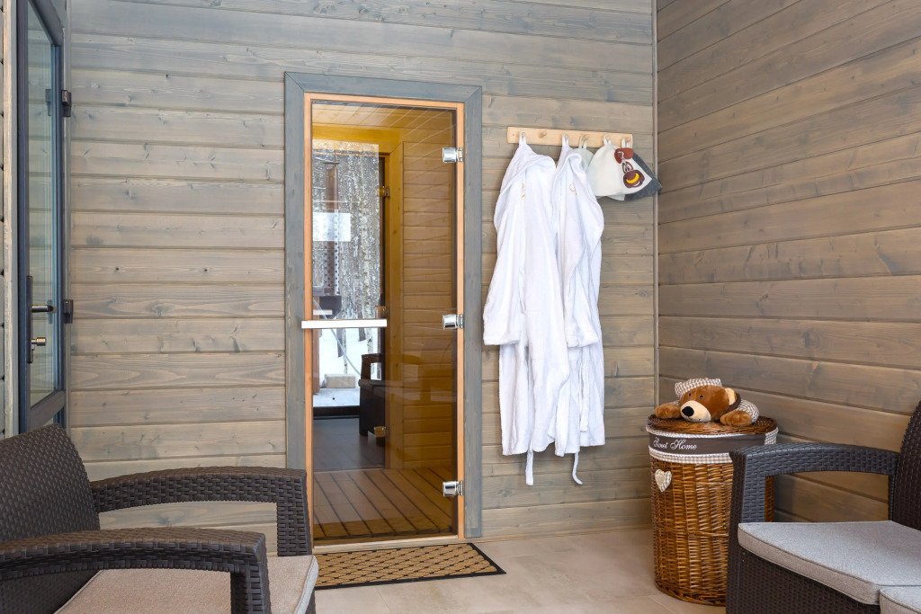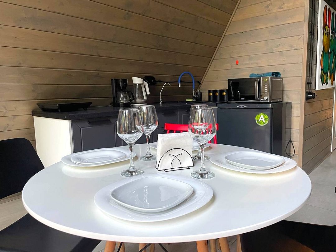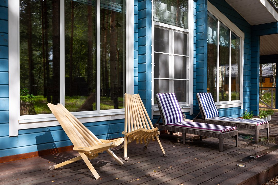 Каждый домик оснащён собственной террасой, где можно наслаждаться чашкой ароматного кофе утром или проводить романтические вечера с бокалом шампанского под звёздным небом.