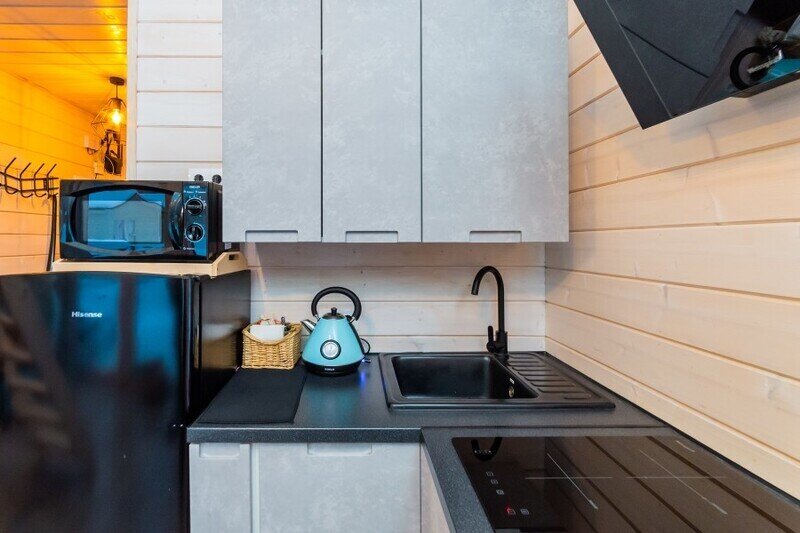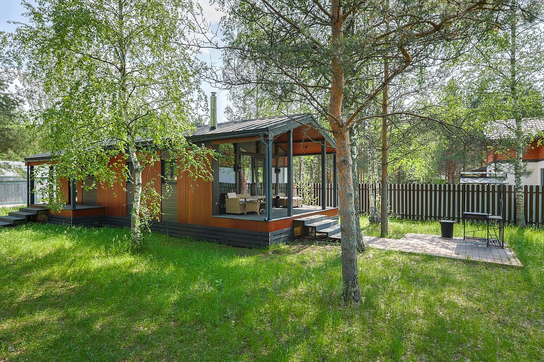 Домик 23 (Scandi с купелью, террасой и кондиционером) 25m2, из натурального дерева, одноэтажный включает в себя: