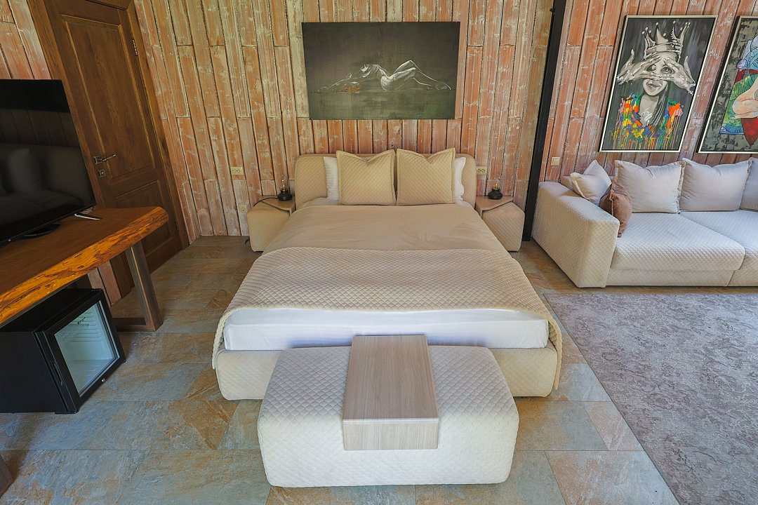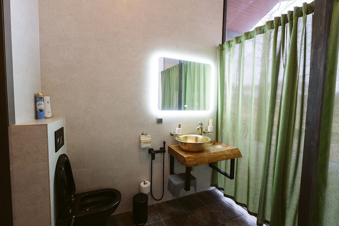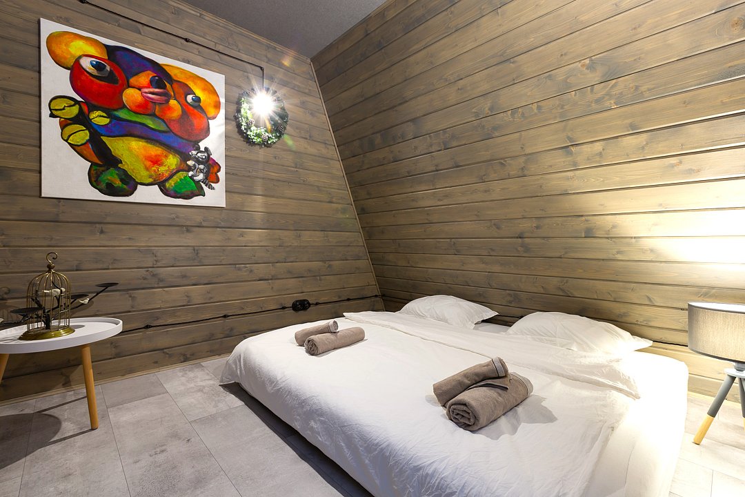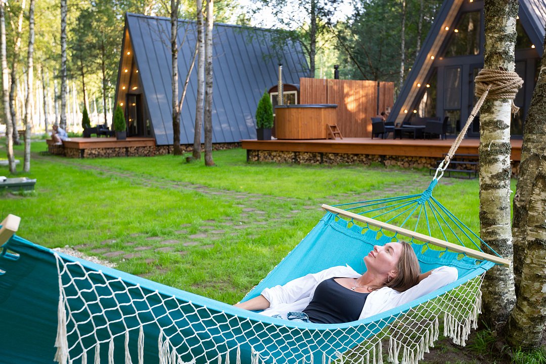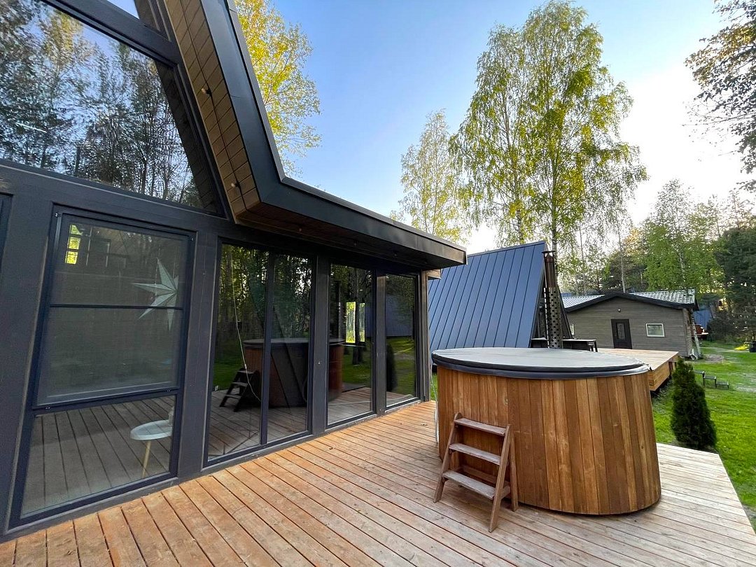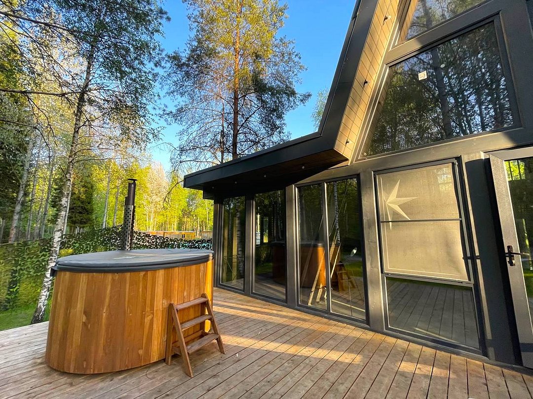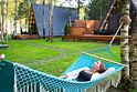Семейный отдыхДостоинстваИдеальное место, чтобы провести время с семьей в тишине и спокойствии! Отдельные купели с горячей водой, баня по заказу, и хороший гриль с полным комплектом принадлежностей (кроме угля и розжига). А рядом - маленький прудик, где можно покататься на сап-борде и даже попробовать поймать рыбку. Номера прекрасно оборудованы, рекомендую.