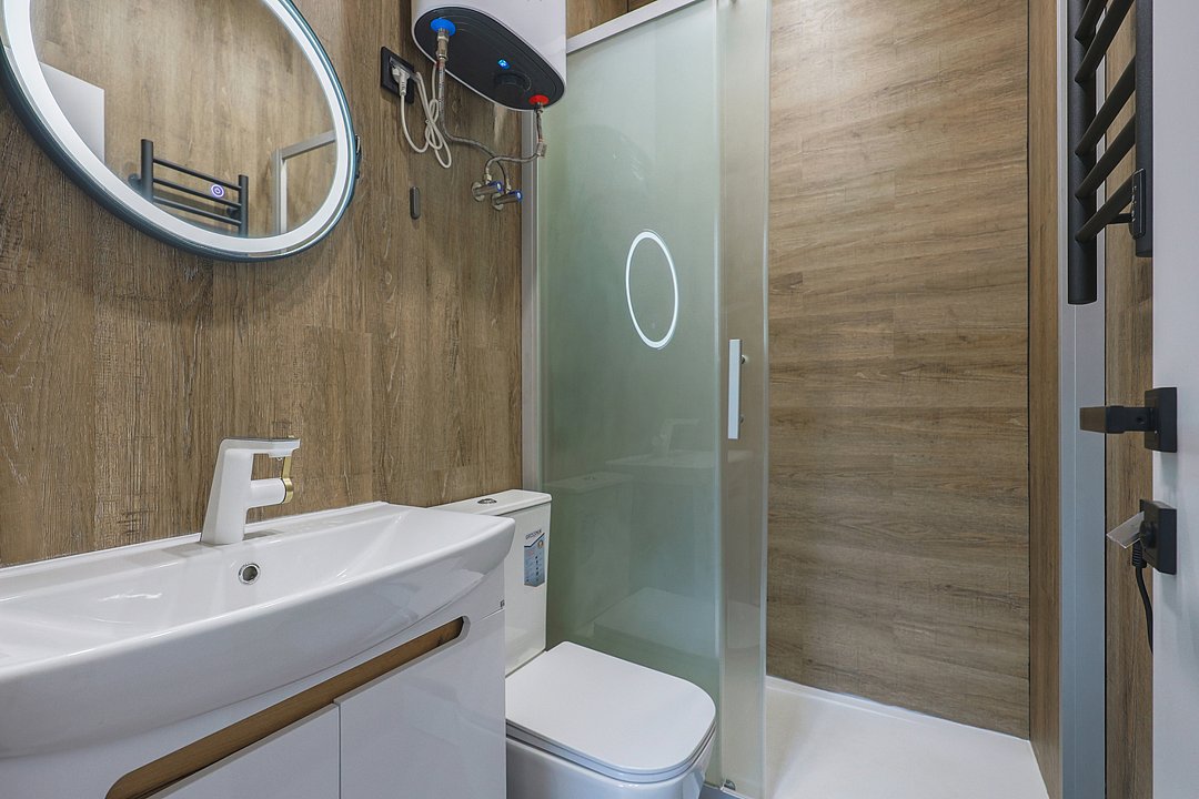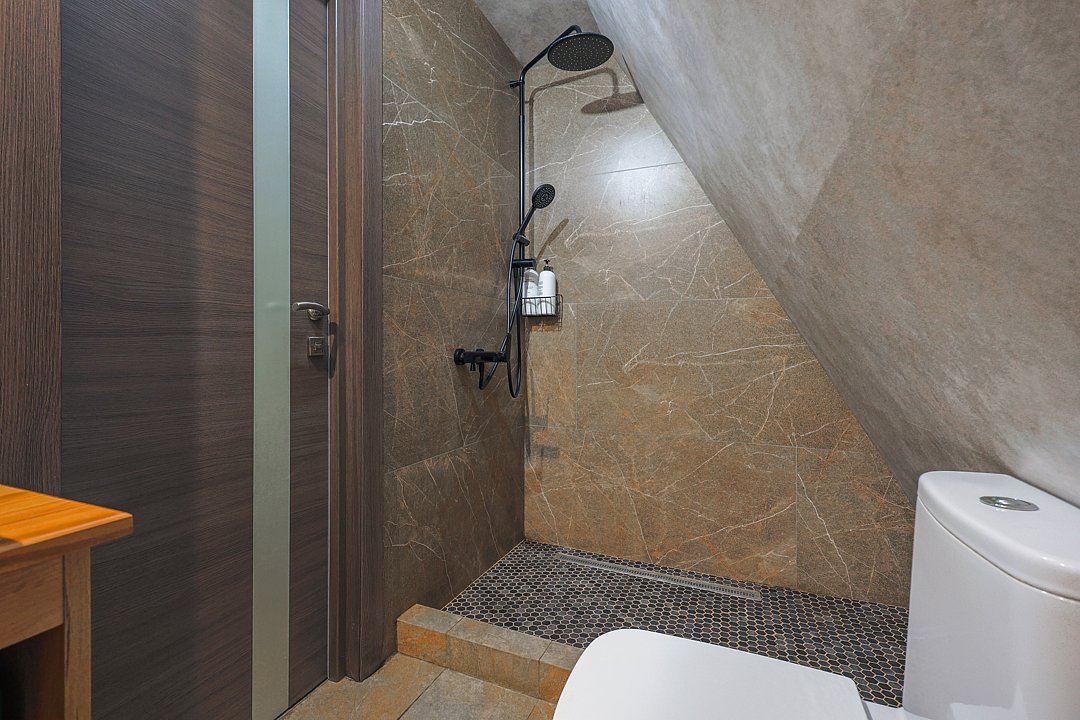 — просторная кухня-гостиная, санузел с душевой;
