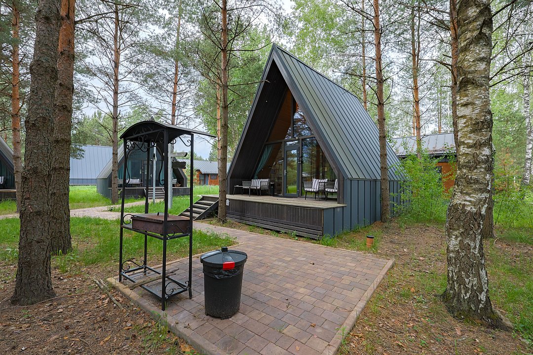 Домик 14 (A-Frame без купели) 45m2, из натурального дерева, двухэтажный.