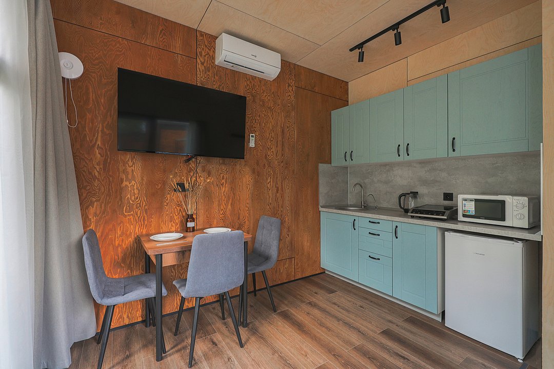 Санузел с душем, мини-кухня, ТВ